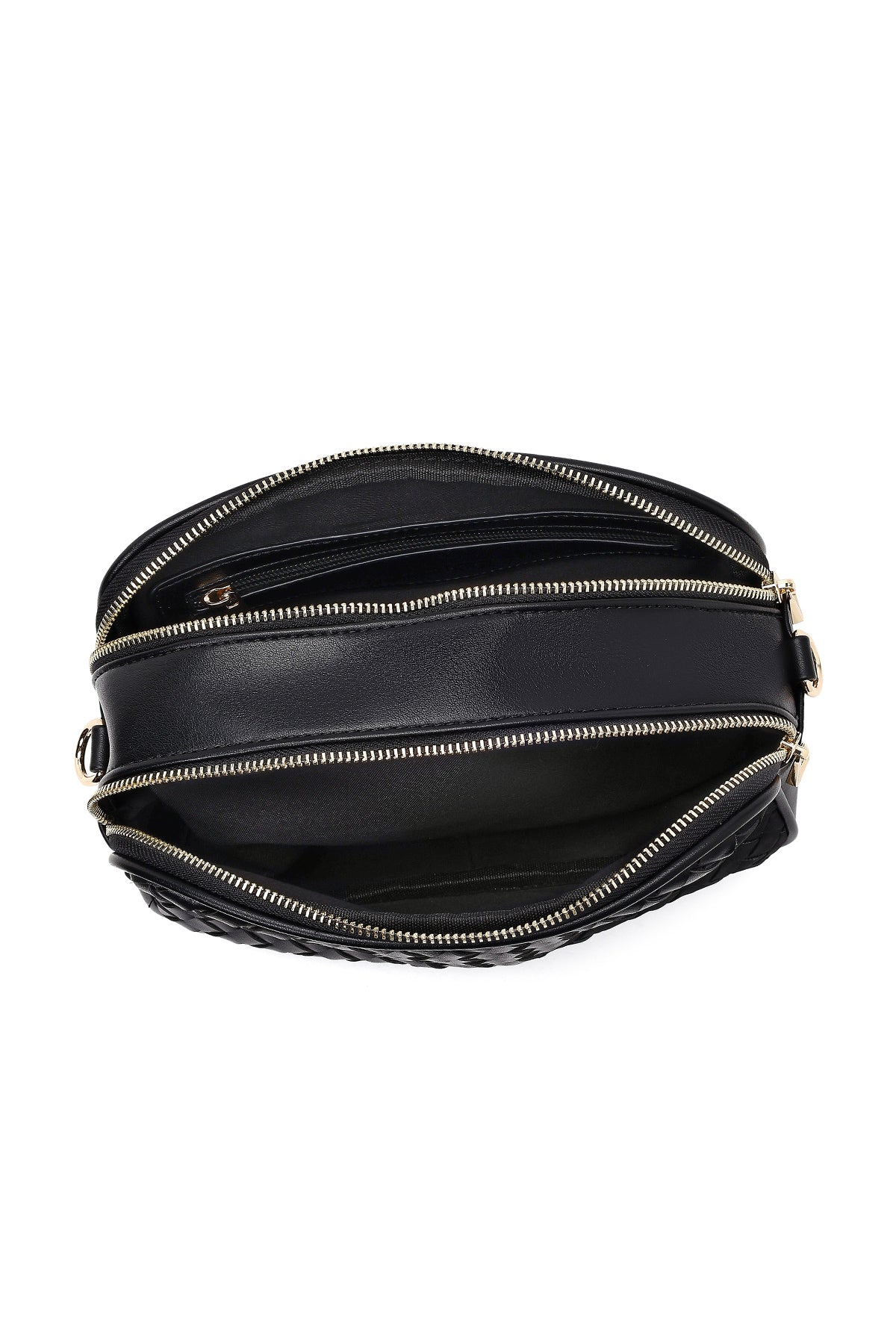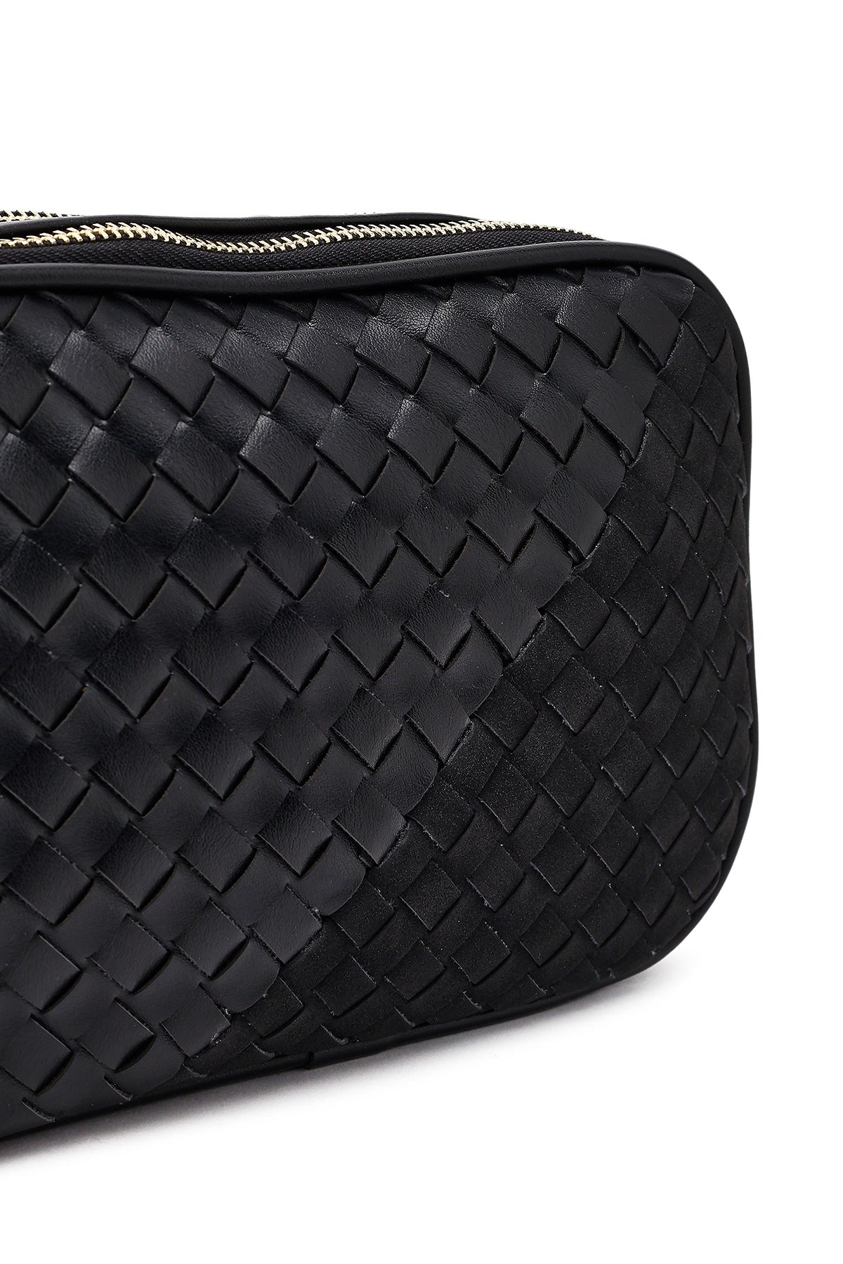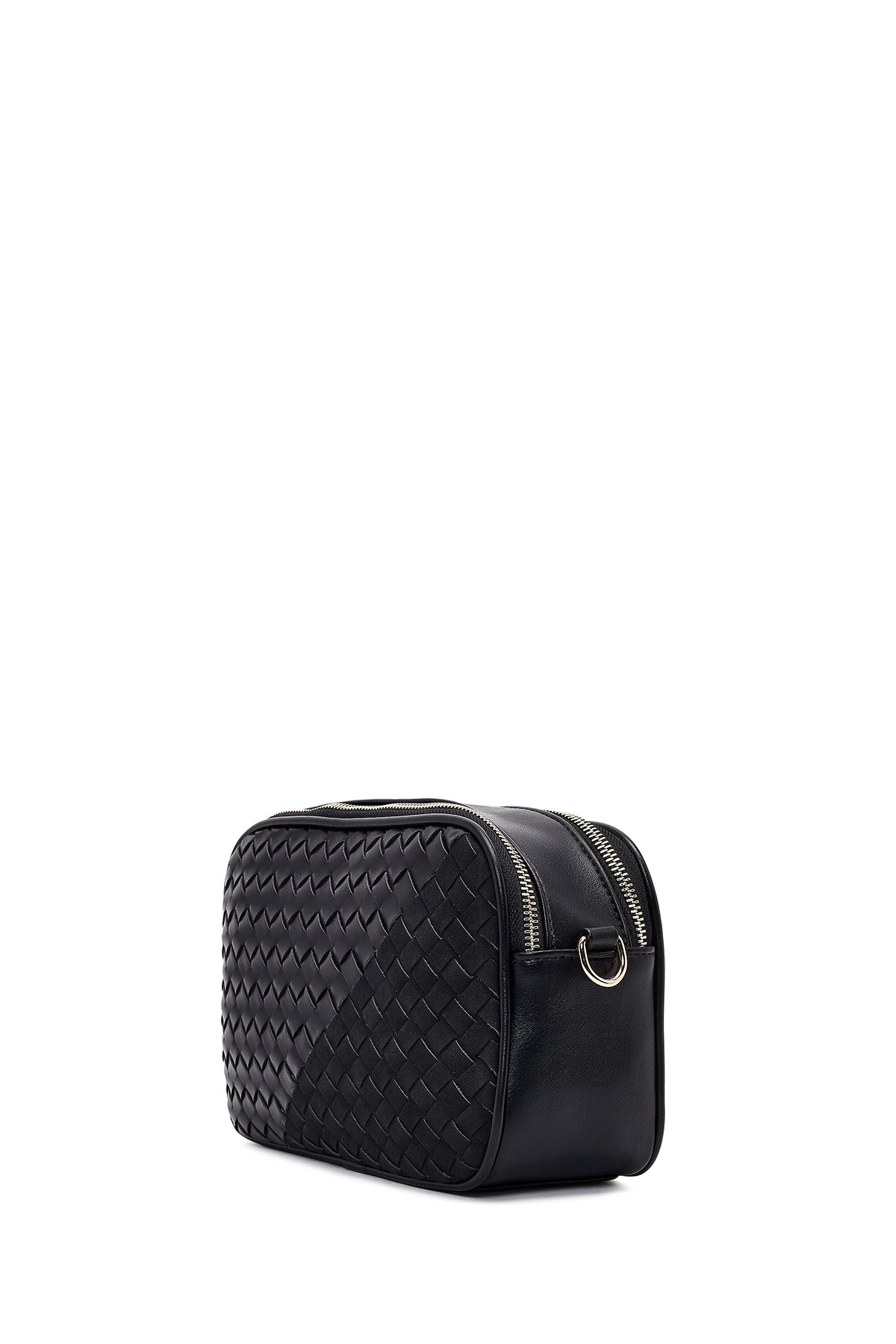 کیف کراس بادی زنانه مشکی بلند با جزئیات بافت دری مد