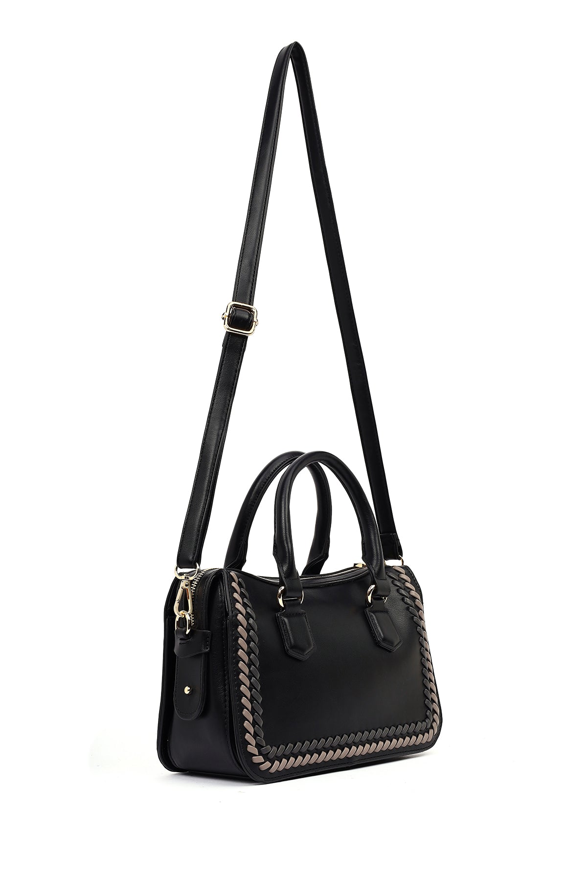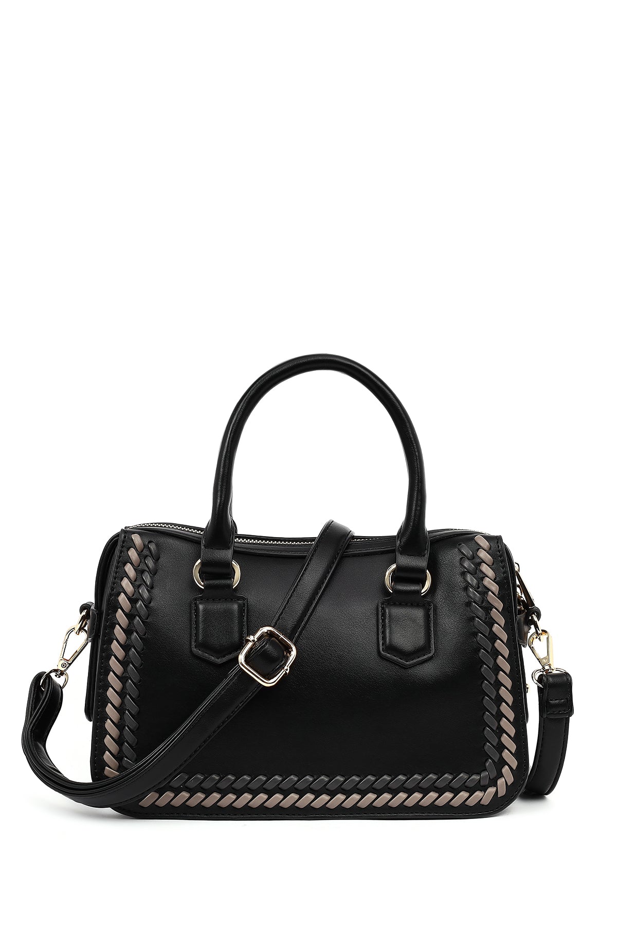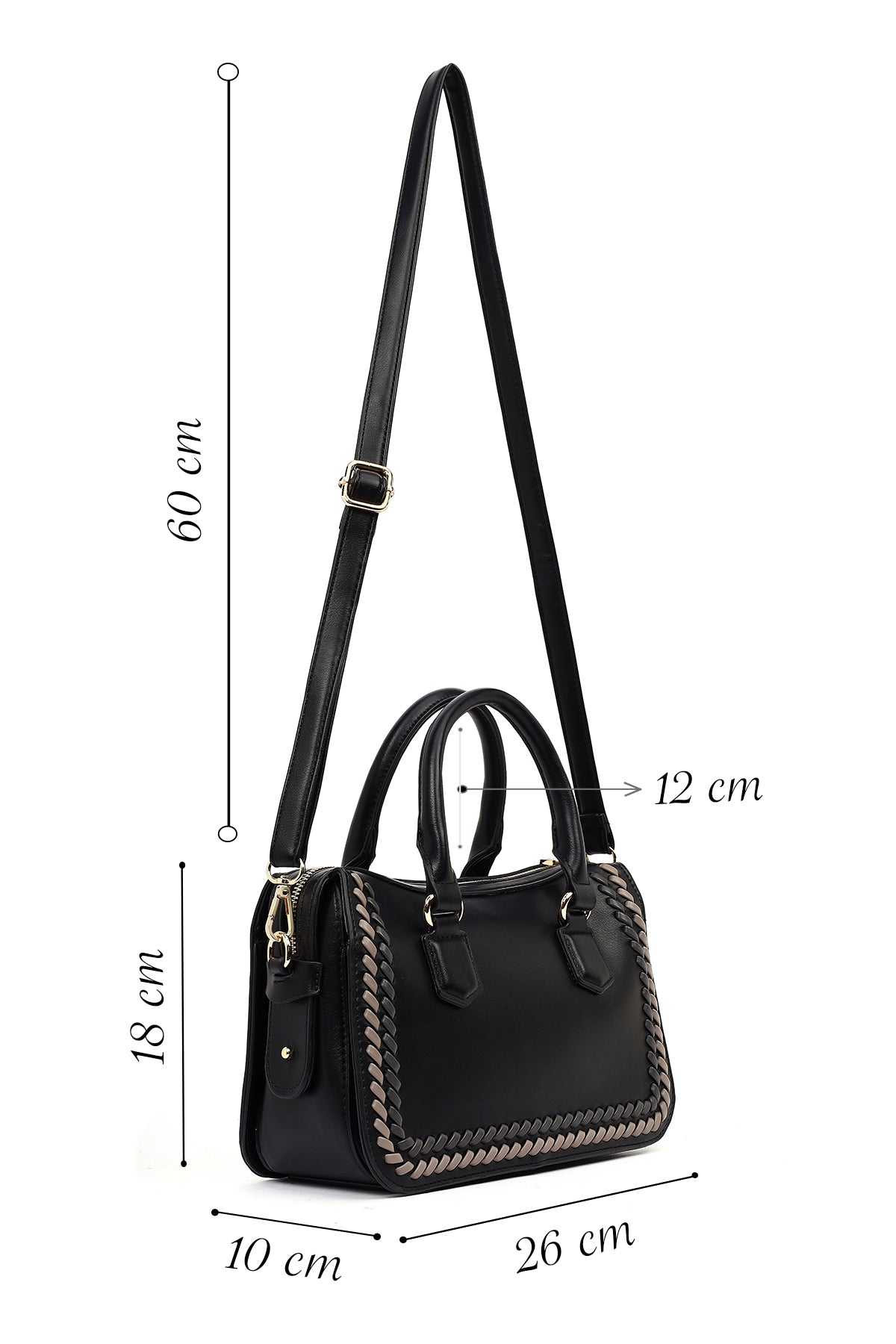 Kadın Siyah Uzun Askılı Örgü Detaylı Kol Çantası