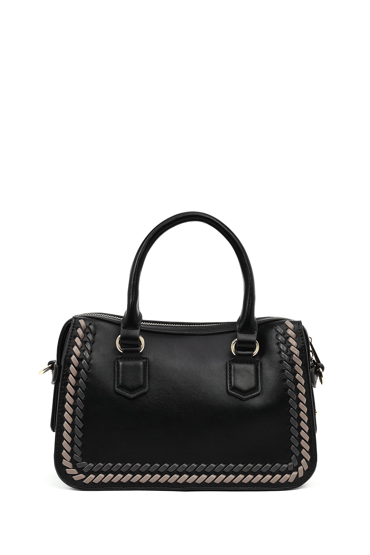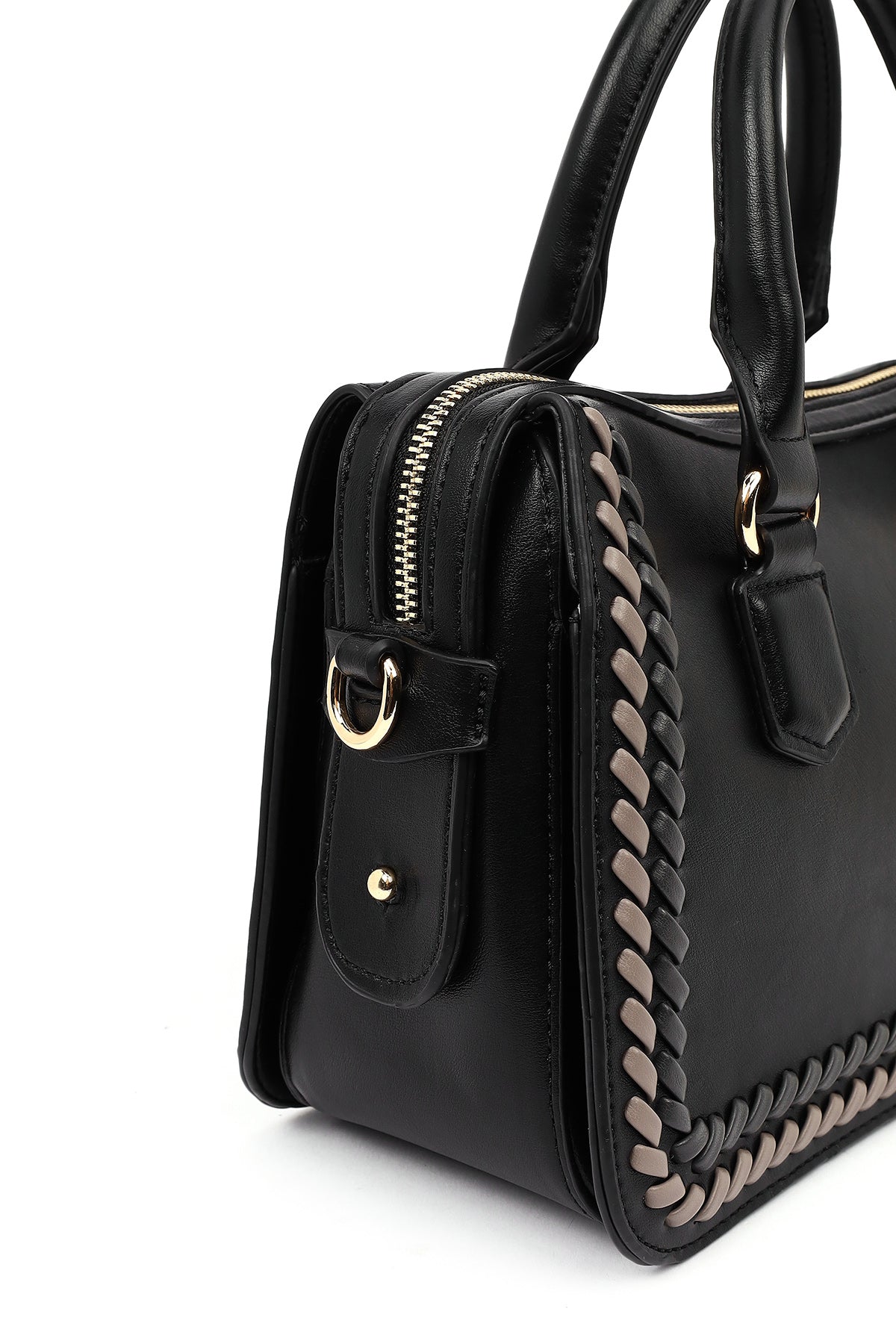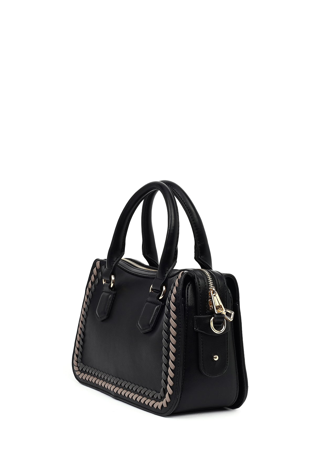 Kadın Siyah Uzun Askılı Örgü Detaylı Kol Çantası