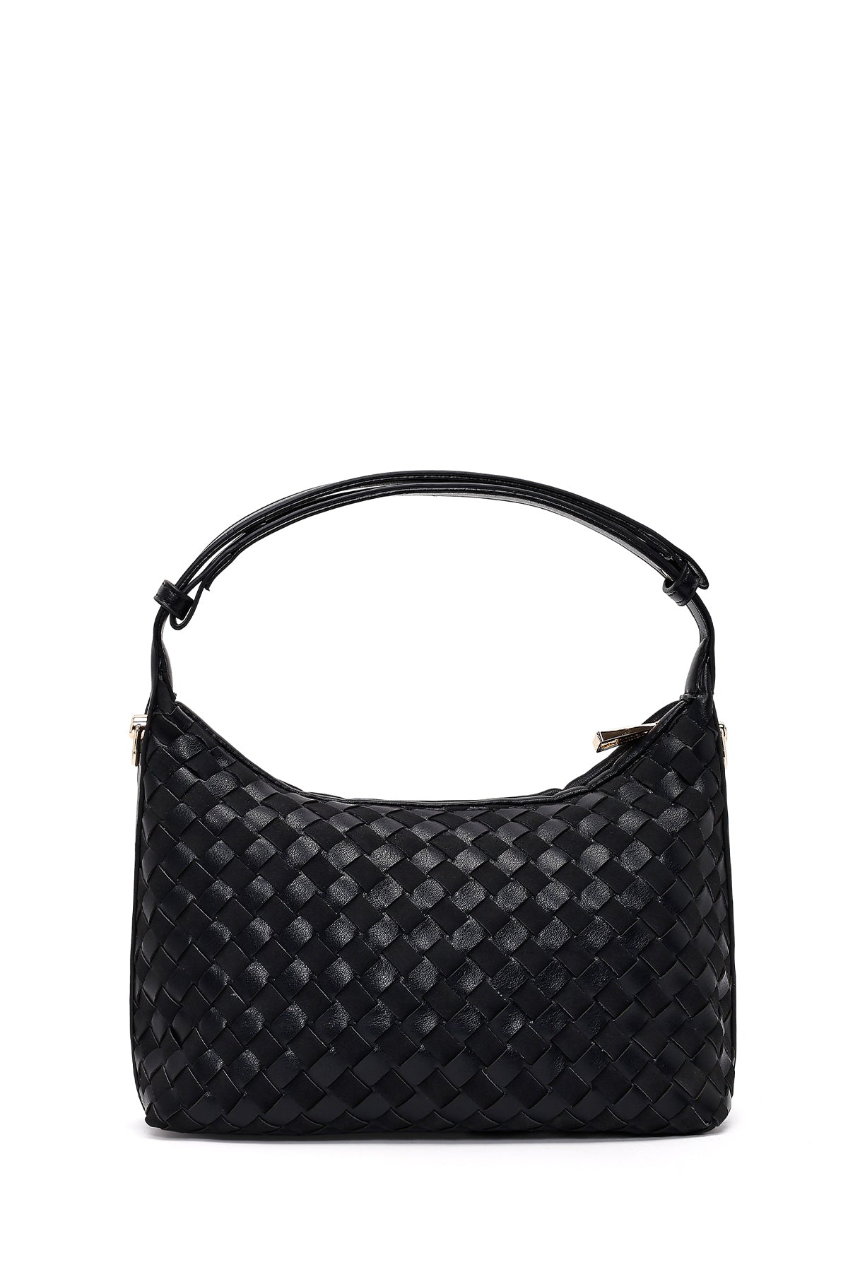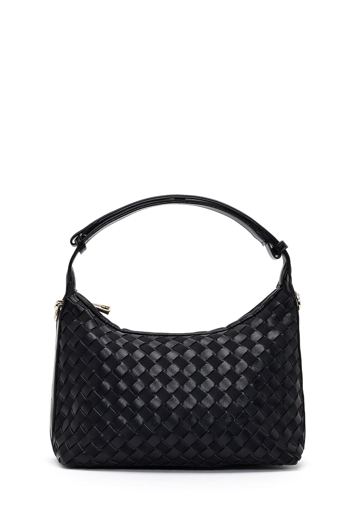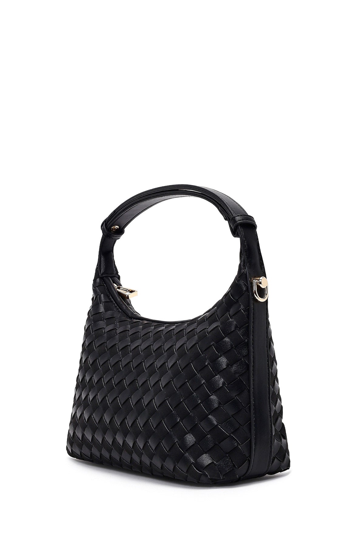 Kadın Siyah Uzun Askılı Örgülü Mini Kol Çantası