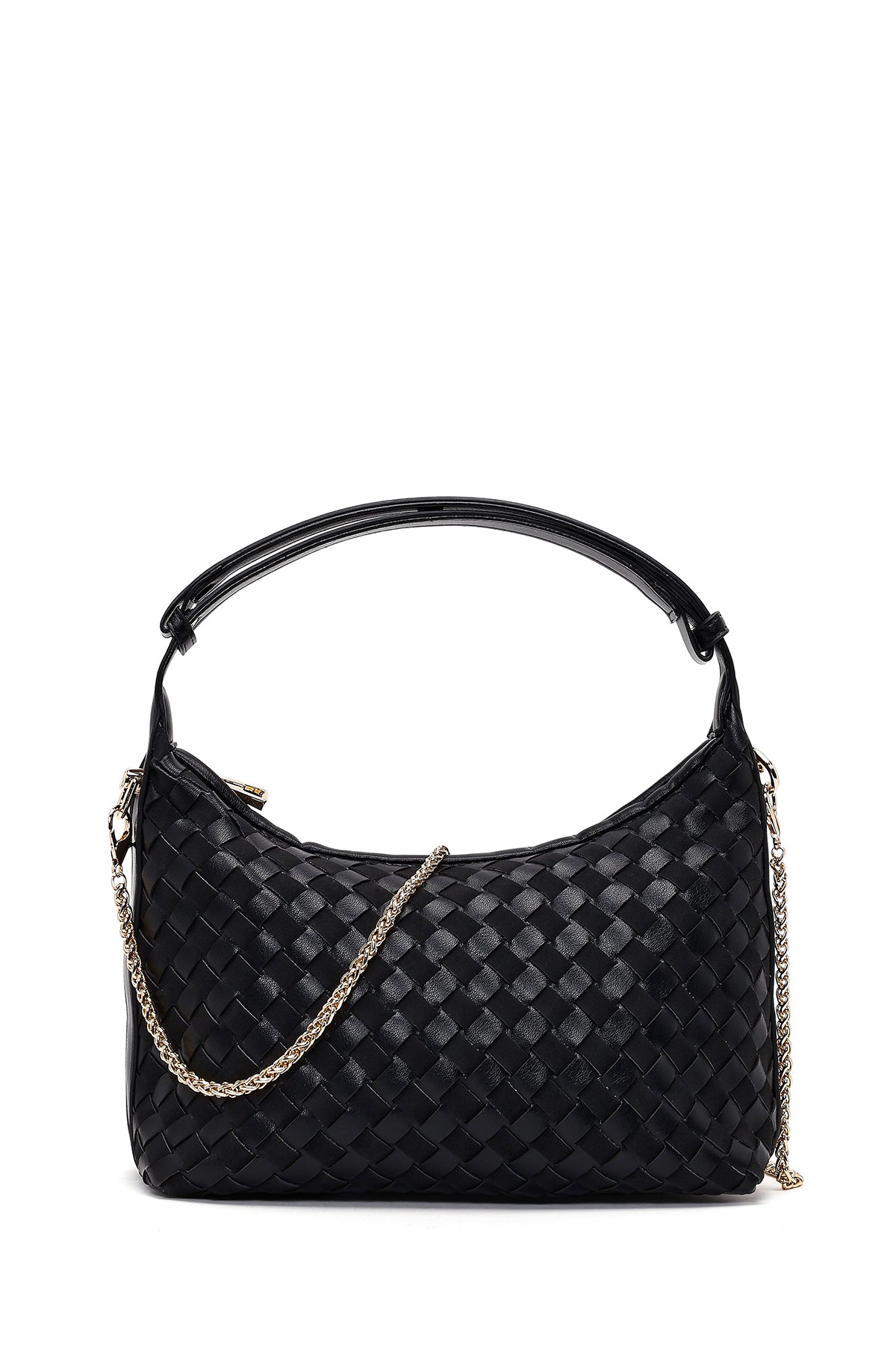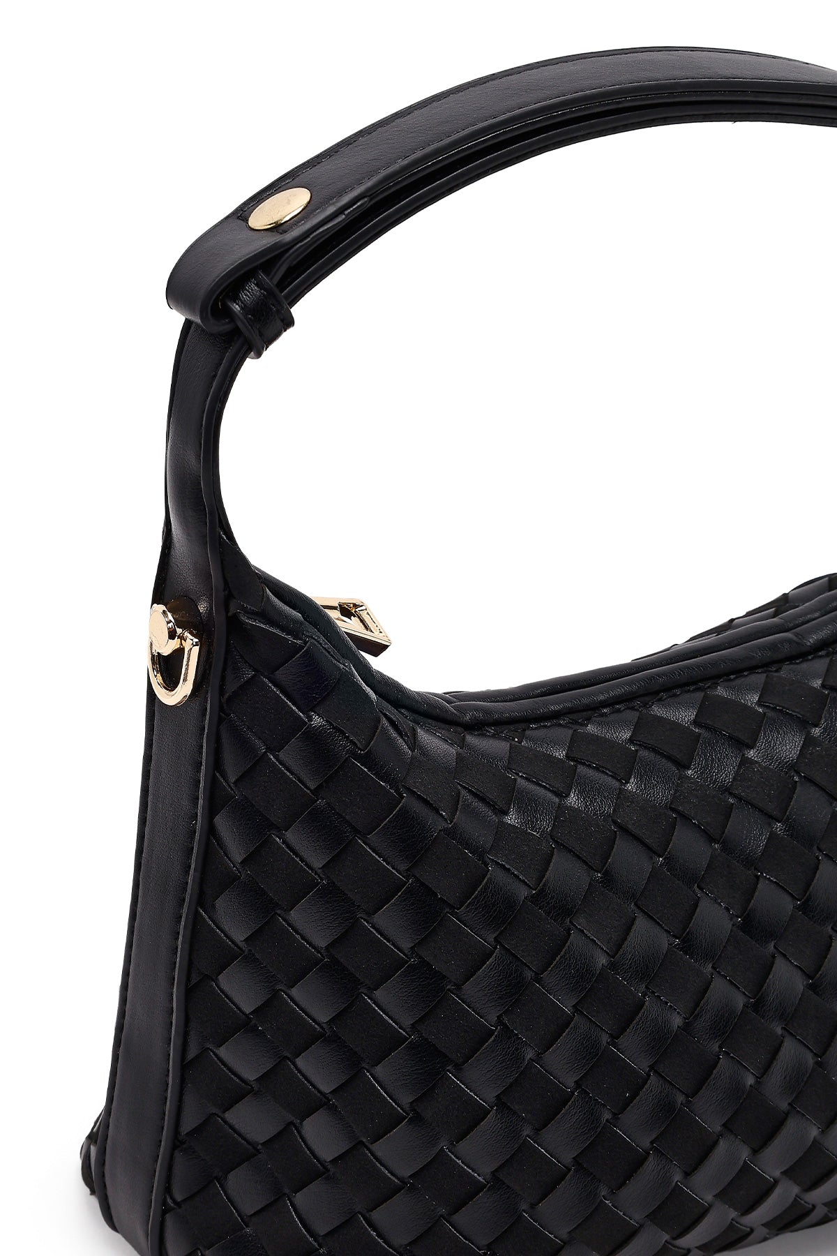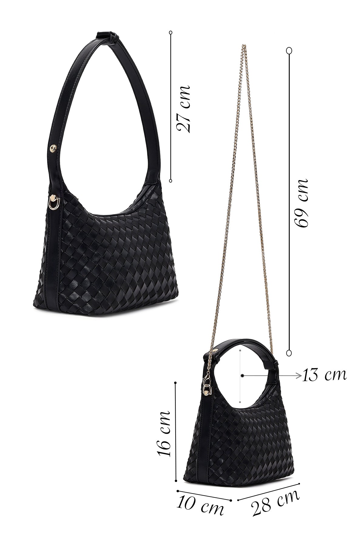 Kadın Siyah Uzun Askılı Örgülü Mini Kol Çantası