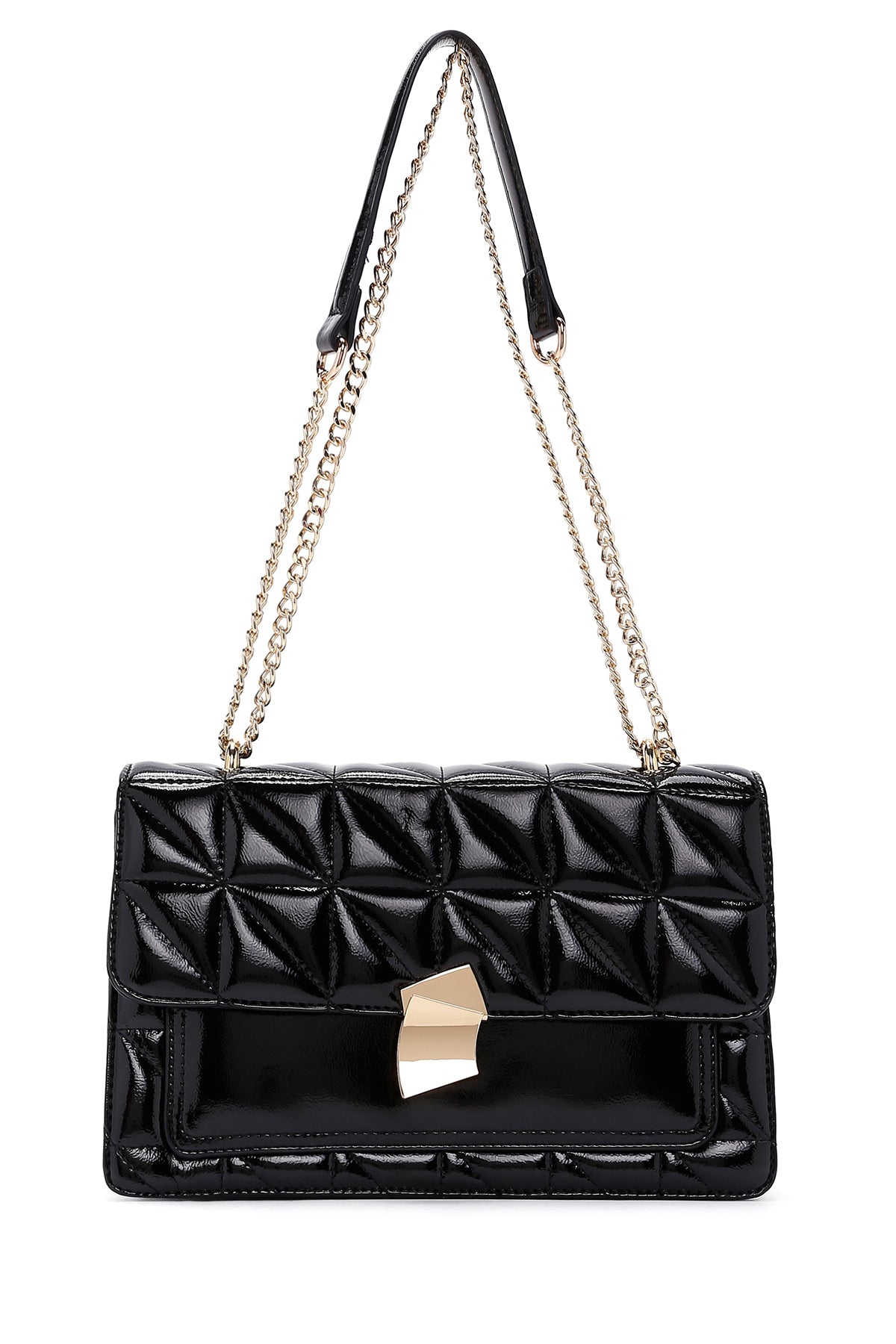 Kadın Siyah Zincir Askılı Kapitone Kol Çantası