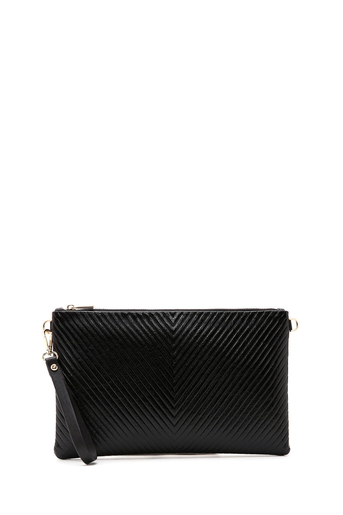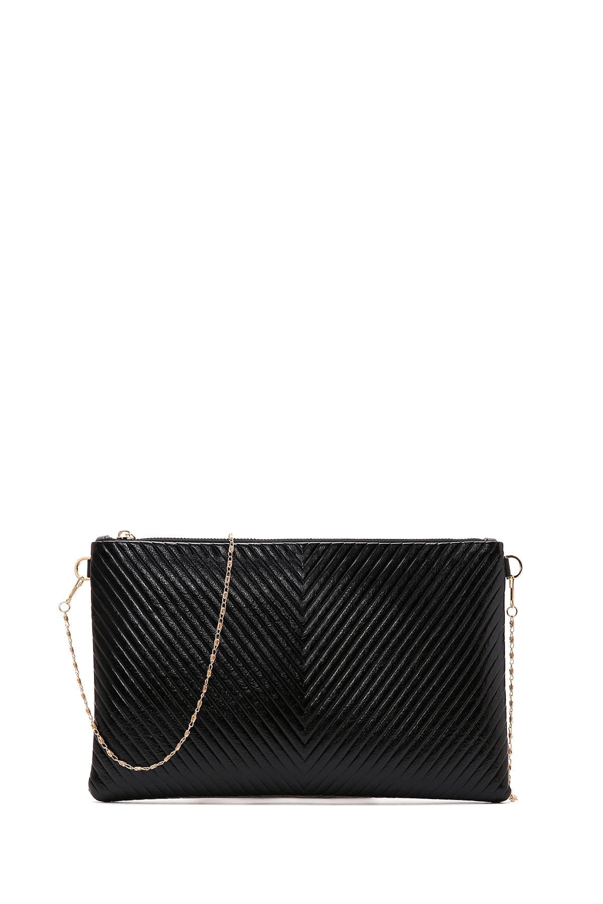 کیف کلاچ زنانه مشکی بند بلند زنجیری متالیک دری مد