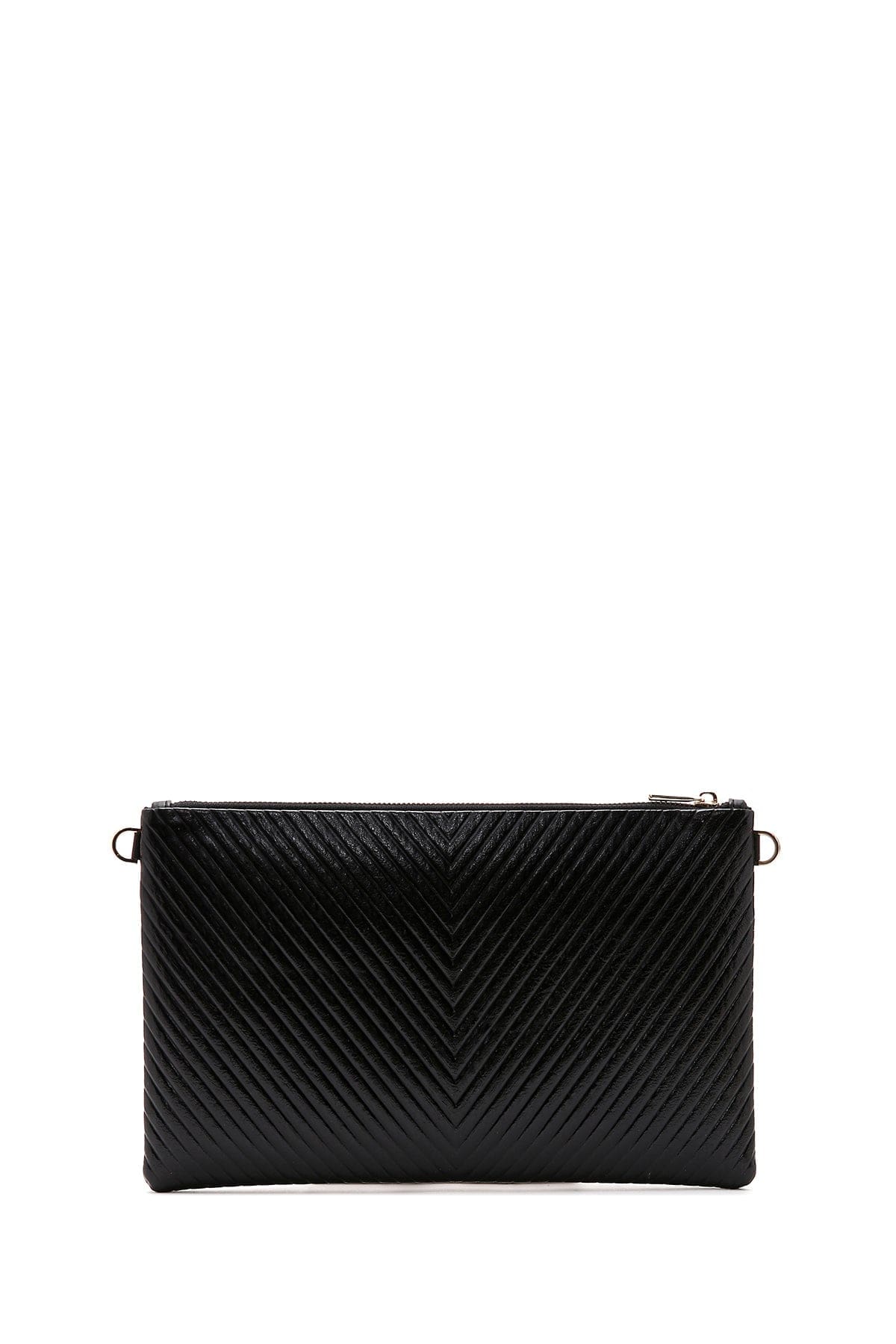 Kadın Siyah Uzun Zincir Askılı Metalik Portföy Çanta