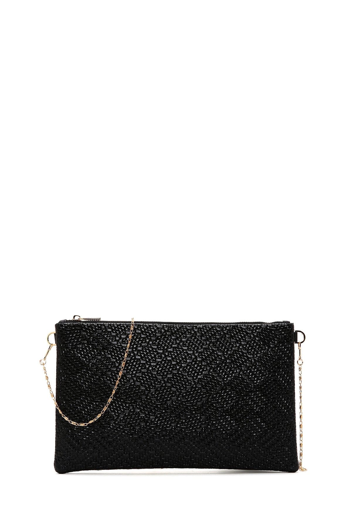 کیف کلاچ زنانه مشکی بند بلند زنجیری دری مد