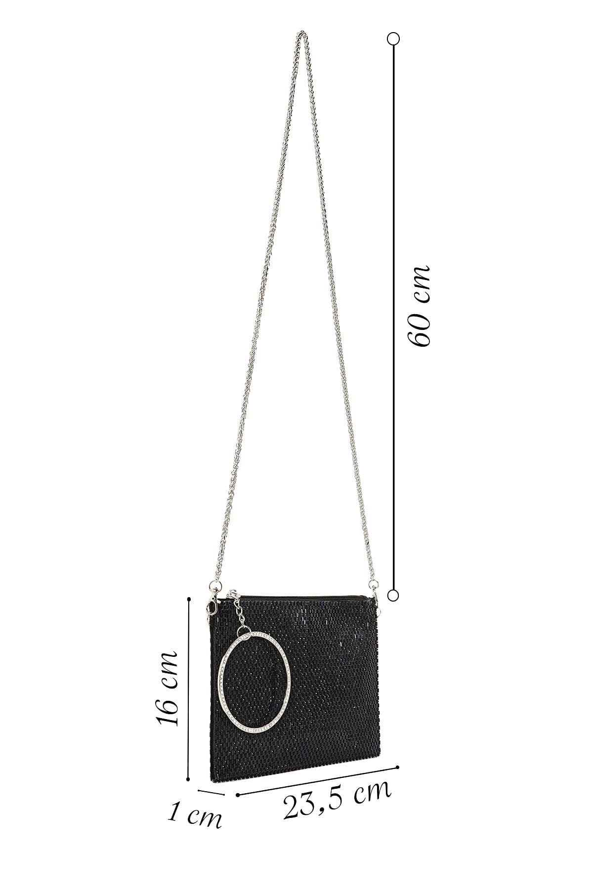 Kadın Siyah Taşlı Uzun Zincir Askılı Abiye Portföy Çanta