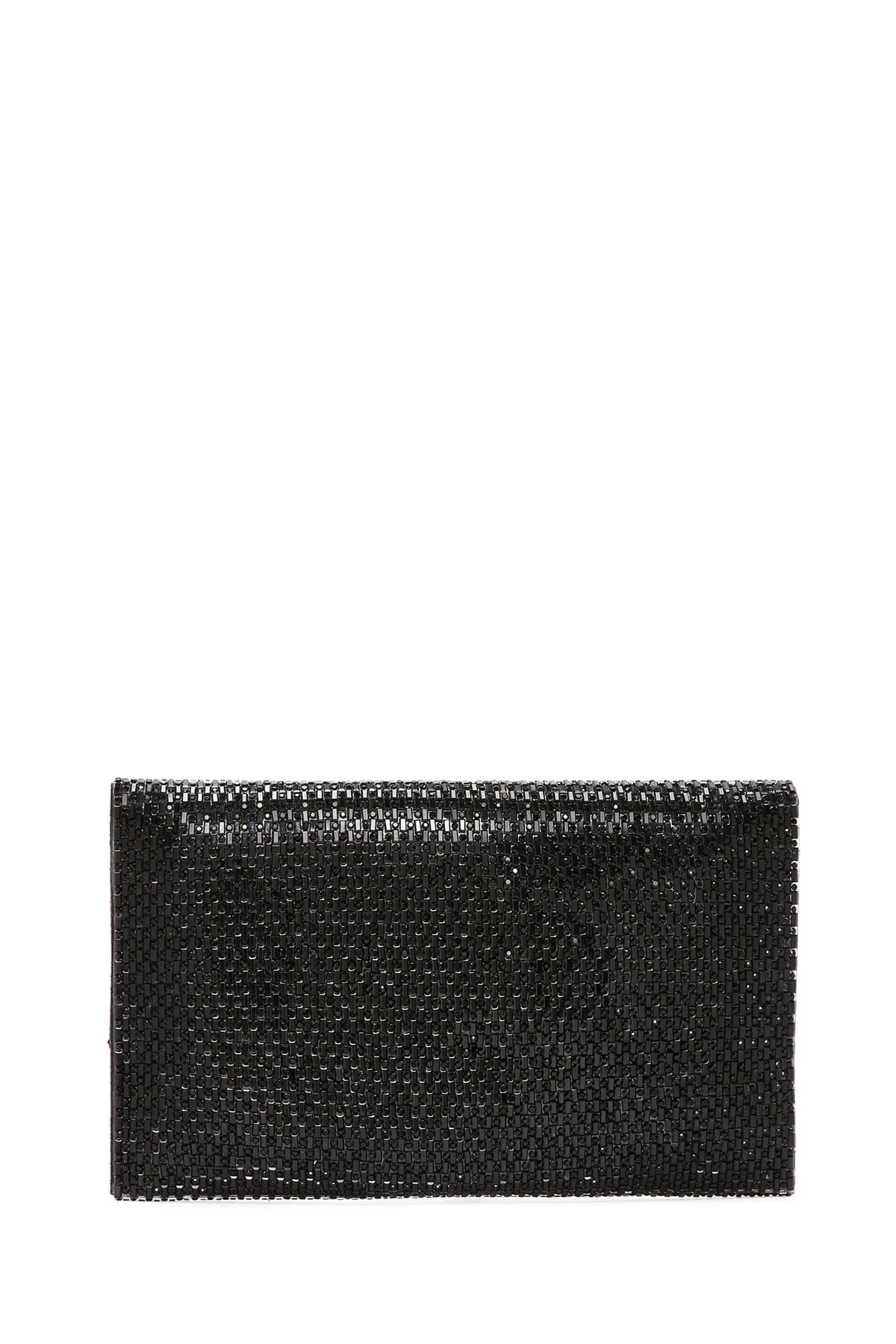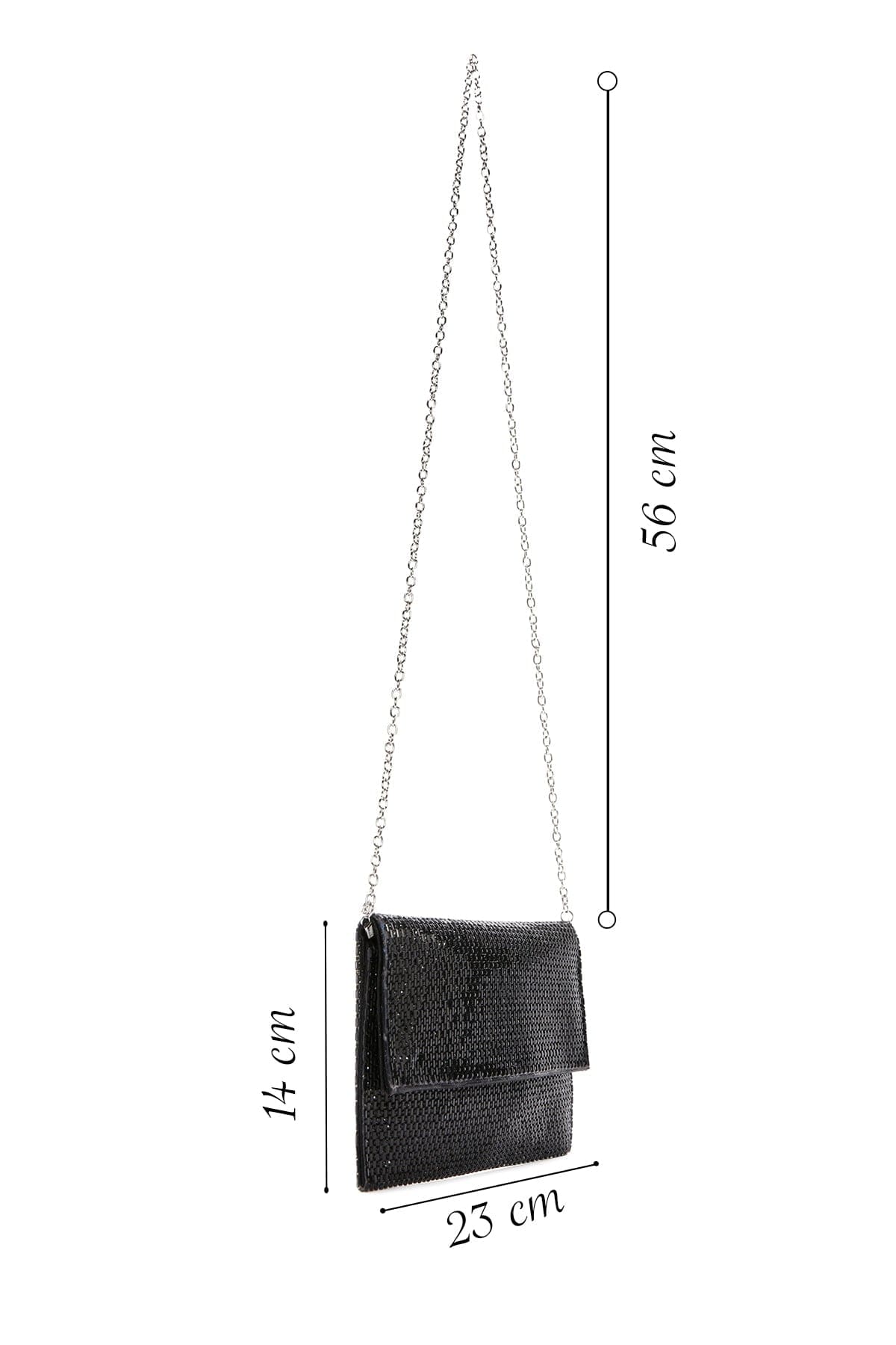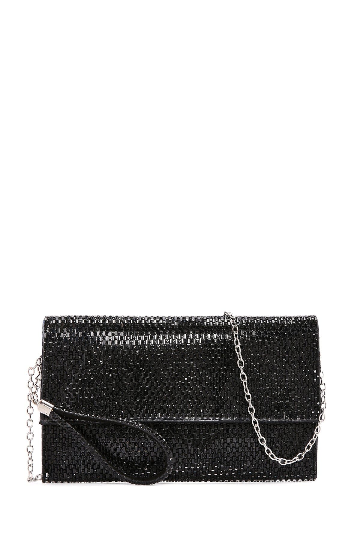Kadın Siyah Uzun Zincir Askılı Taşlı Abiye Portföy Çanta
