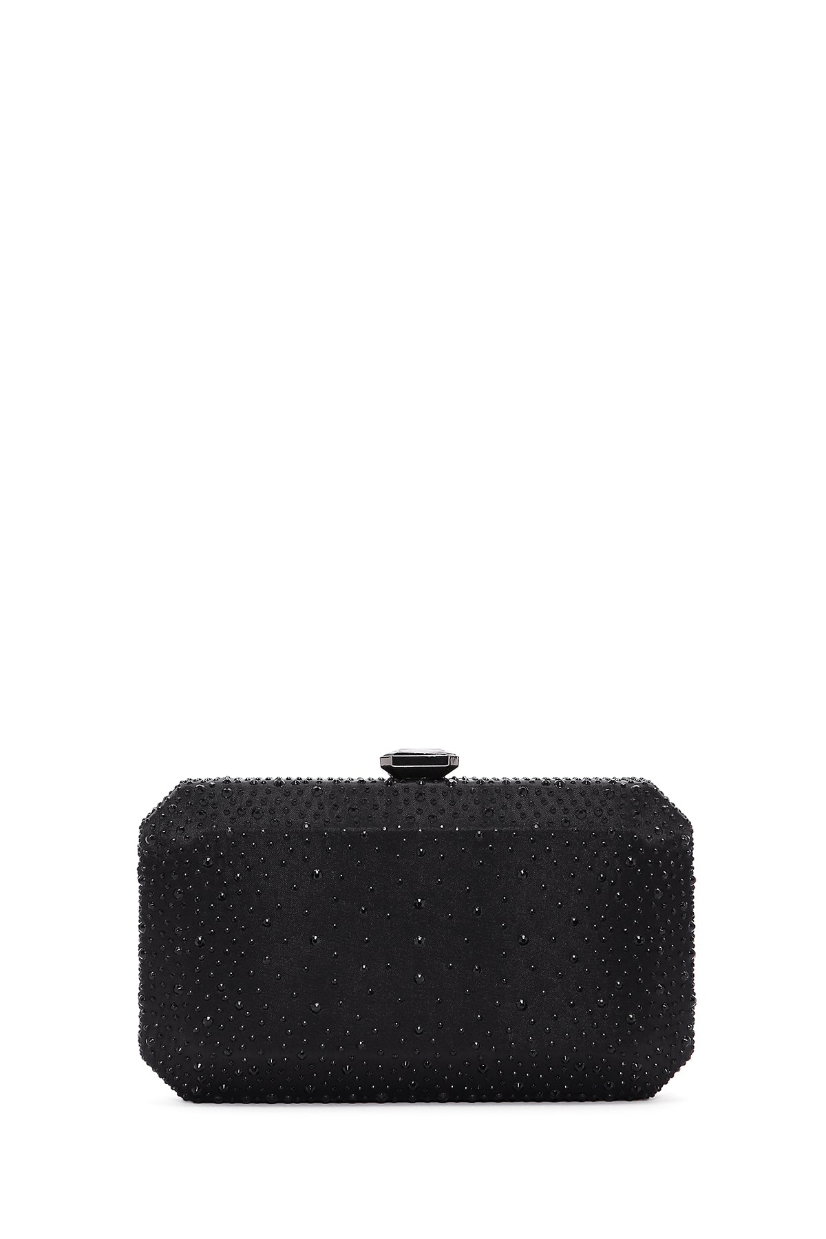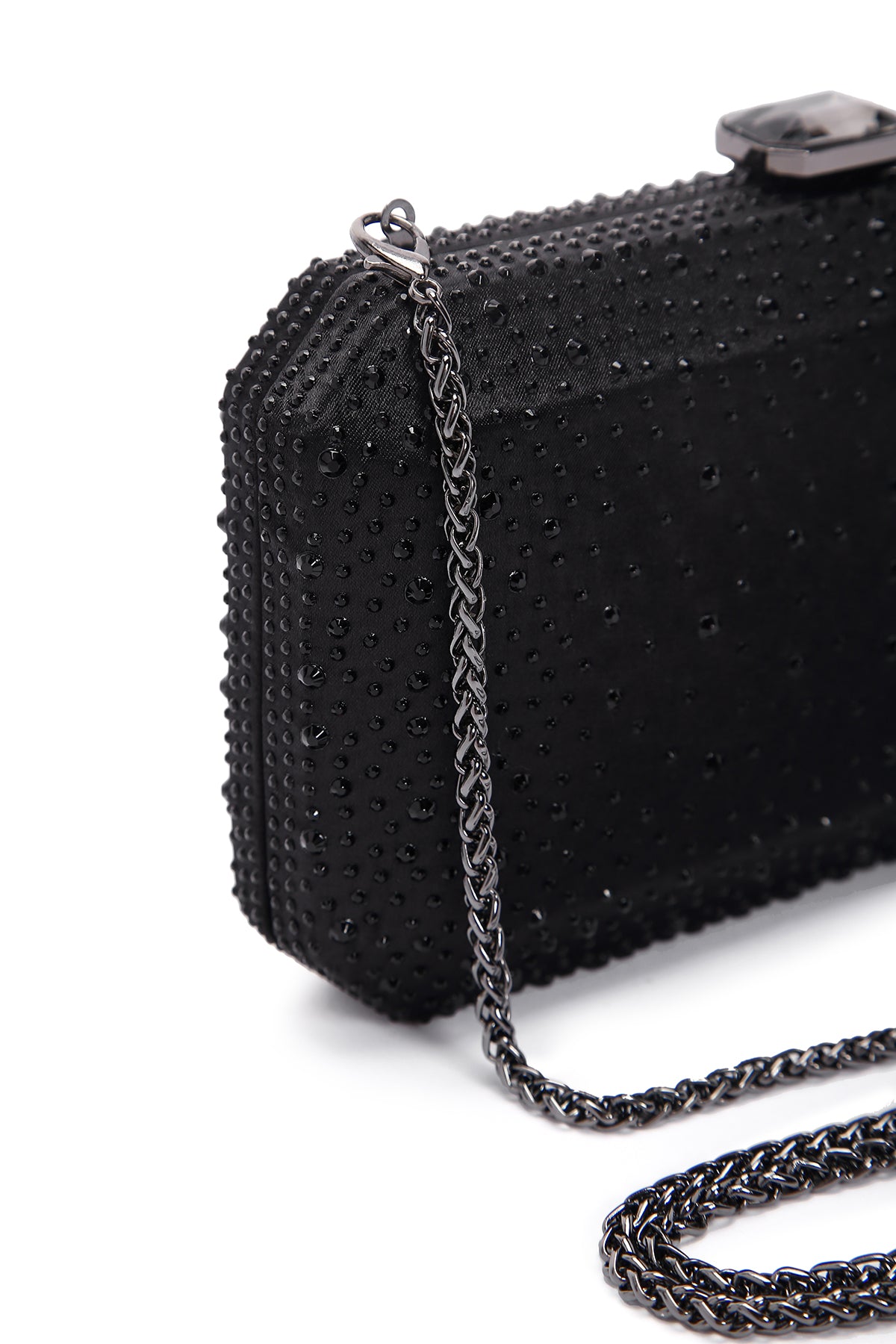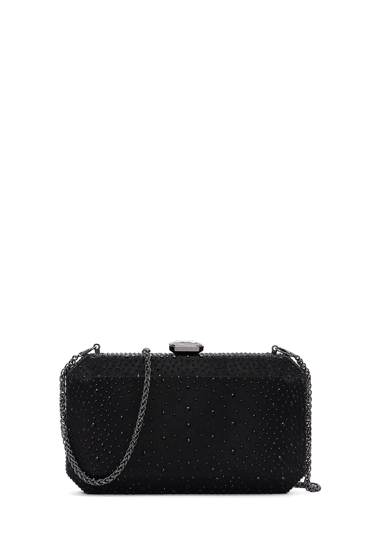 Kadın Siyah Uzun Zincir Askılı Taşlı Abiye Mini Portföy Çanta