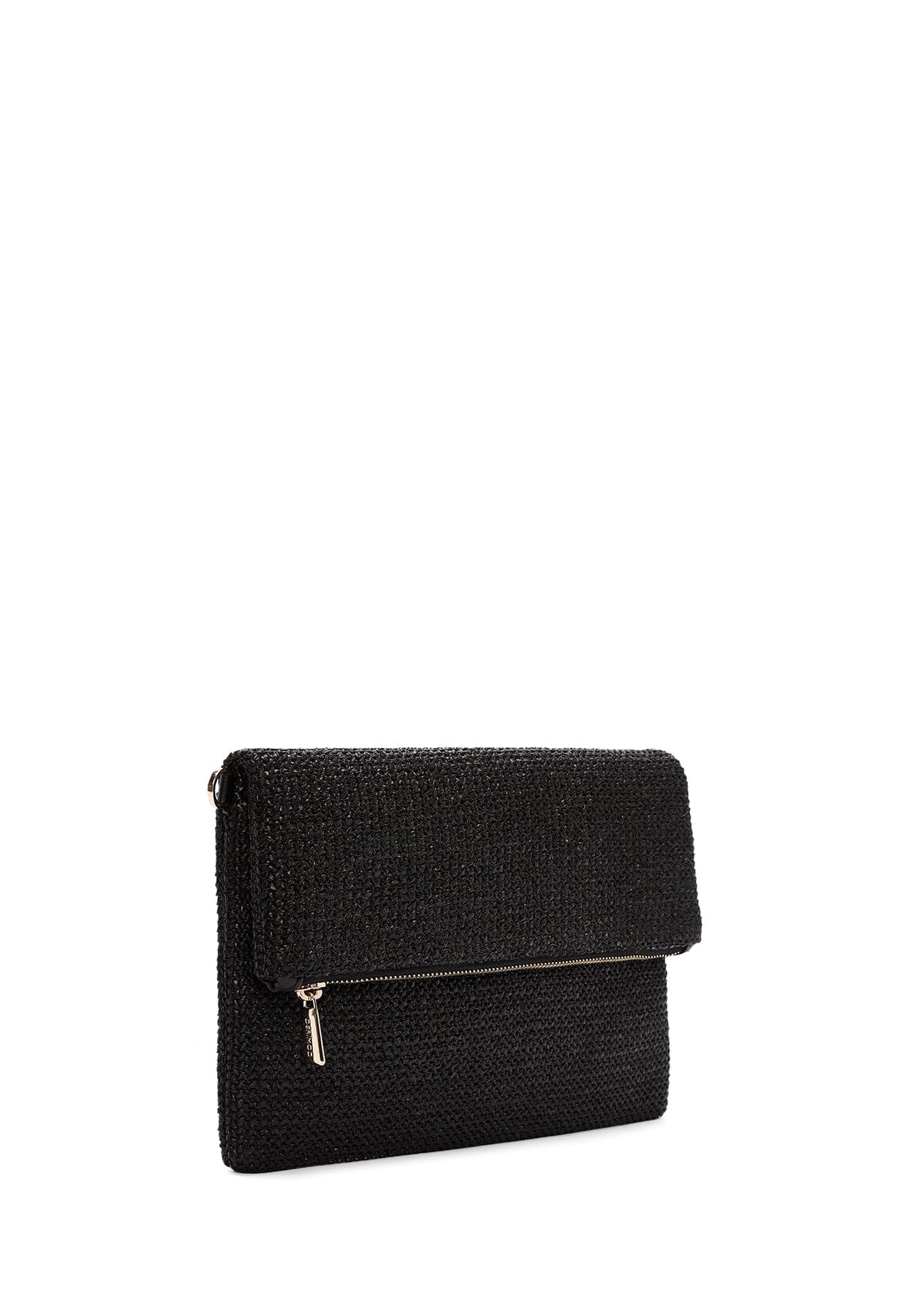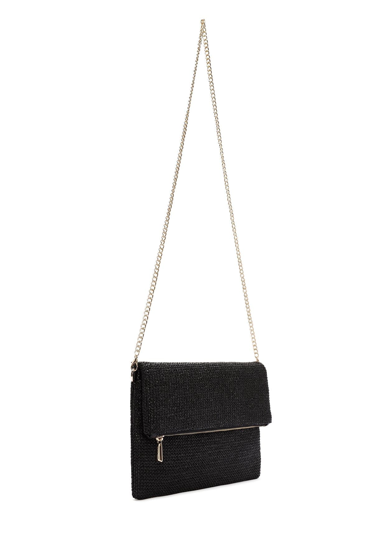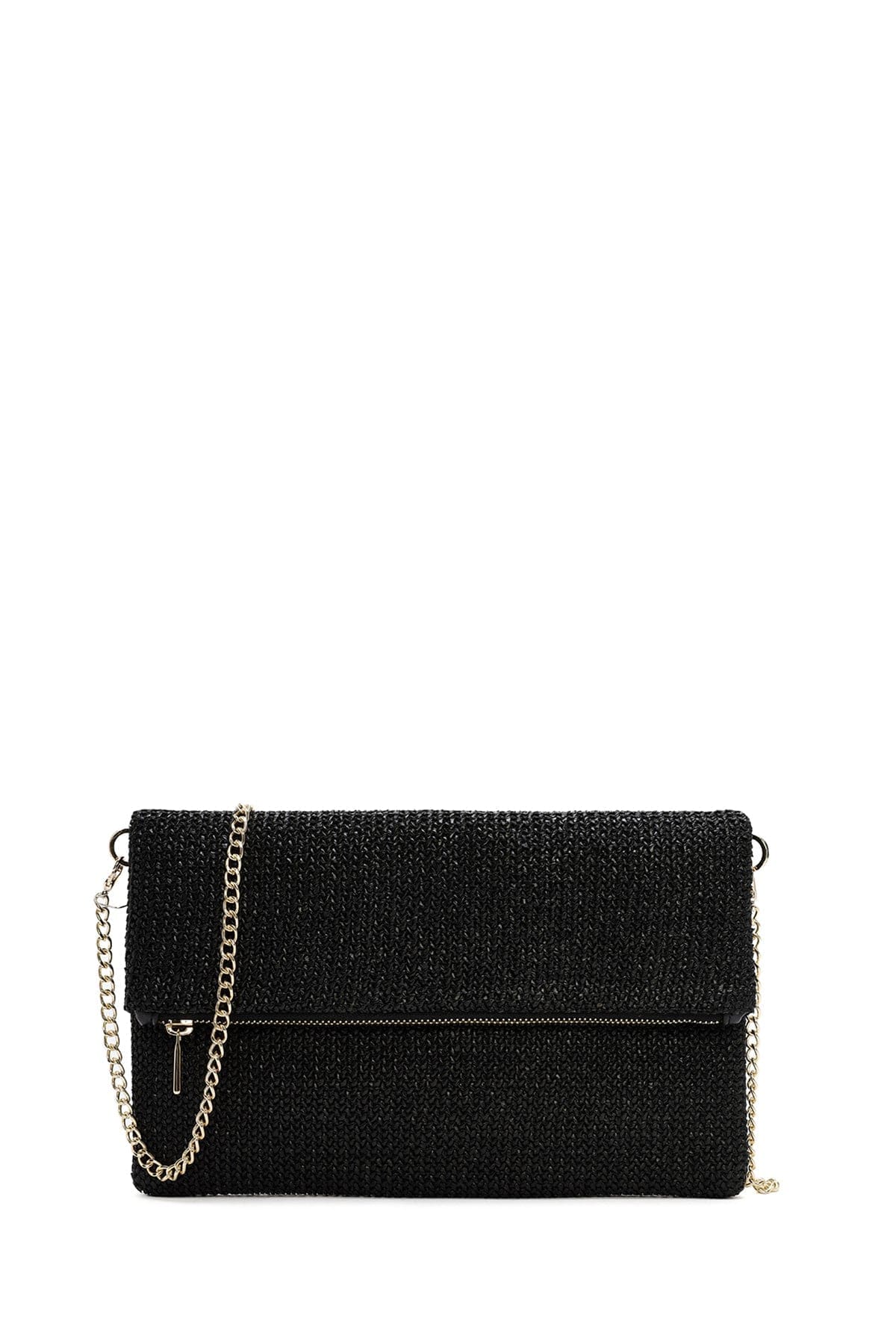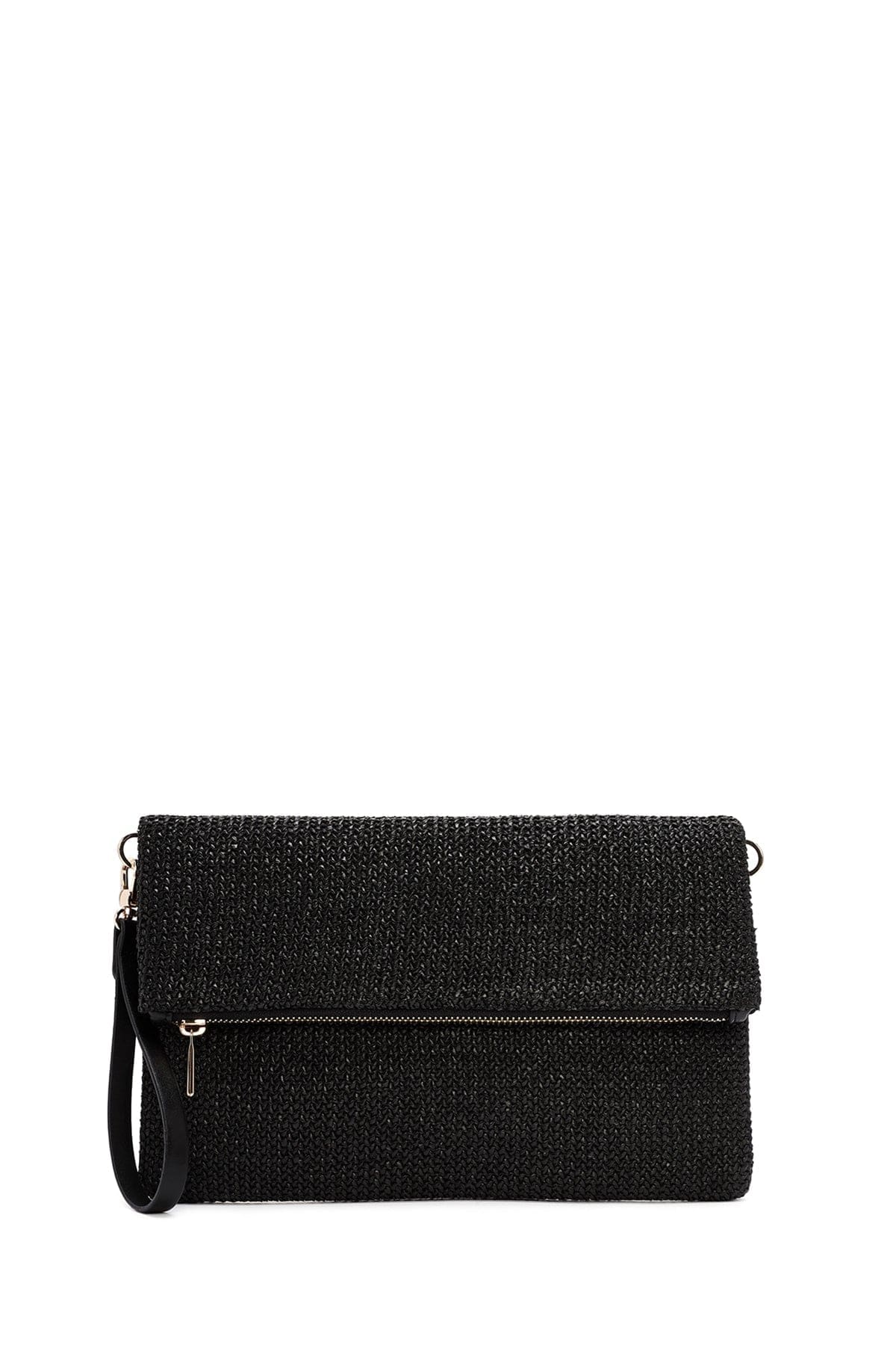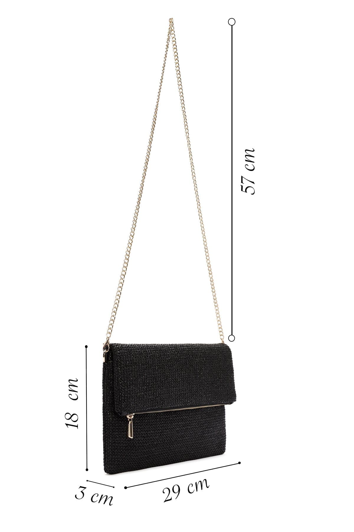 Kadın Siyah Uzun Zincir Askılı Hasır Portföy Çanta
