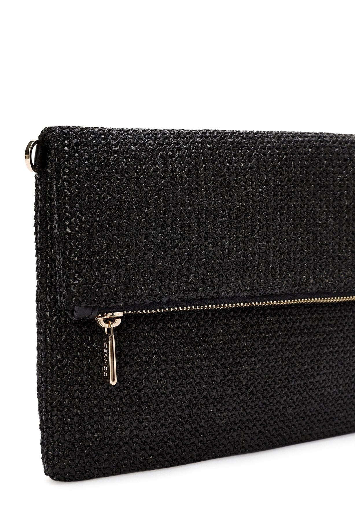 کیف کلاچ زنانه مشکی بند بلند زنجیری حصیری دری مد