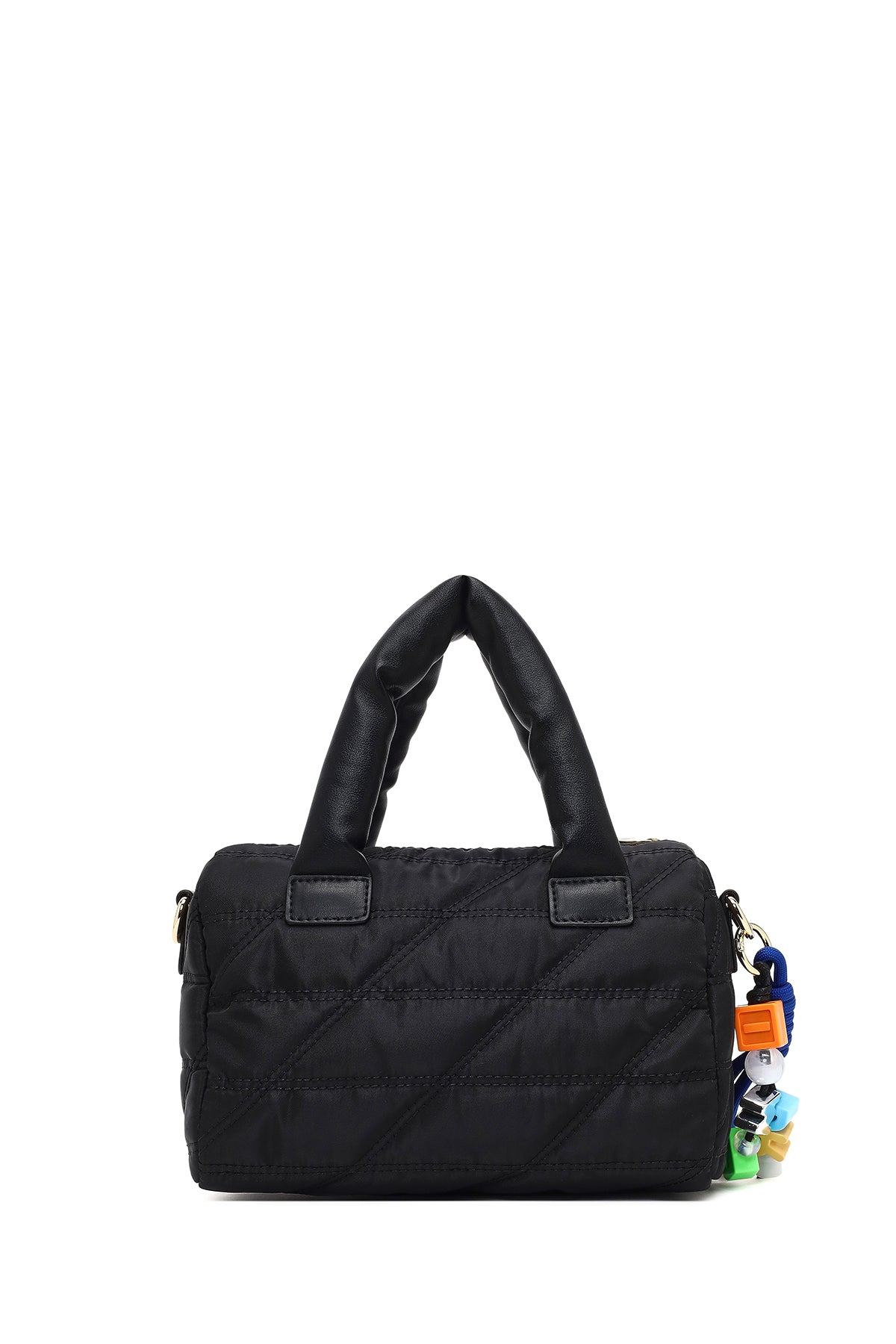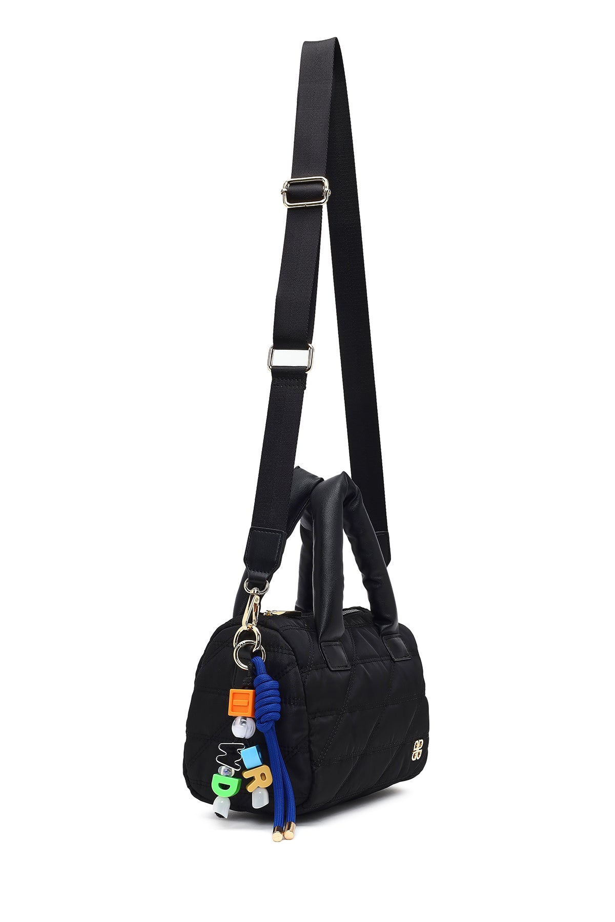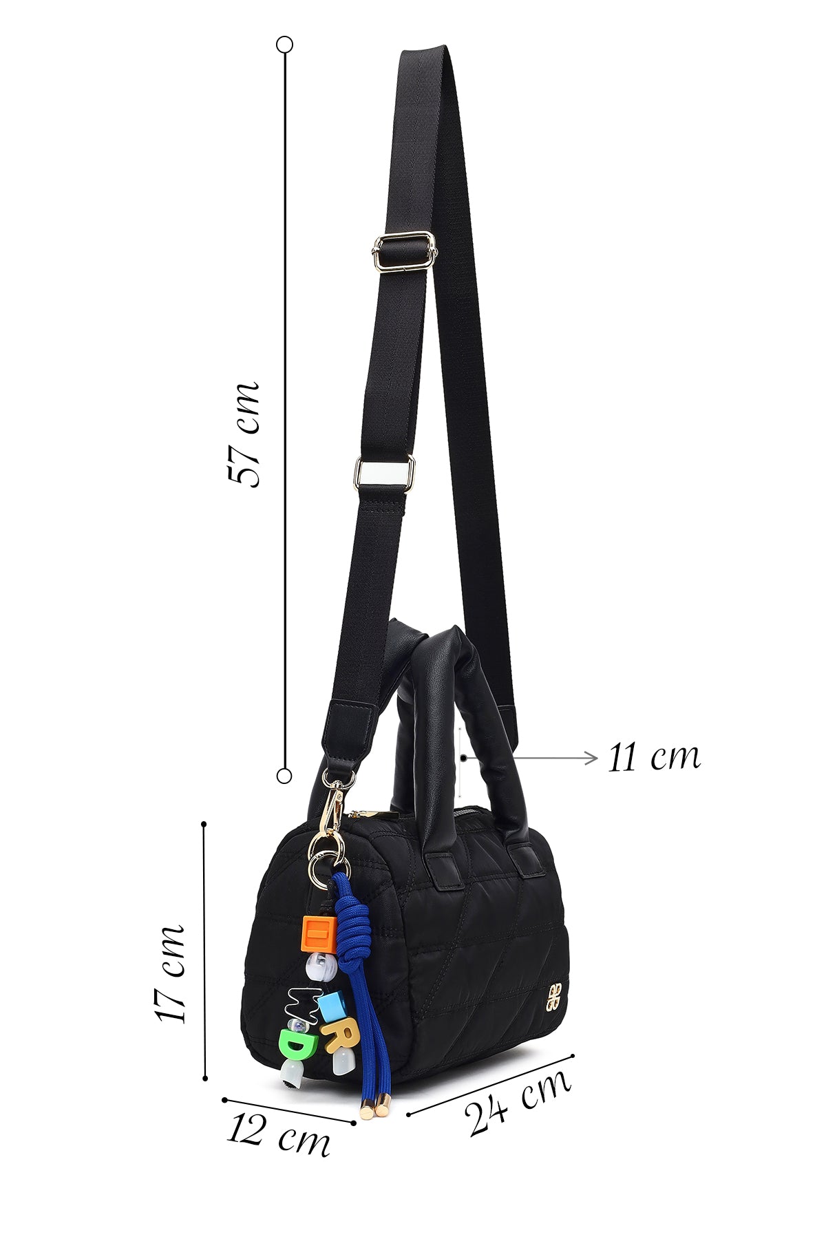 Kadın Siyah Uzun Askılı Charmlı Kumaş Kol Çantası