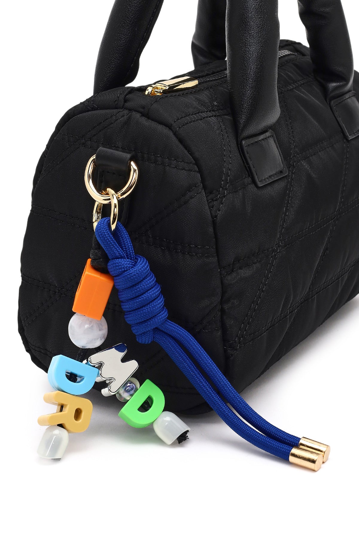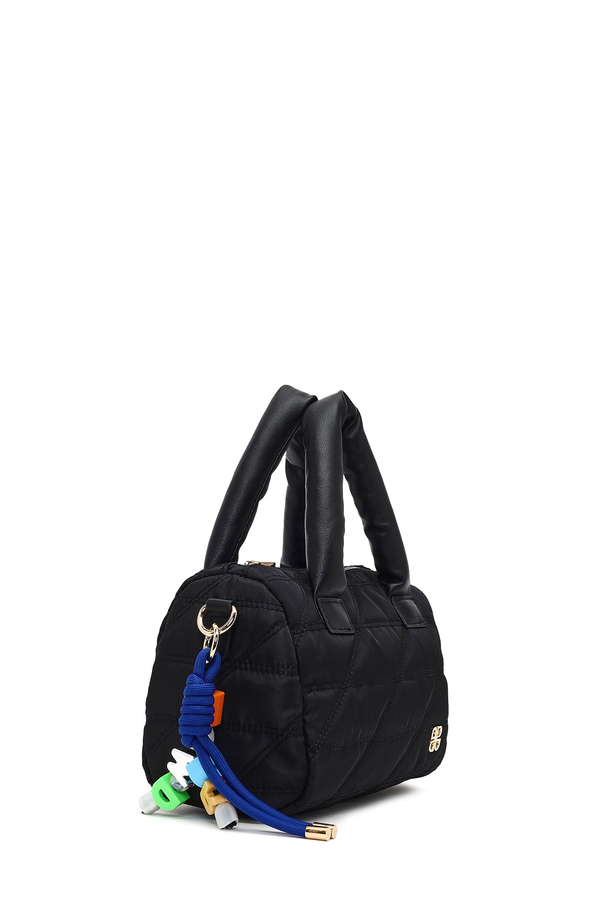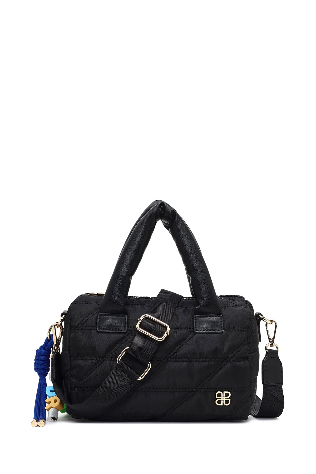 Kadın Siyah Uzun Askılı Charmlı Kumaş Kol Çantası