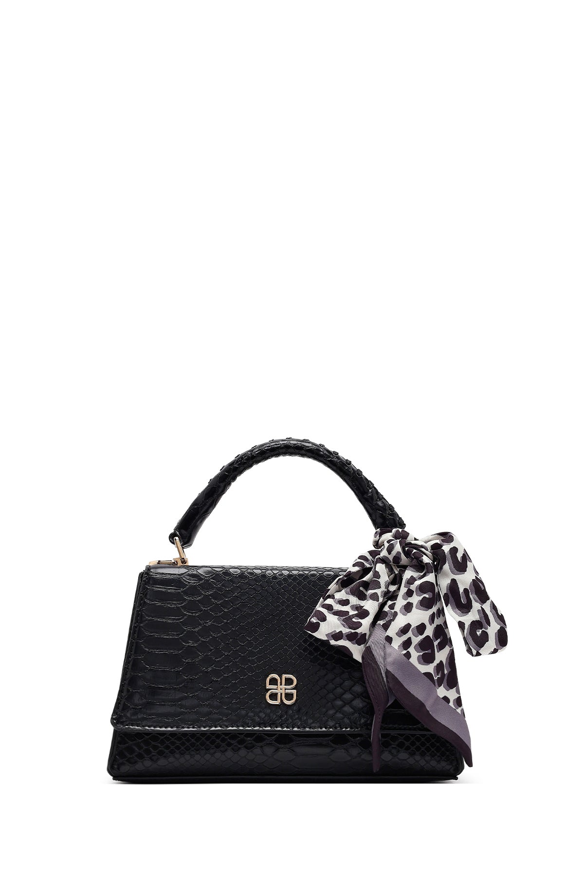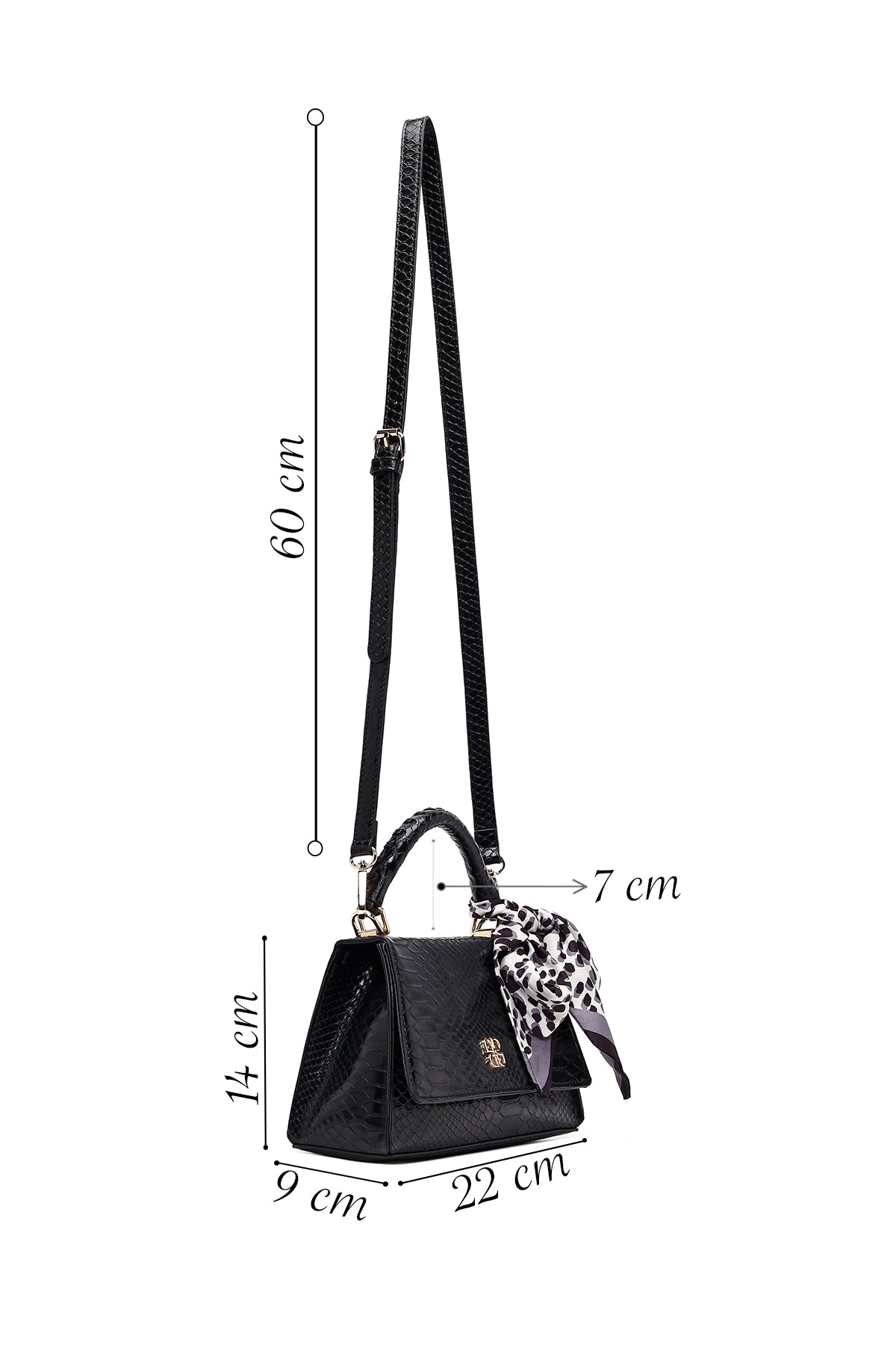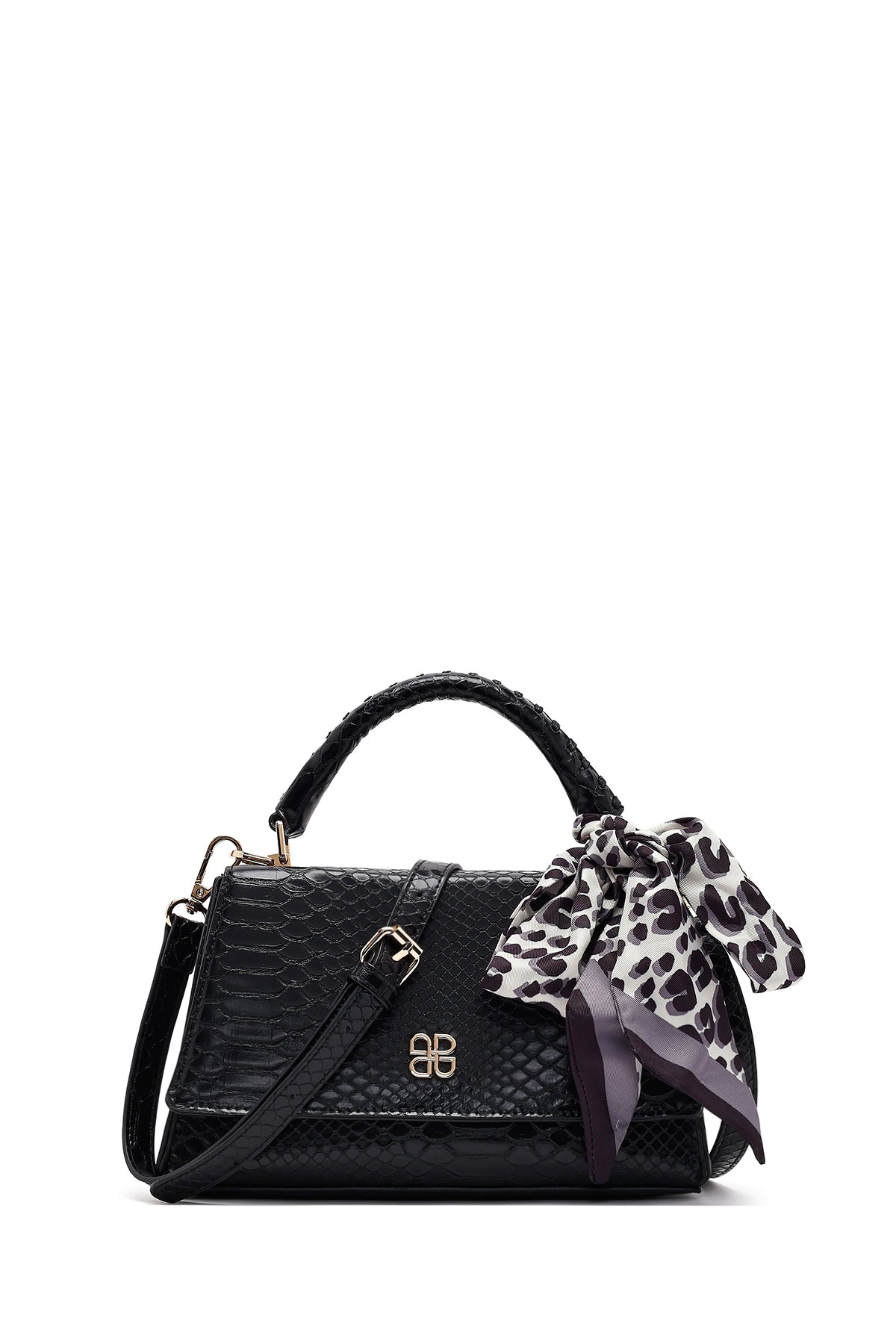 Kadın Siyah Uzun Askılı Kroko Desenli Klasik Kol Çantası