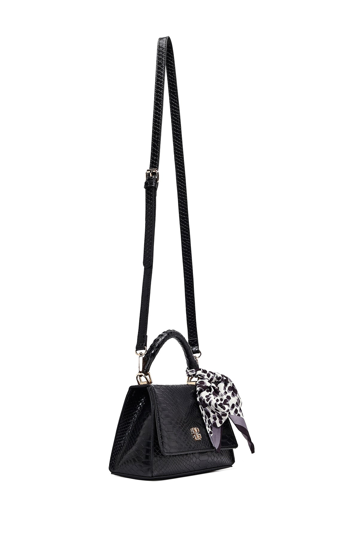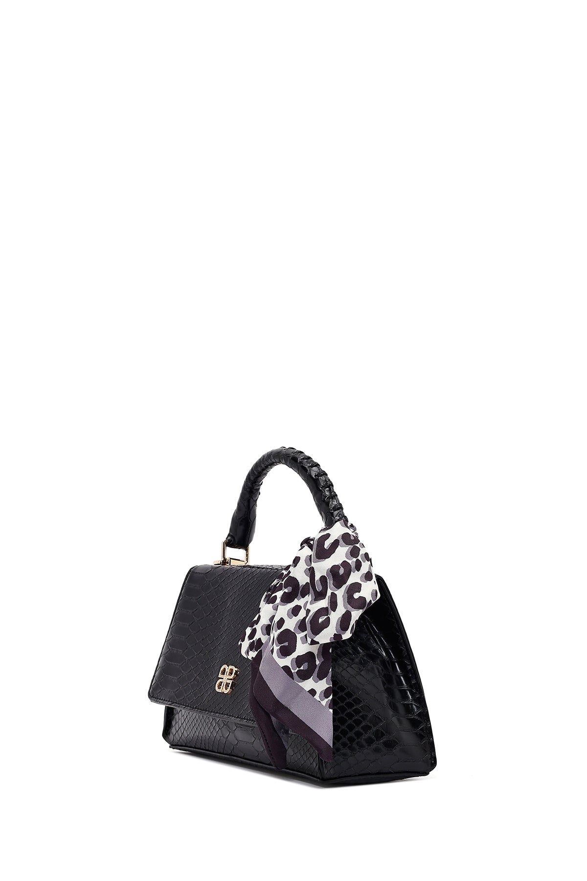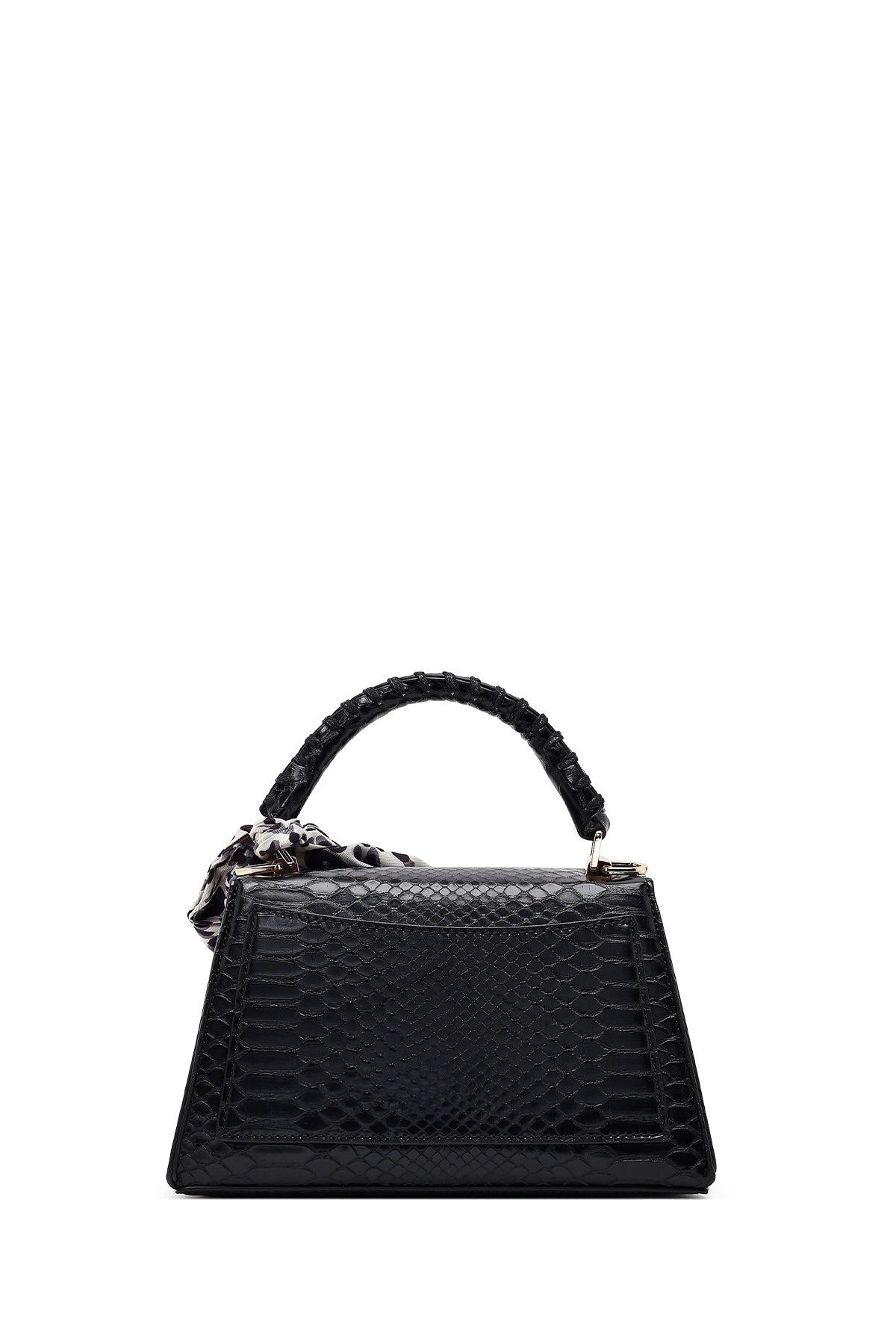 Kadın Siyah Uzun Askılı Kroko Desenli Klasik Kol Çantası