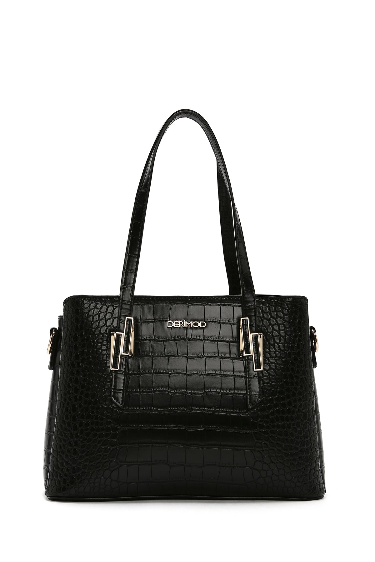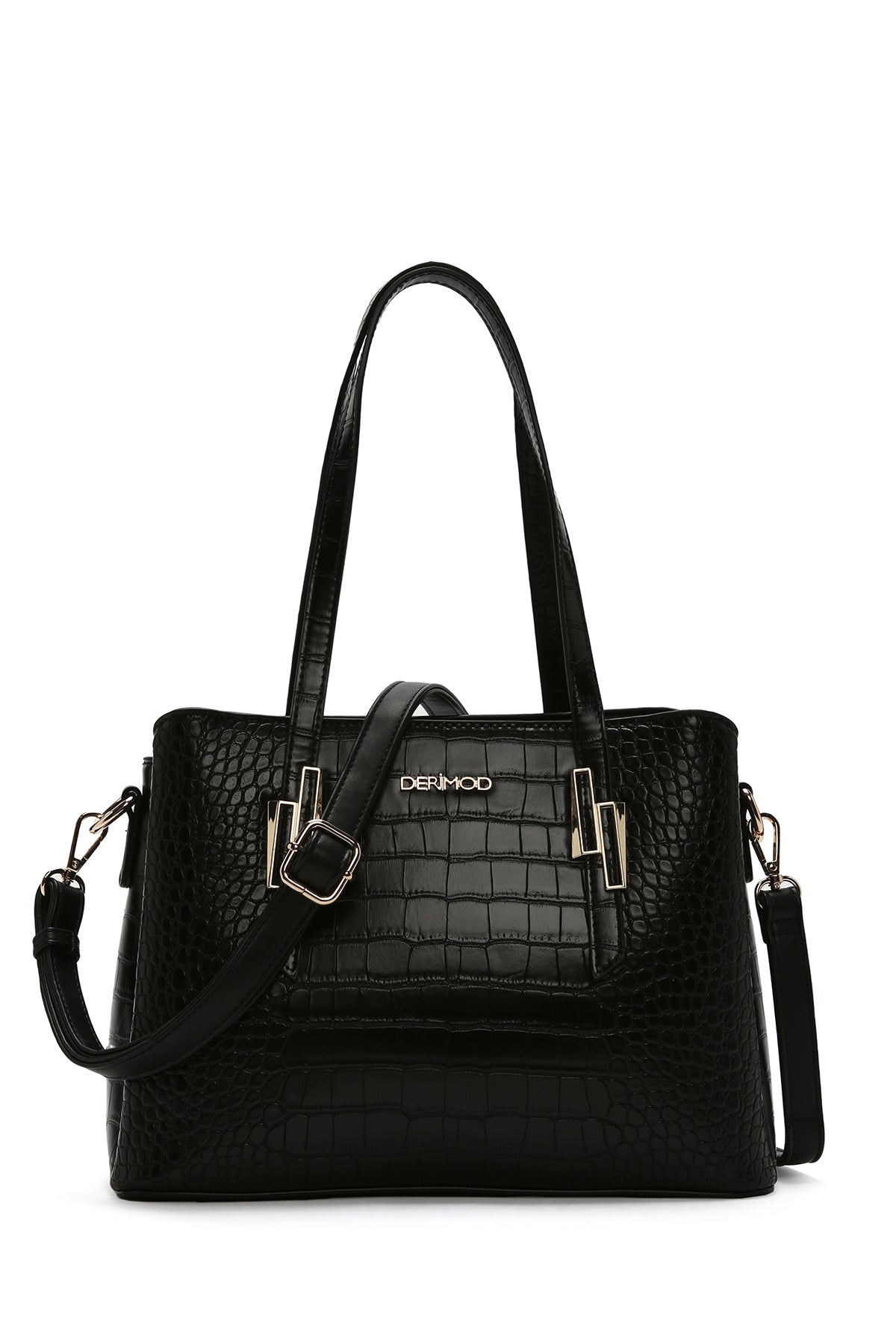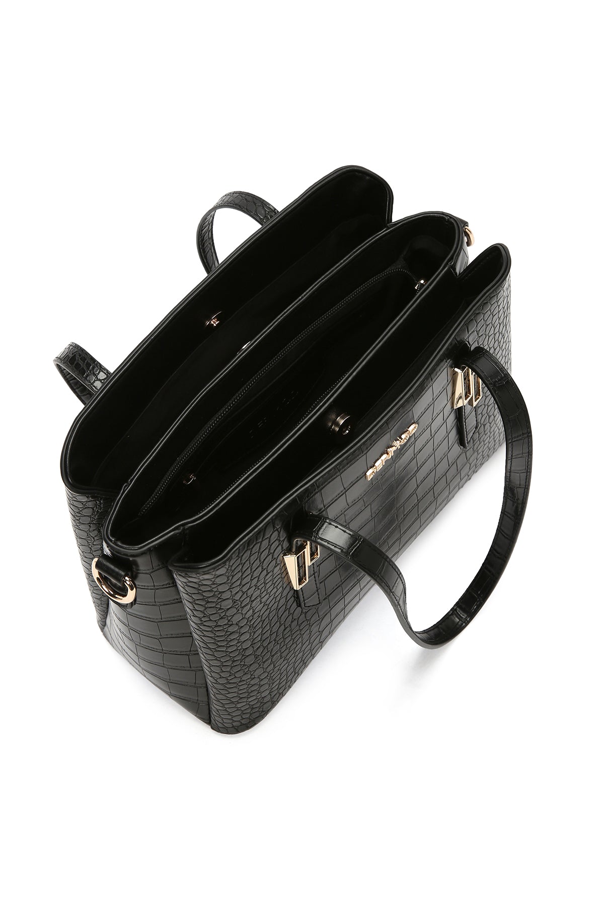Kadın Siyah Uzun Askılı Kroko Omuz Çantası