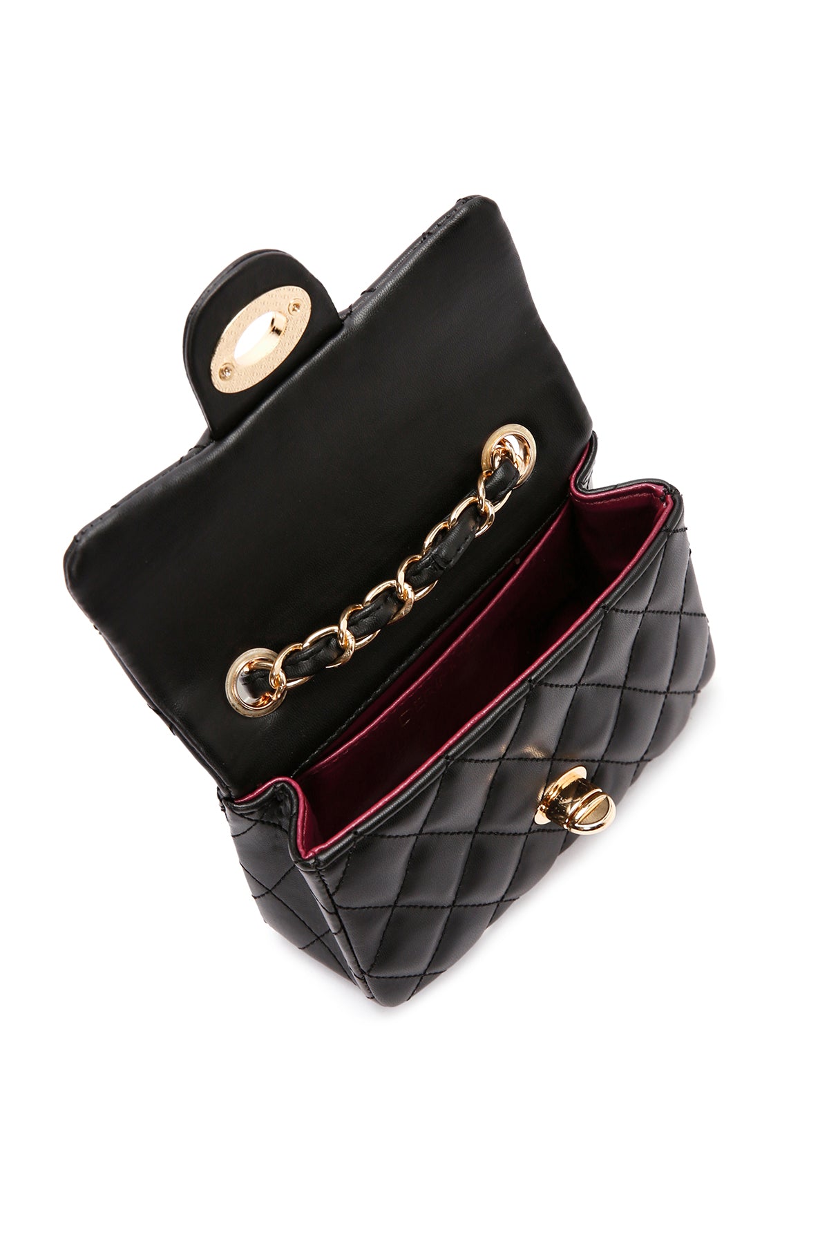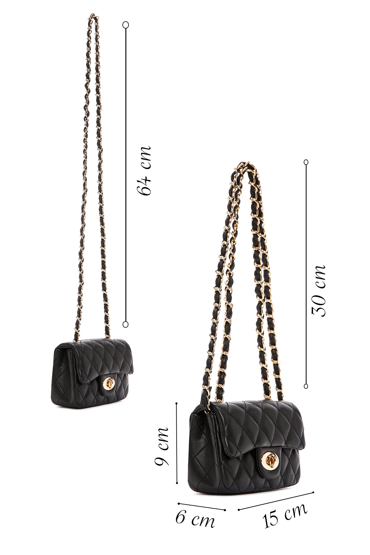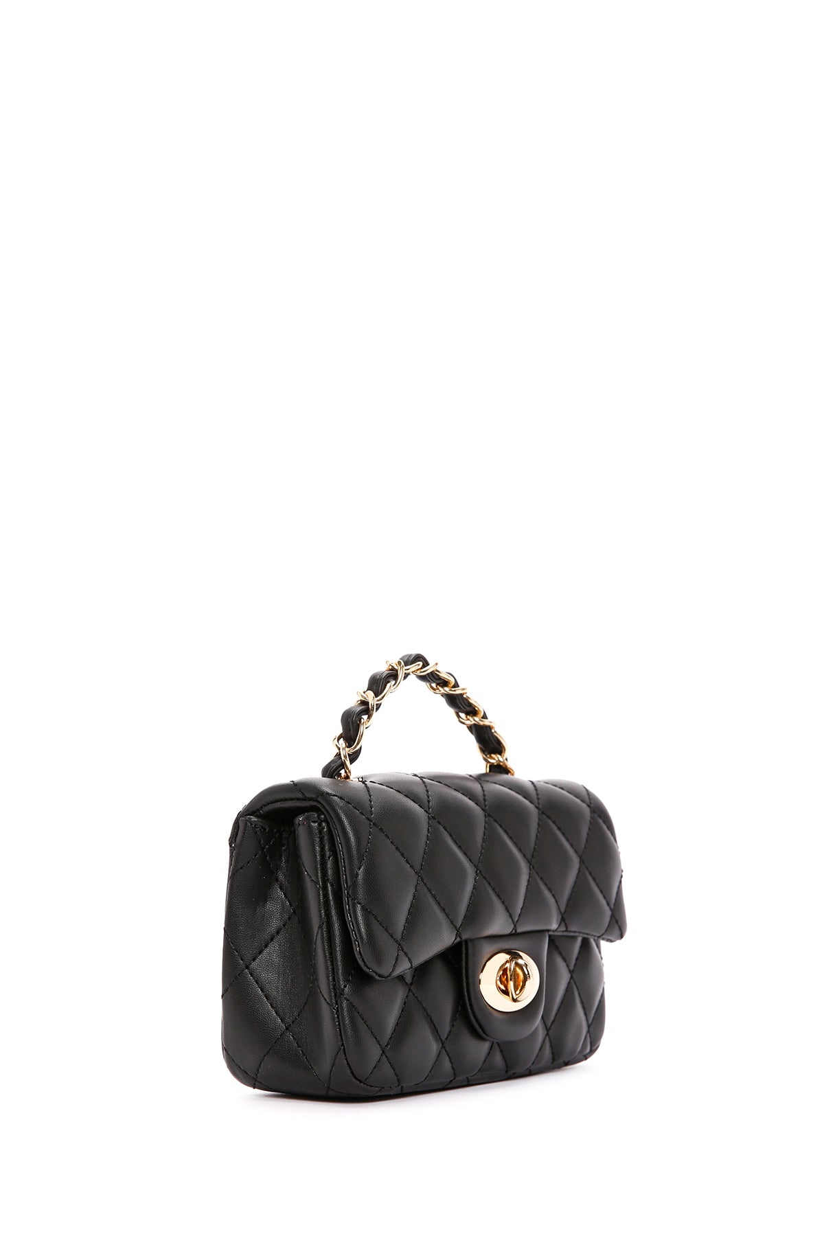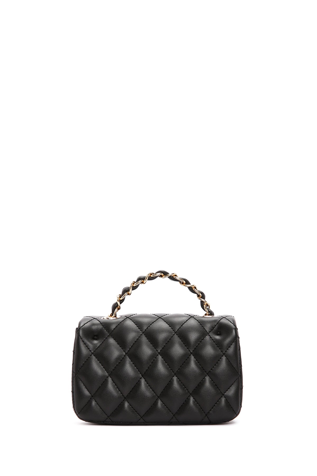 Kadın Siyah Uzun Askılı Kapitone Mini Çapraz Çanta