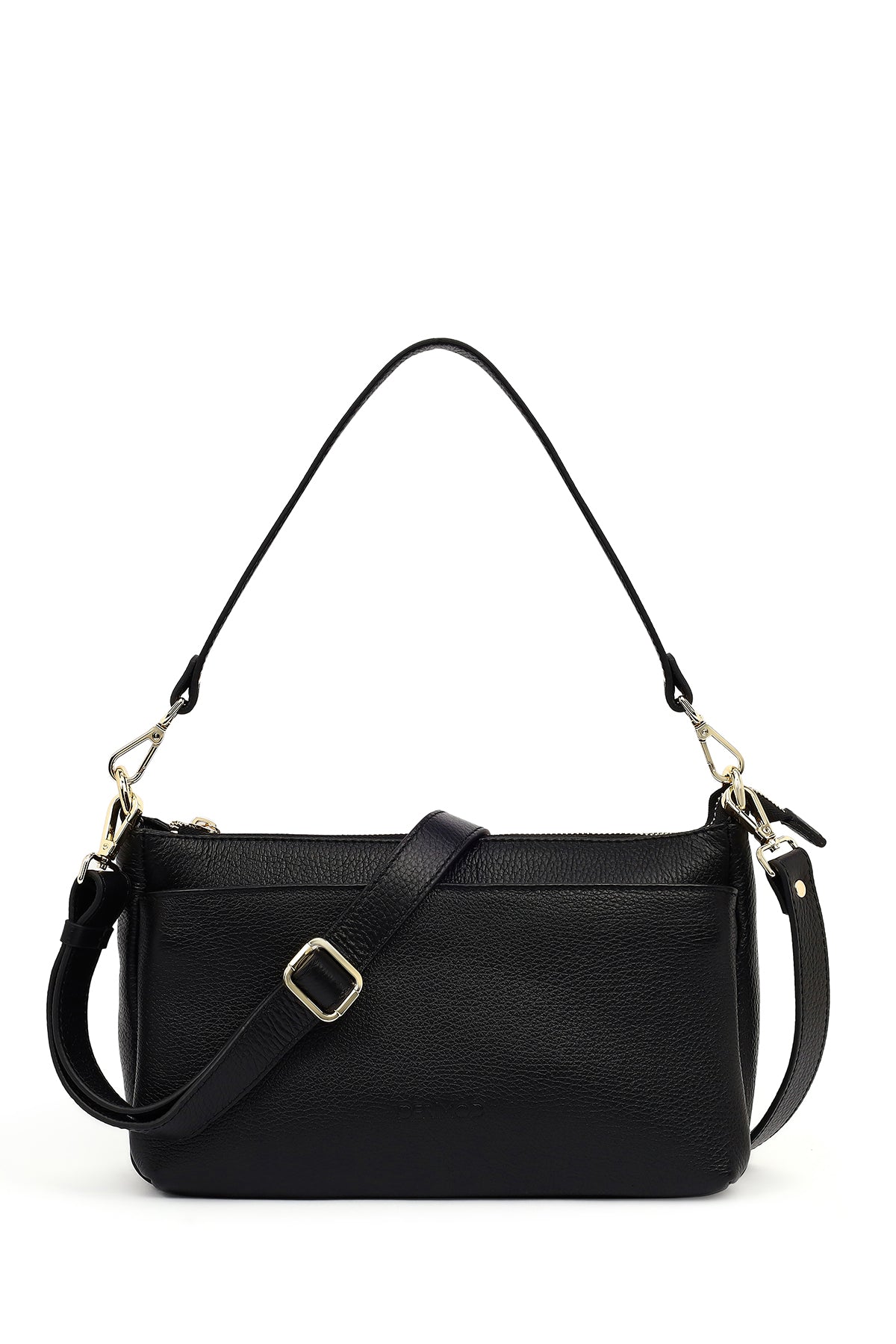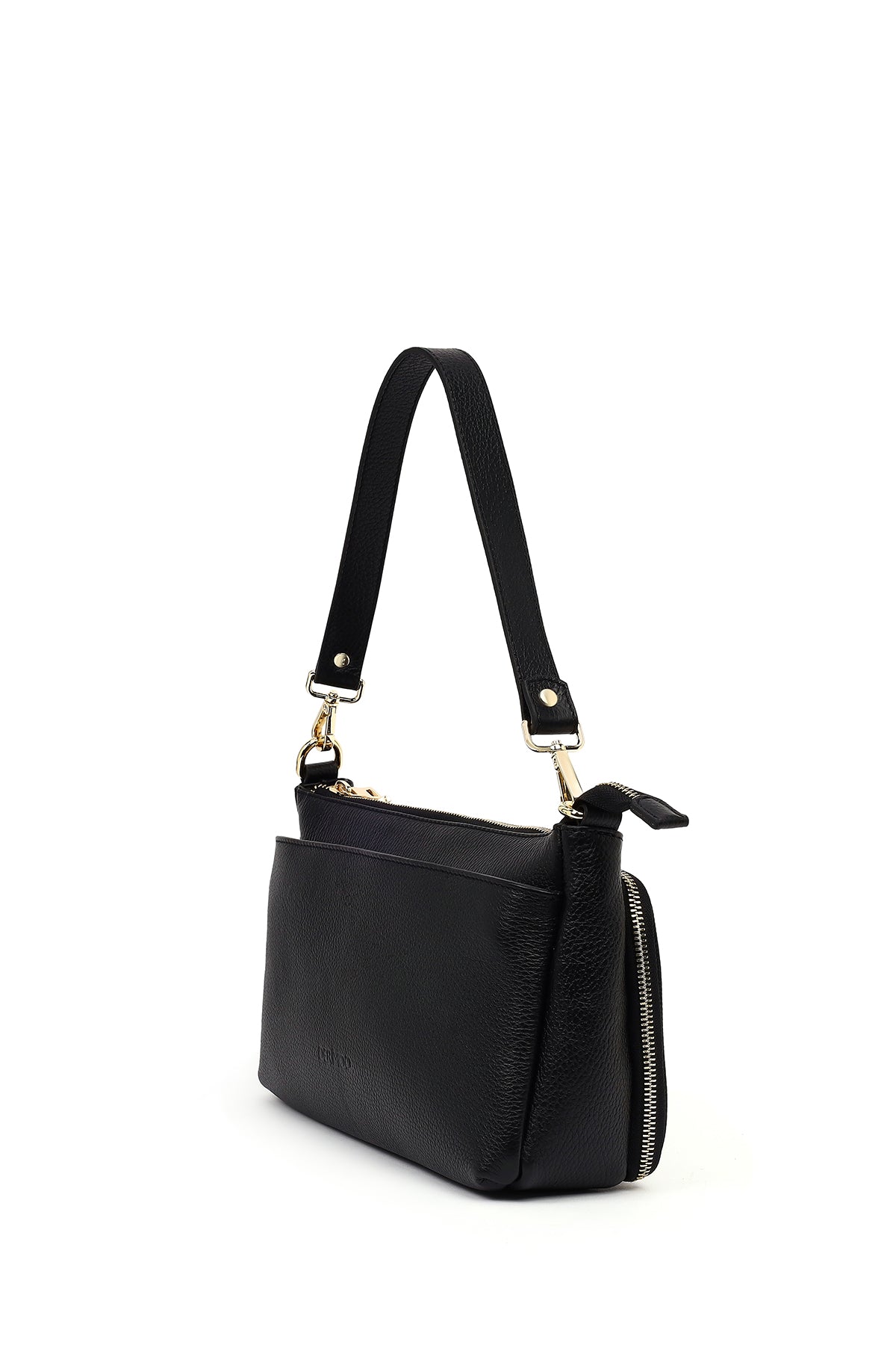 Kadın Siyah Uzun Askılı Deri Kol Çantası
