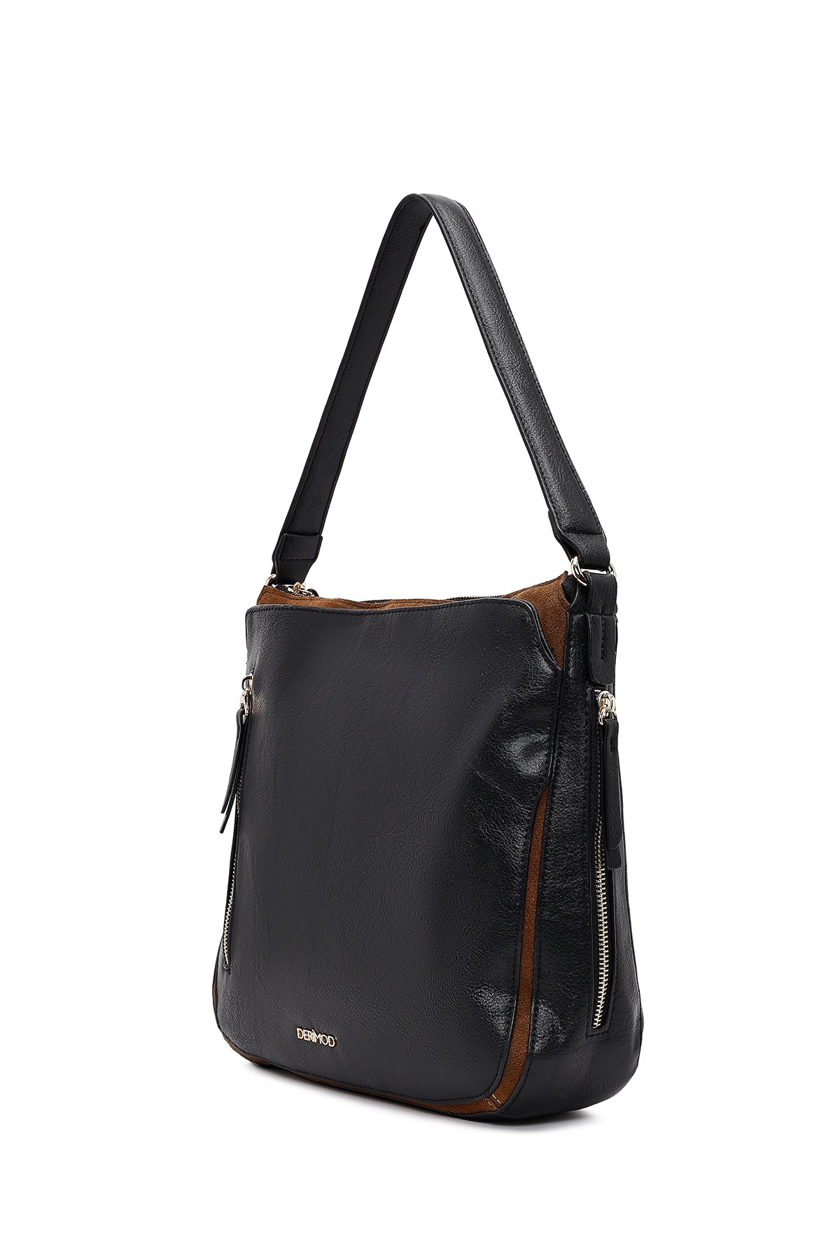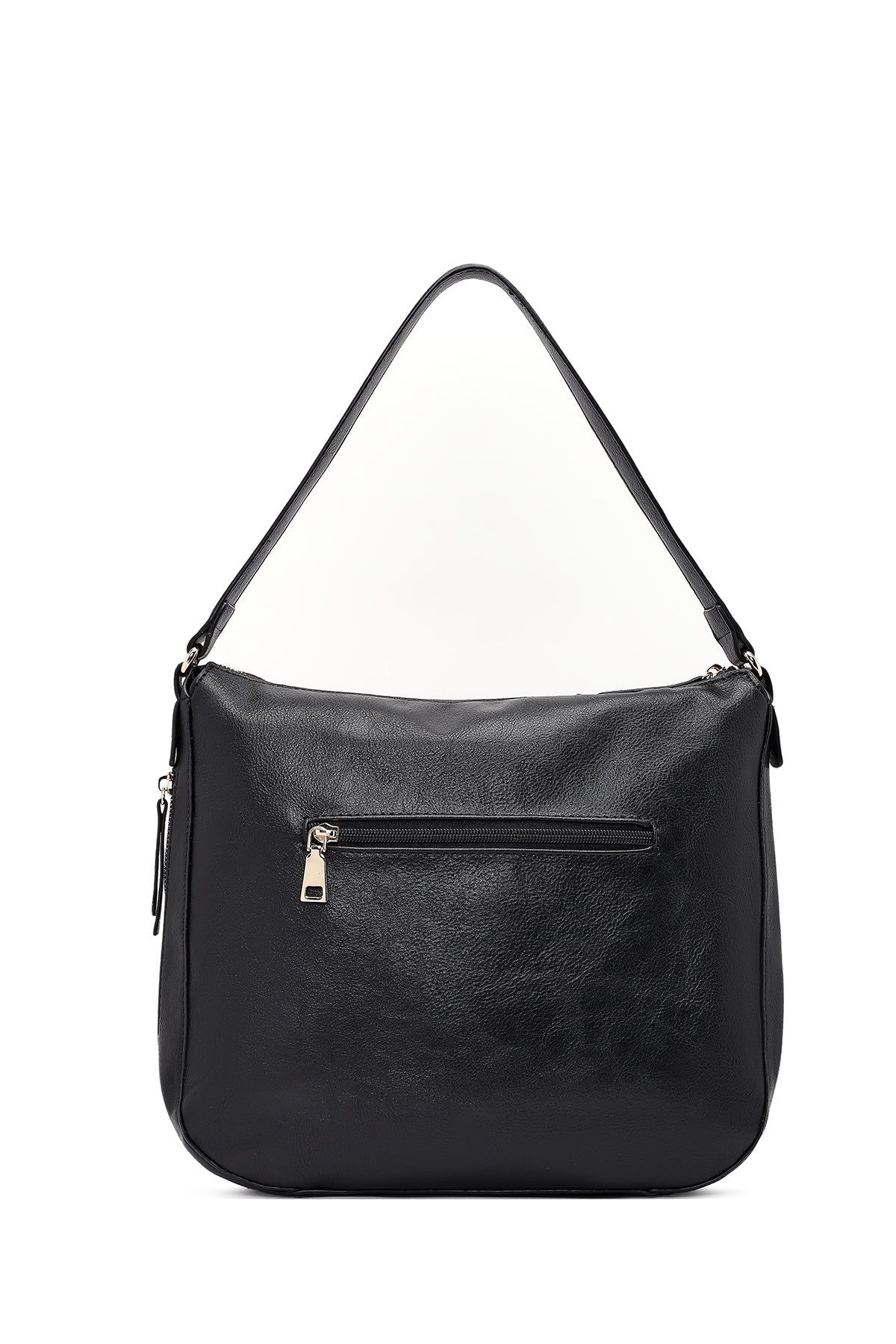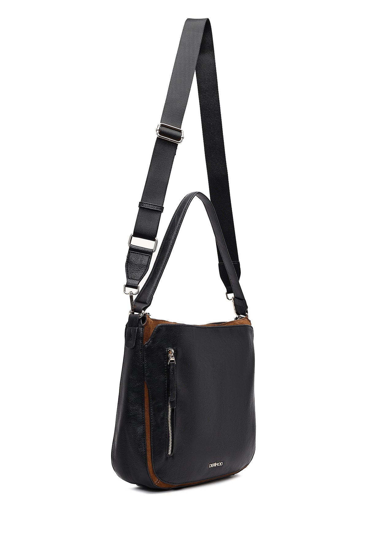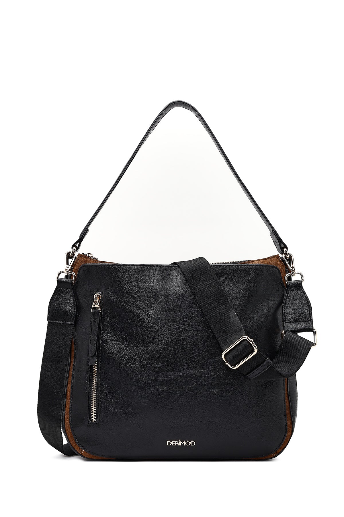 Kadın Siyah Uzun Askılı Deri Omuz Çantası