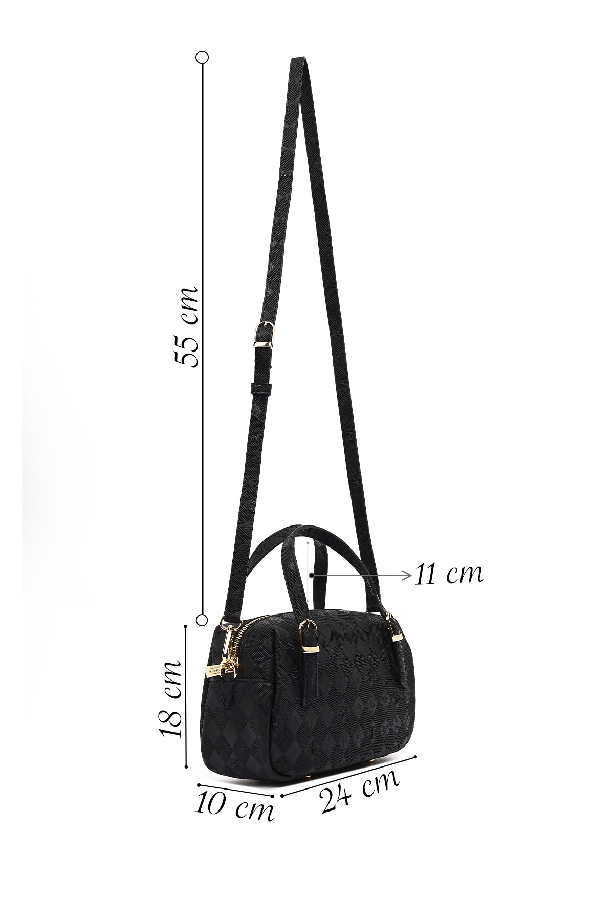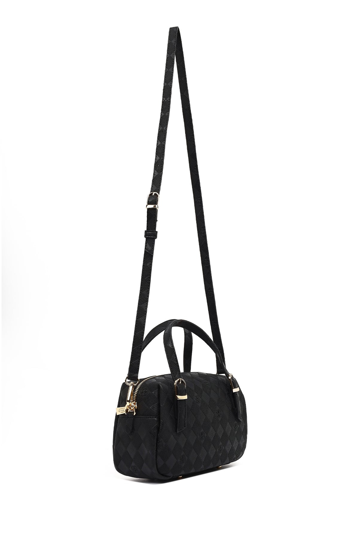 Kadın Siyah Uzun Askılı Baskılı Çapraz Çanta