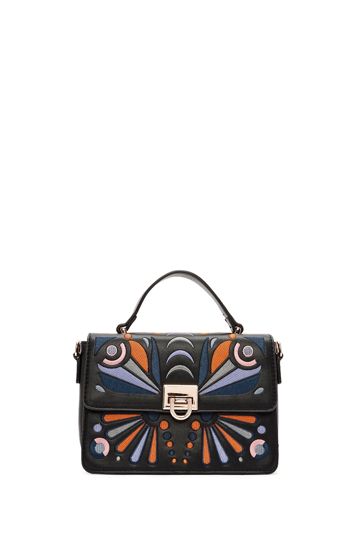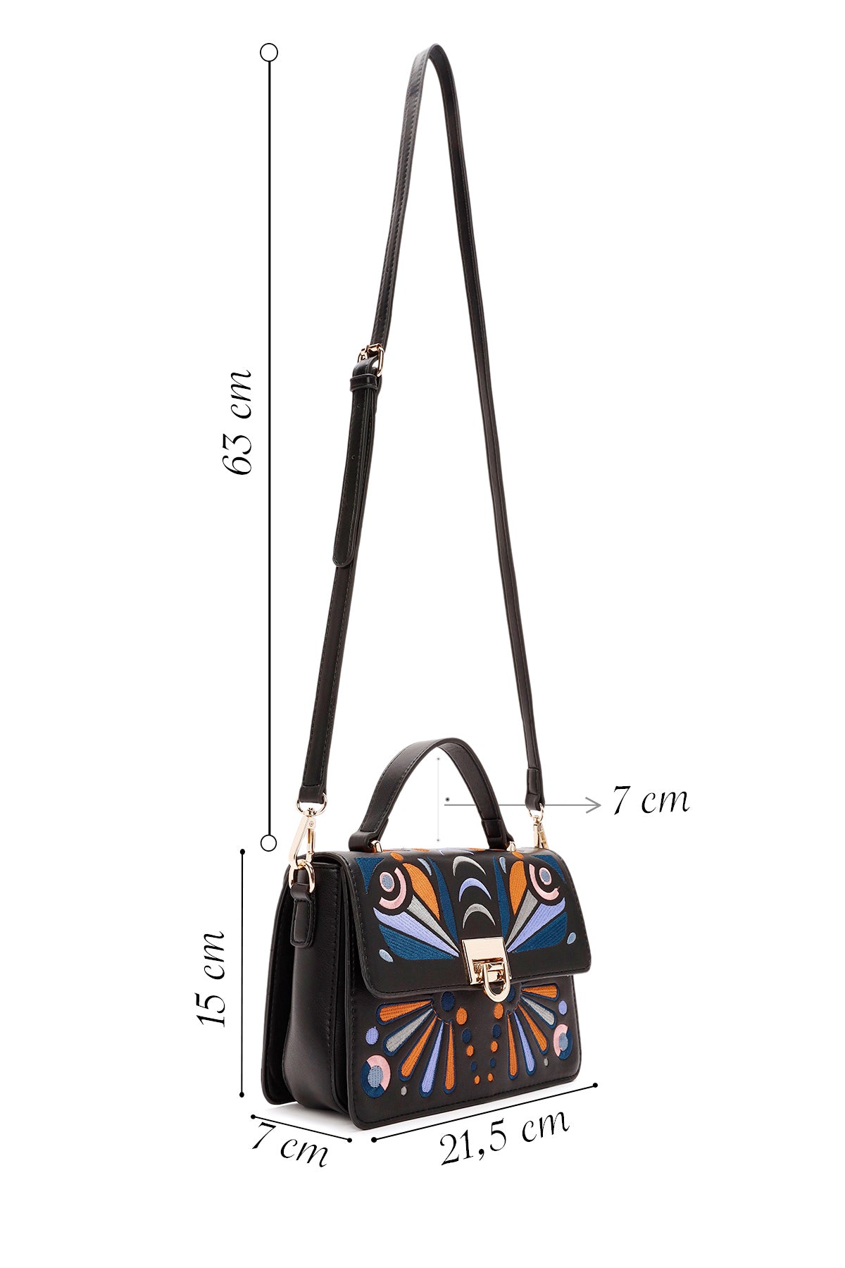 Kadın Siyah Uzun Askılı Baskılı Kol Çantası