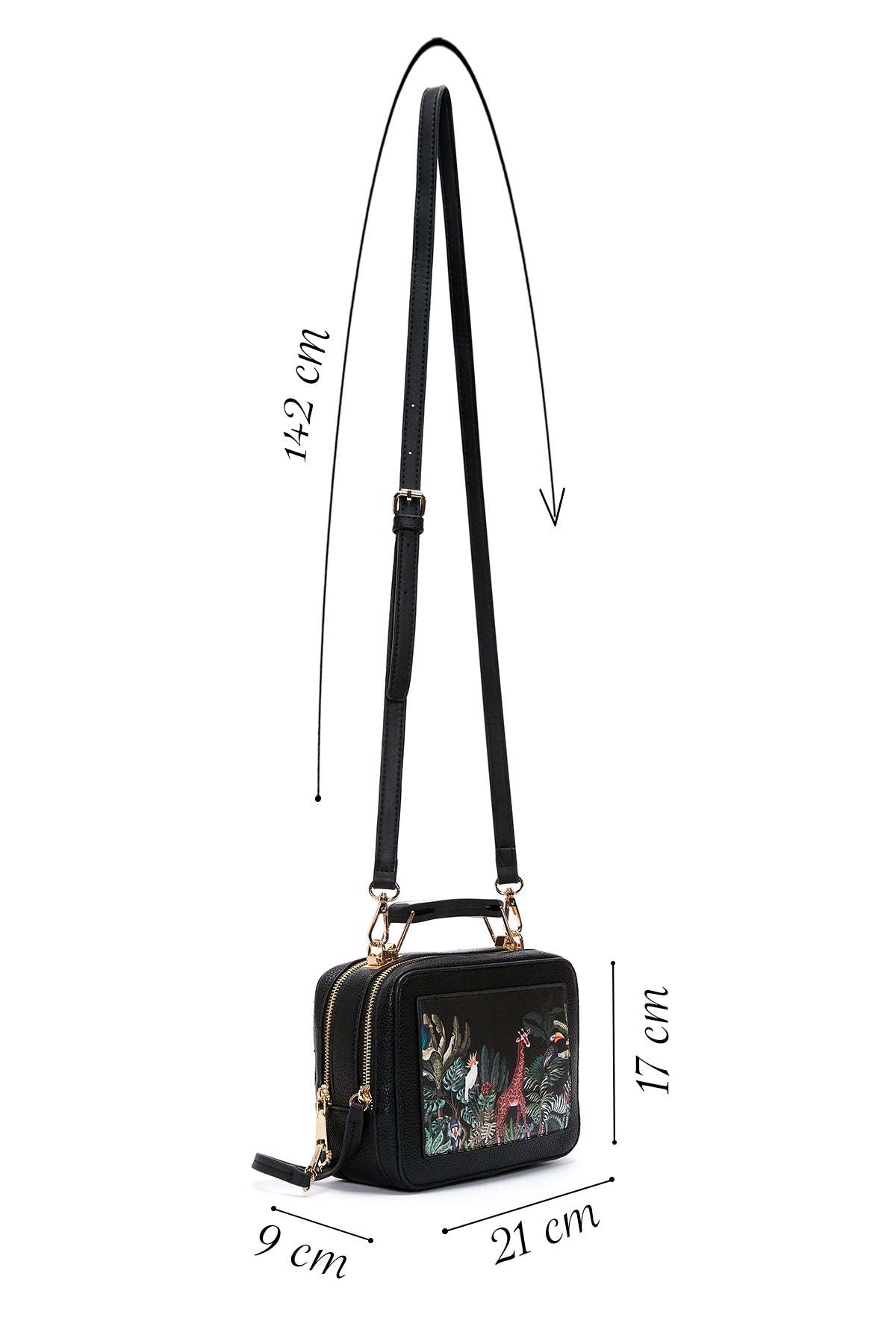 Kadın Siyah Uzun Askılı Baskılı Kol Çantası