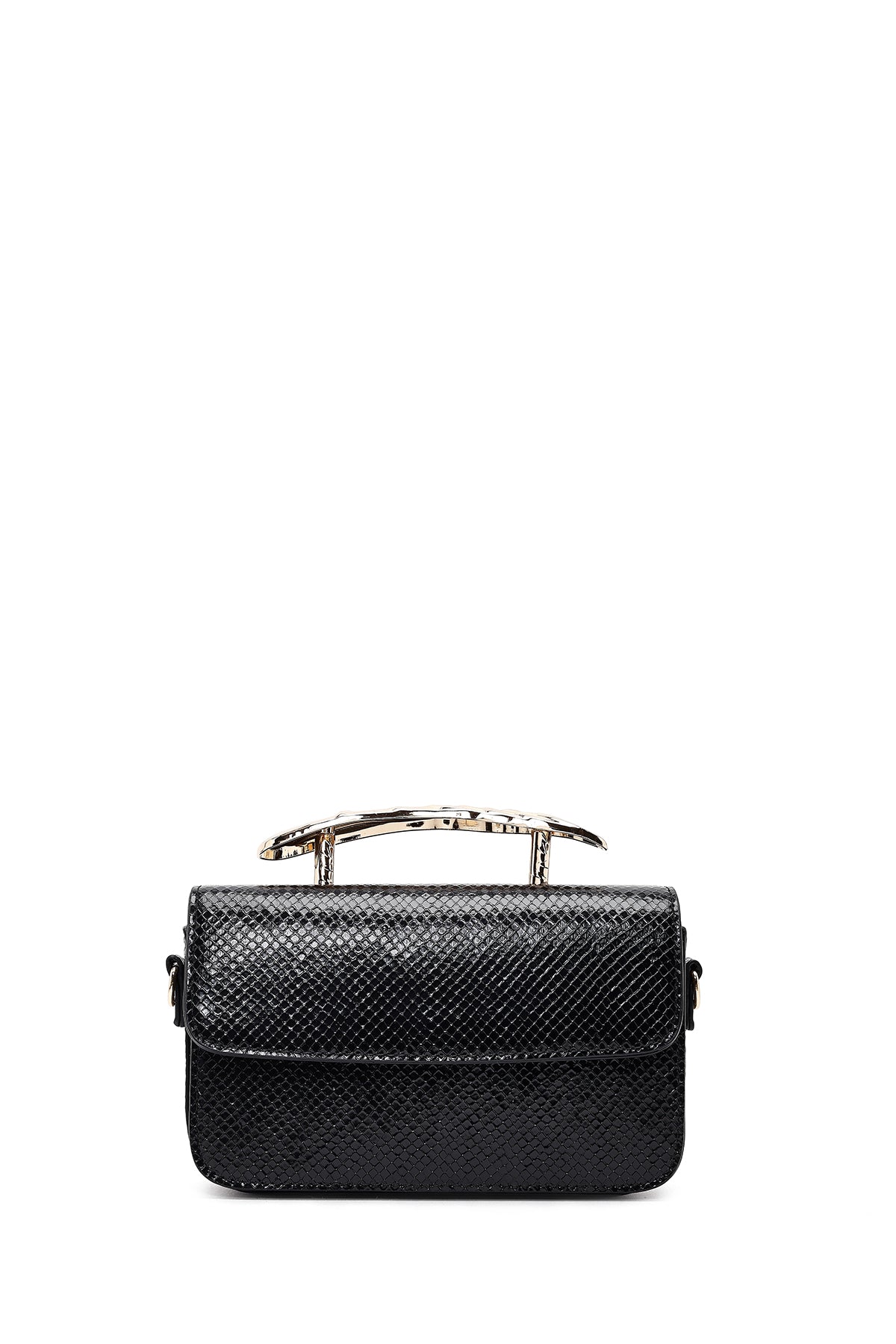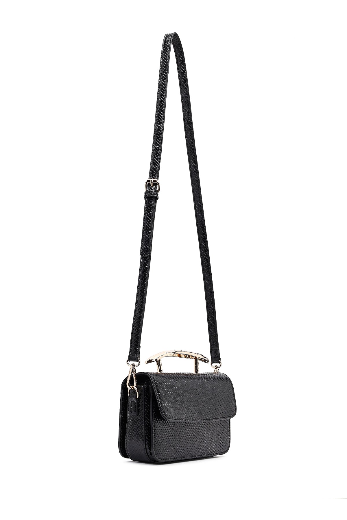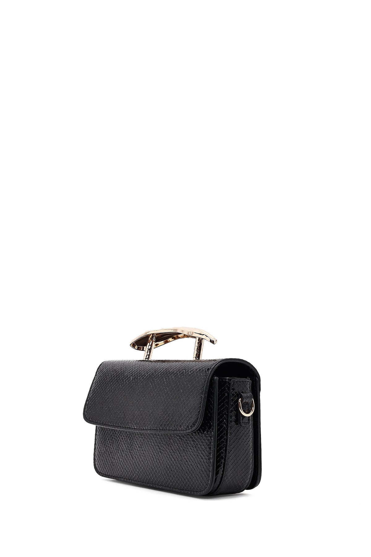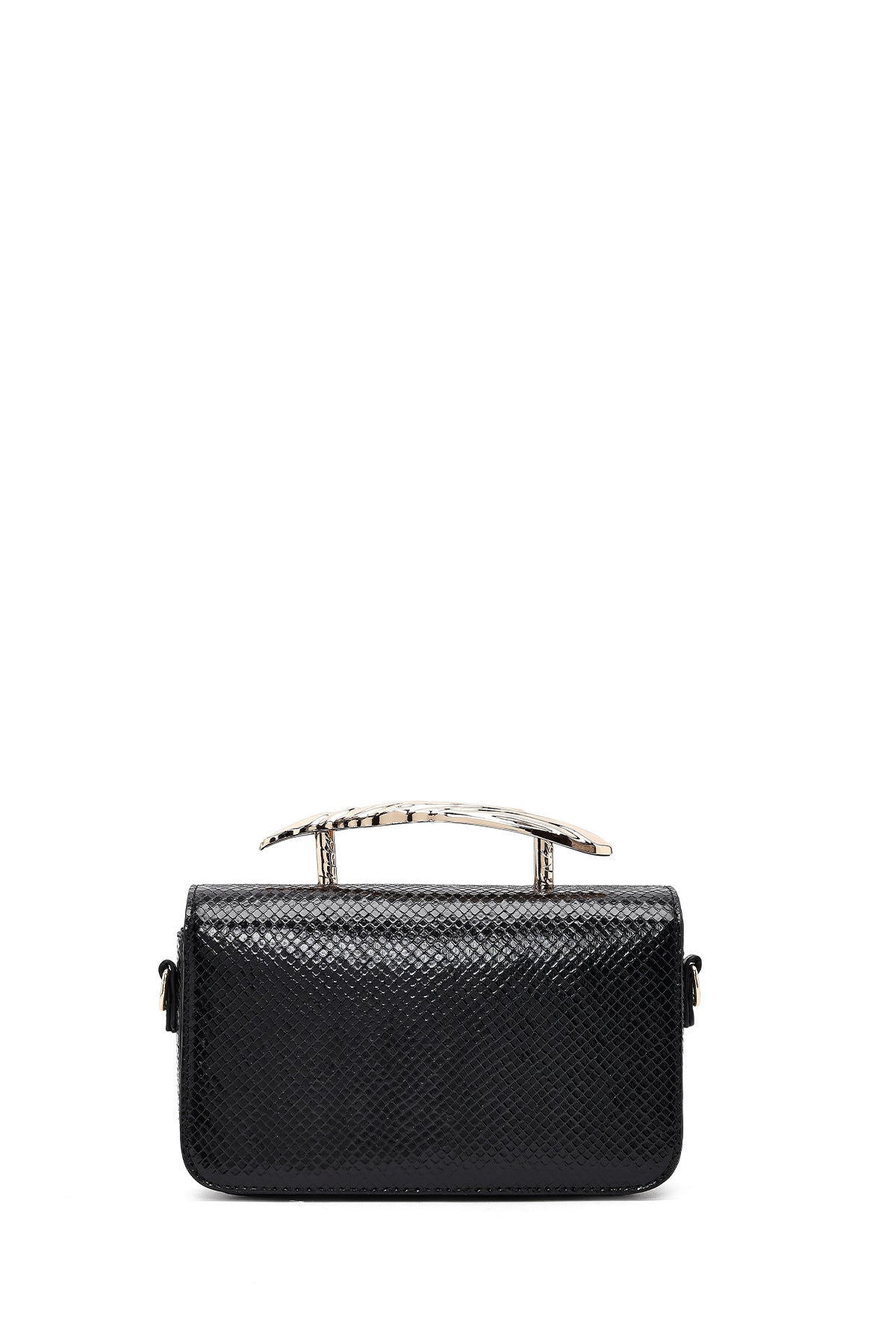 Kadın Siyah Uzun Askılı Desenli Mini Kol Çantası