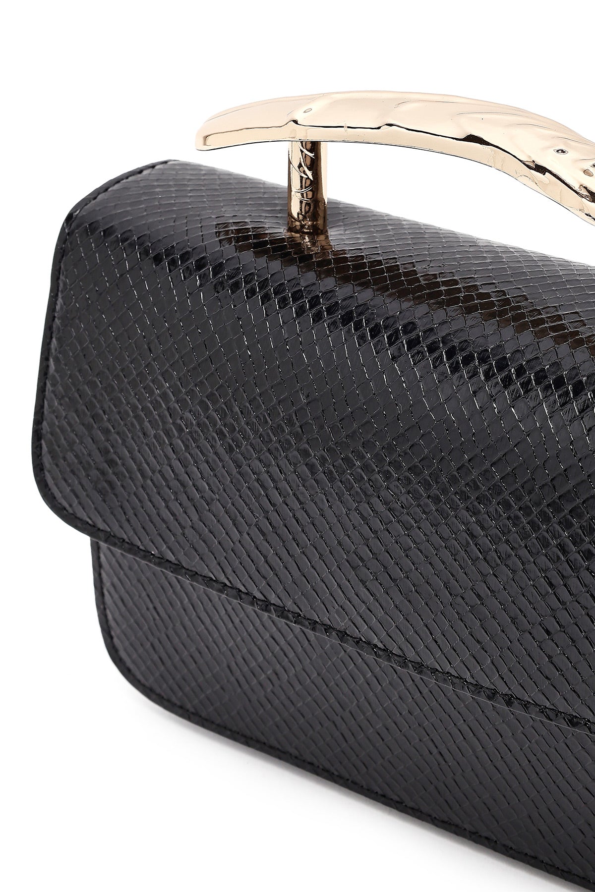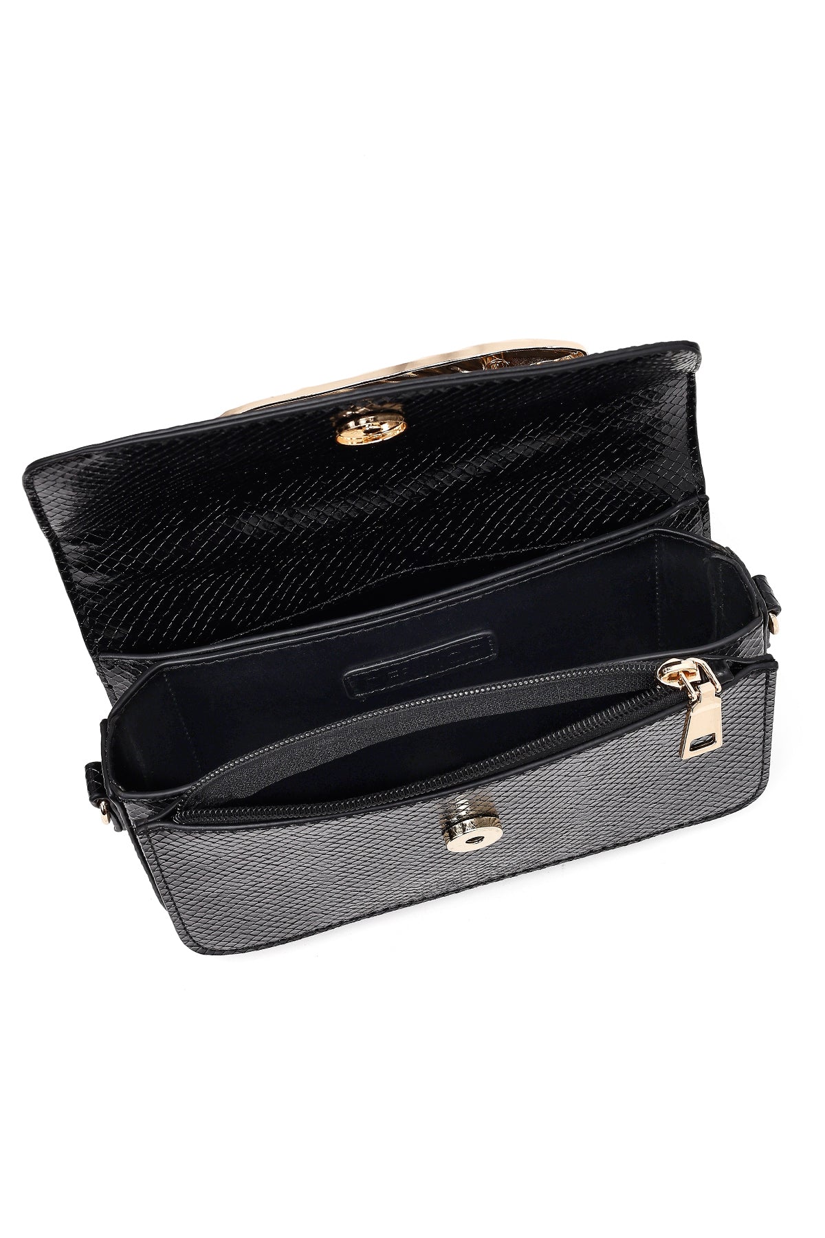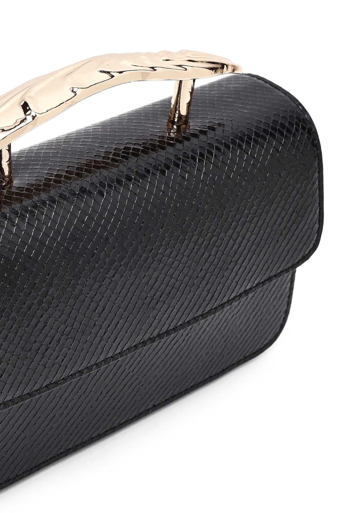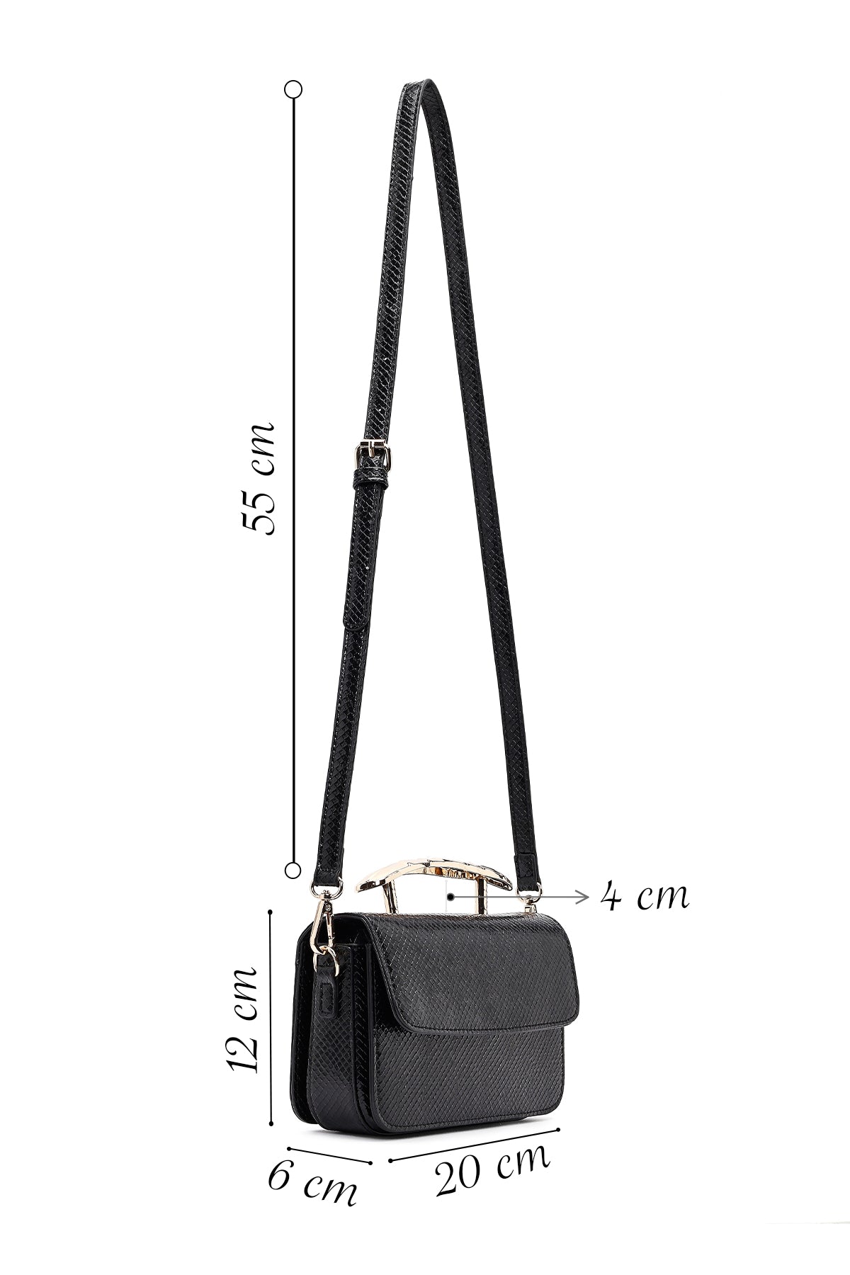 Kadın Siyah Uzun Askılı Desenli Mini Kol Çantası
