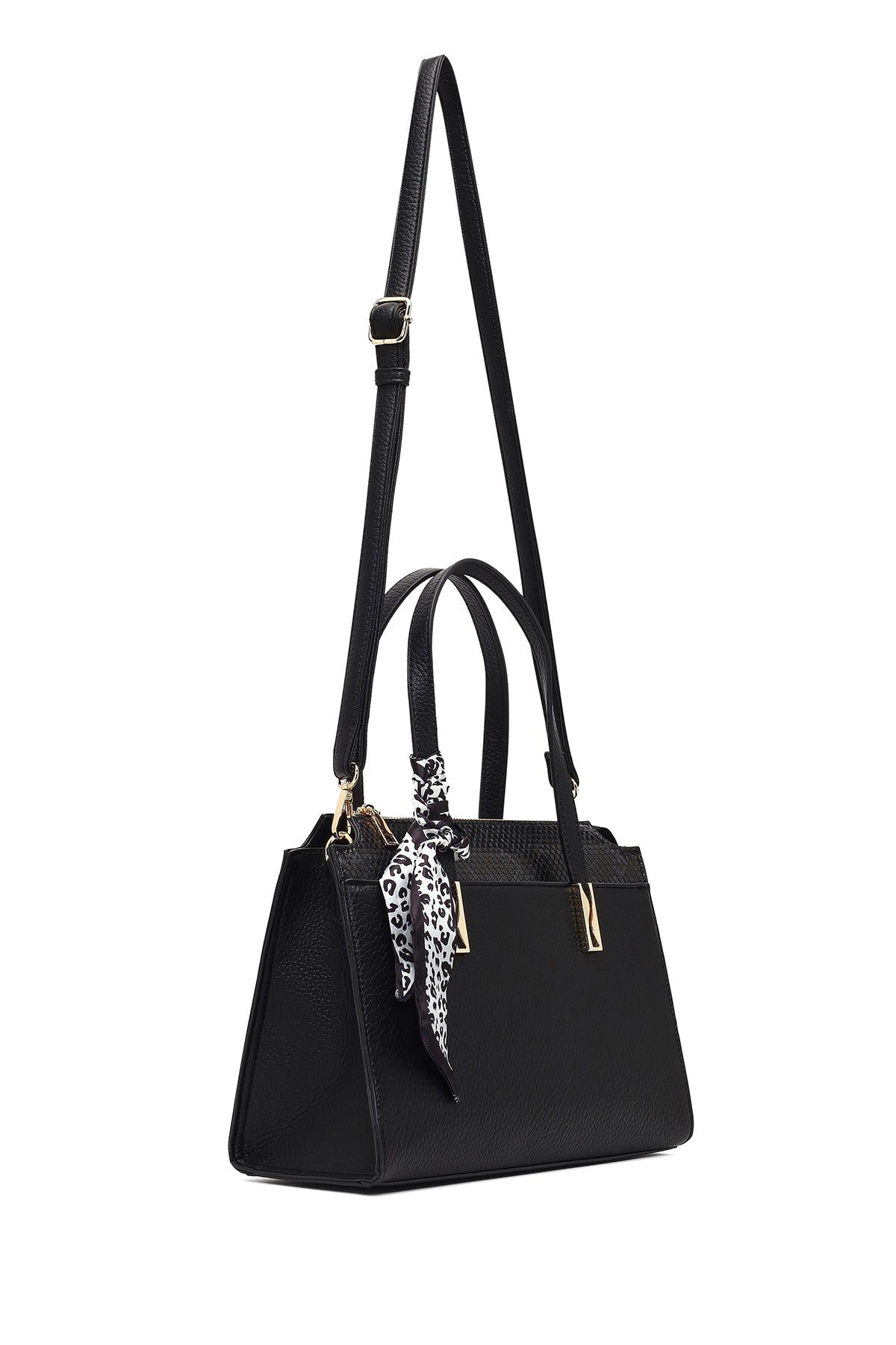 Kadın Siyah Uzun Askılı Desenli Kol Çantası