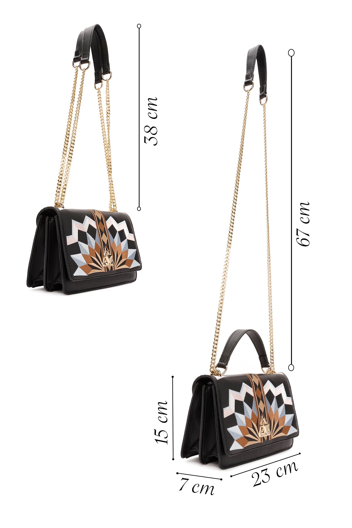 کیف زنانه مشکی بلند طرح‌دار دری مد