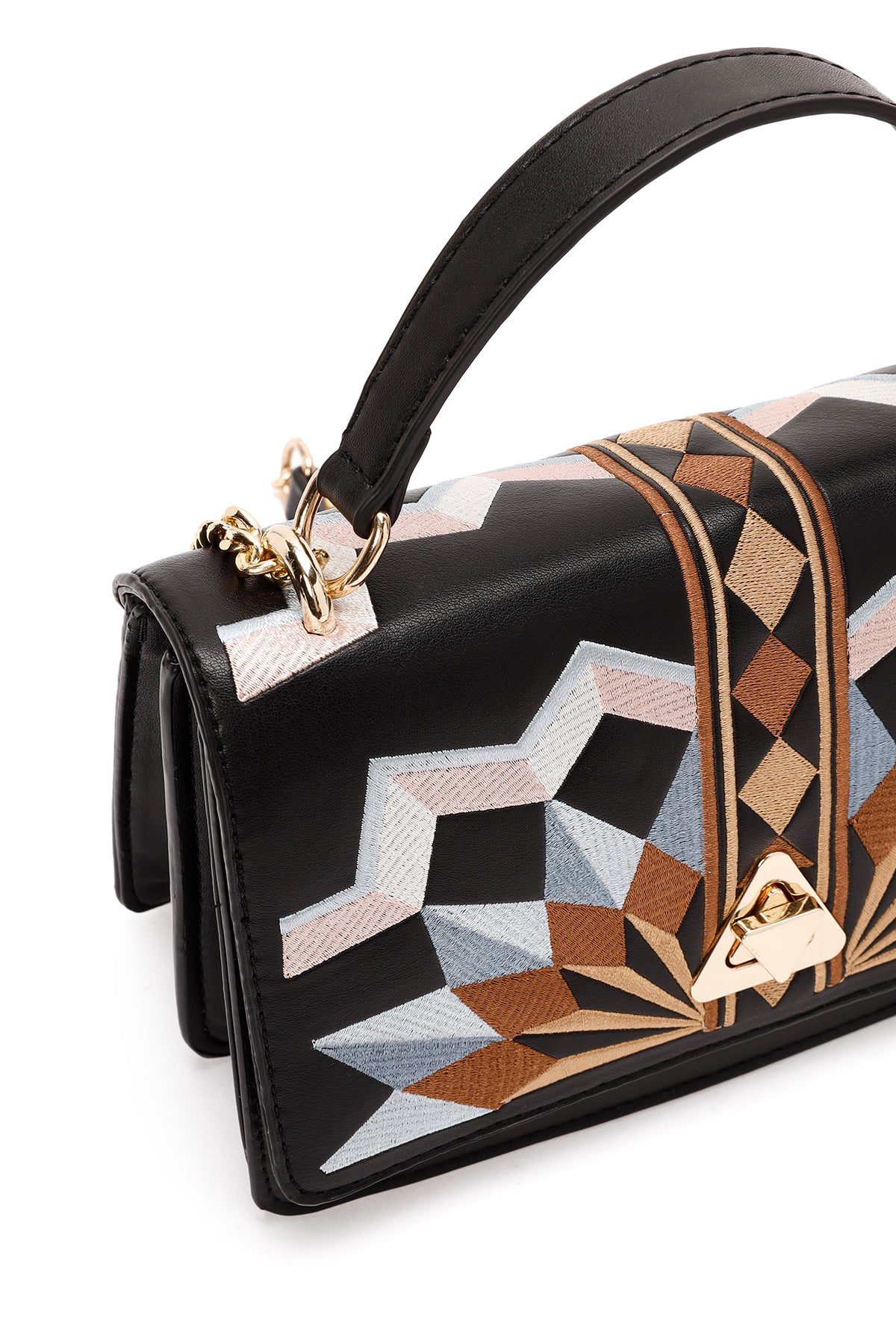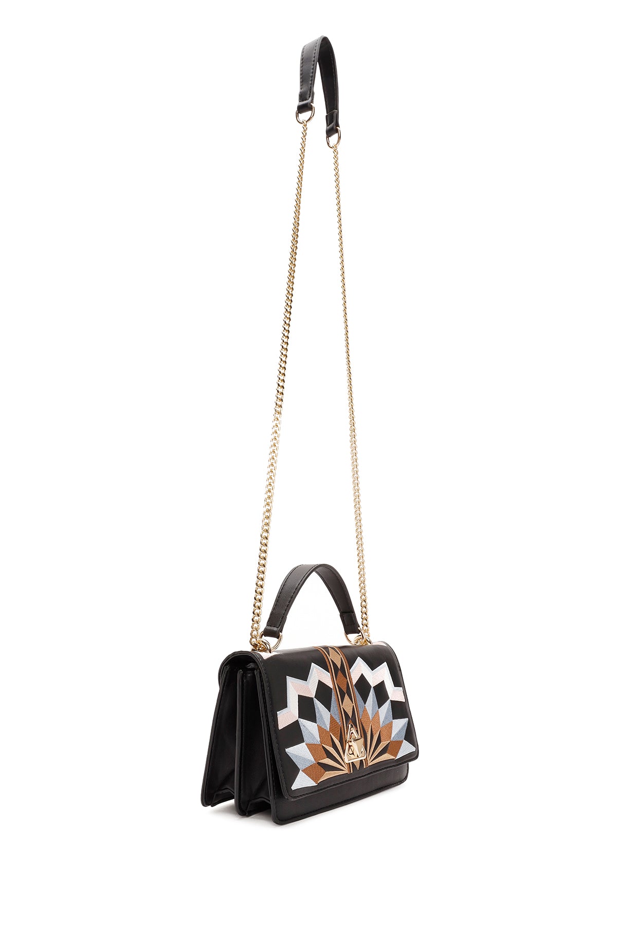 Kadın Siyah Uzun Askılı Baskılı Omuz Çantası