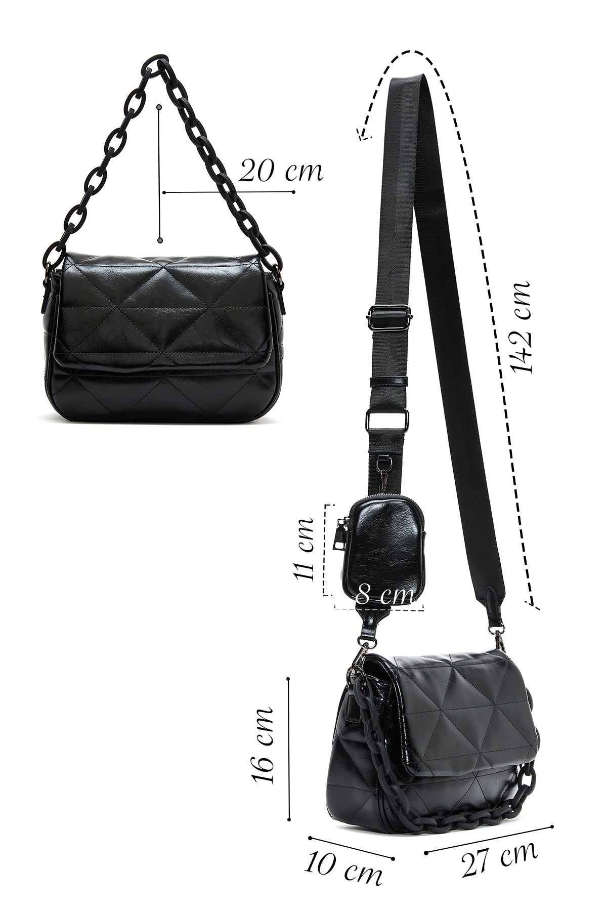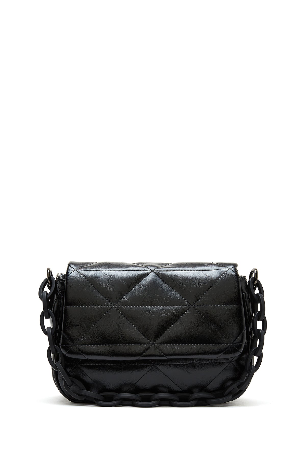 Kadın Siyah Uzun Askılı Kapitone Çapraz Çanta