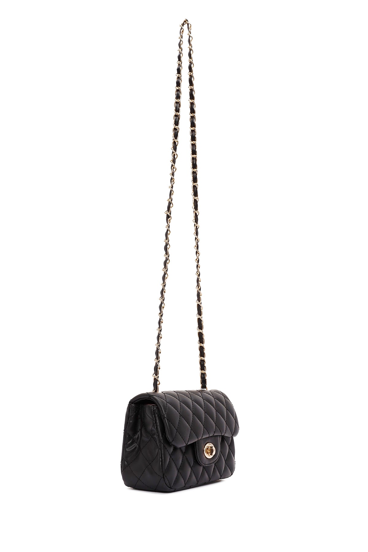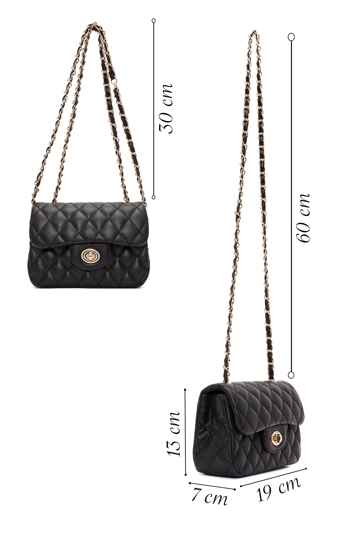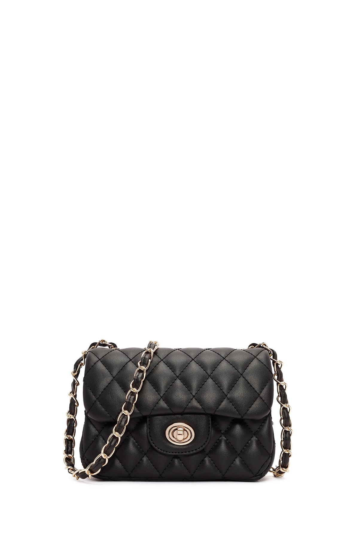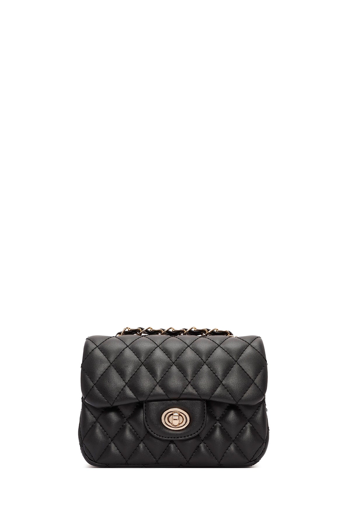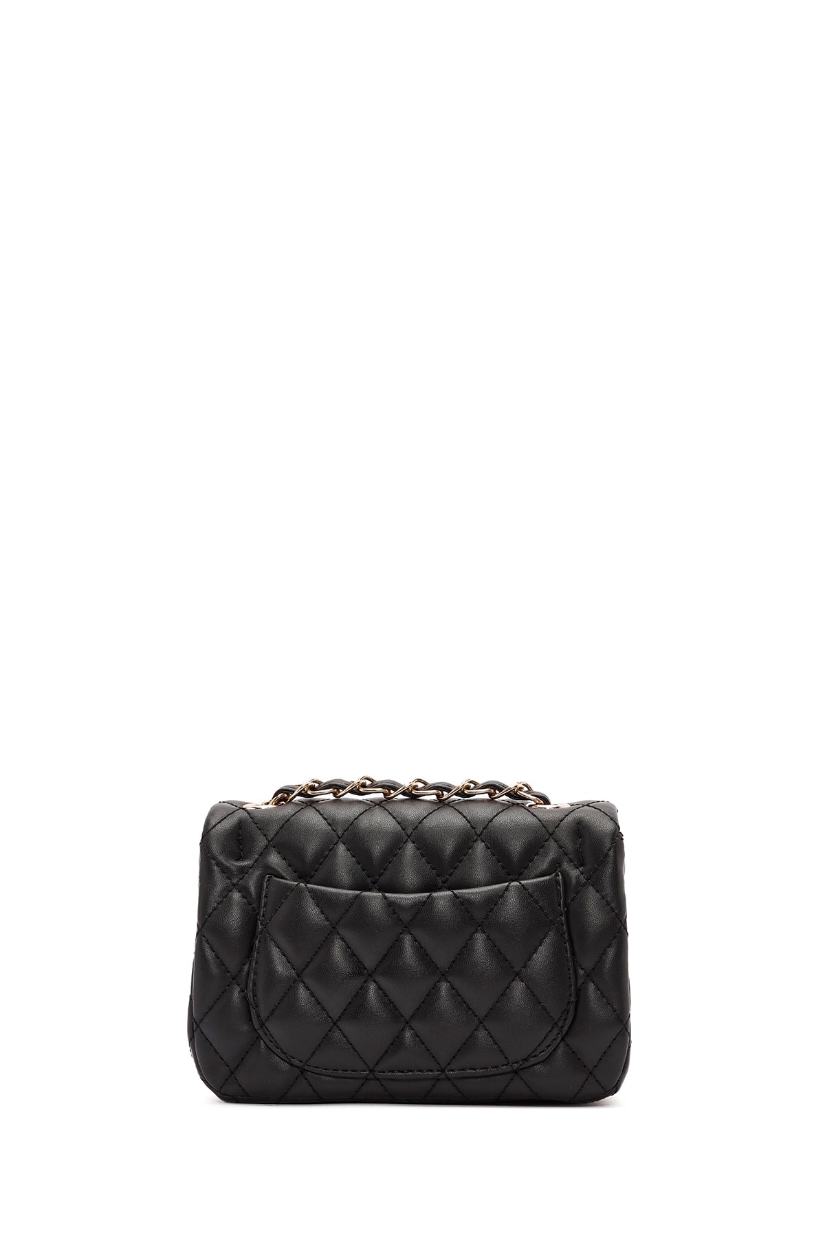 Kadın Siyah Uzun Askılı Kapitone Mini Çapraz Çanta