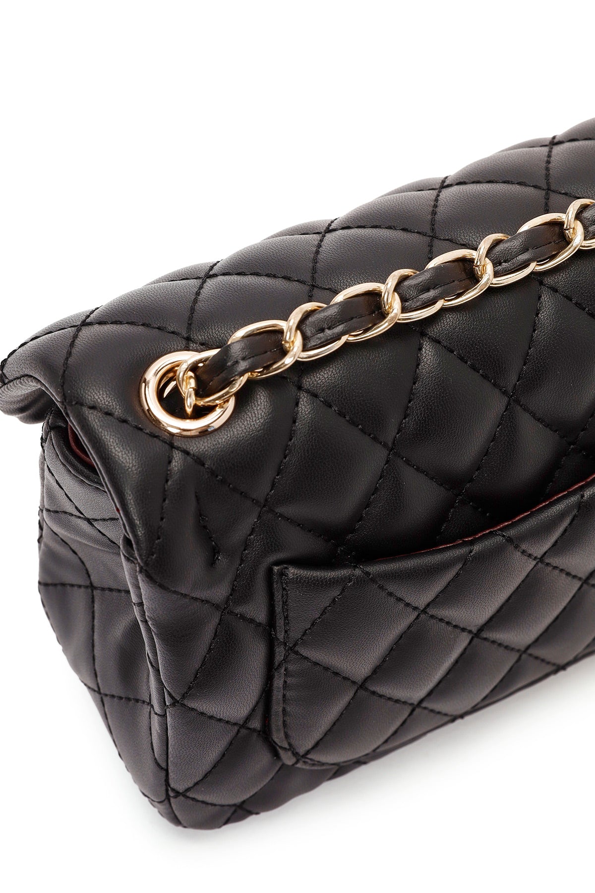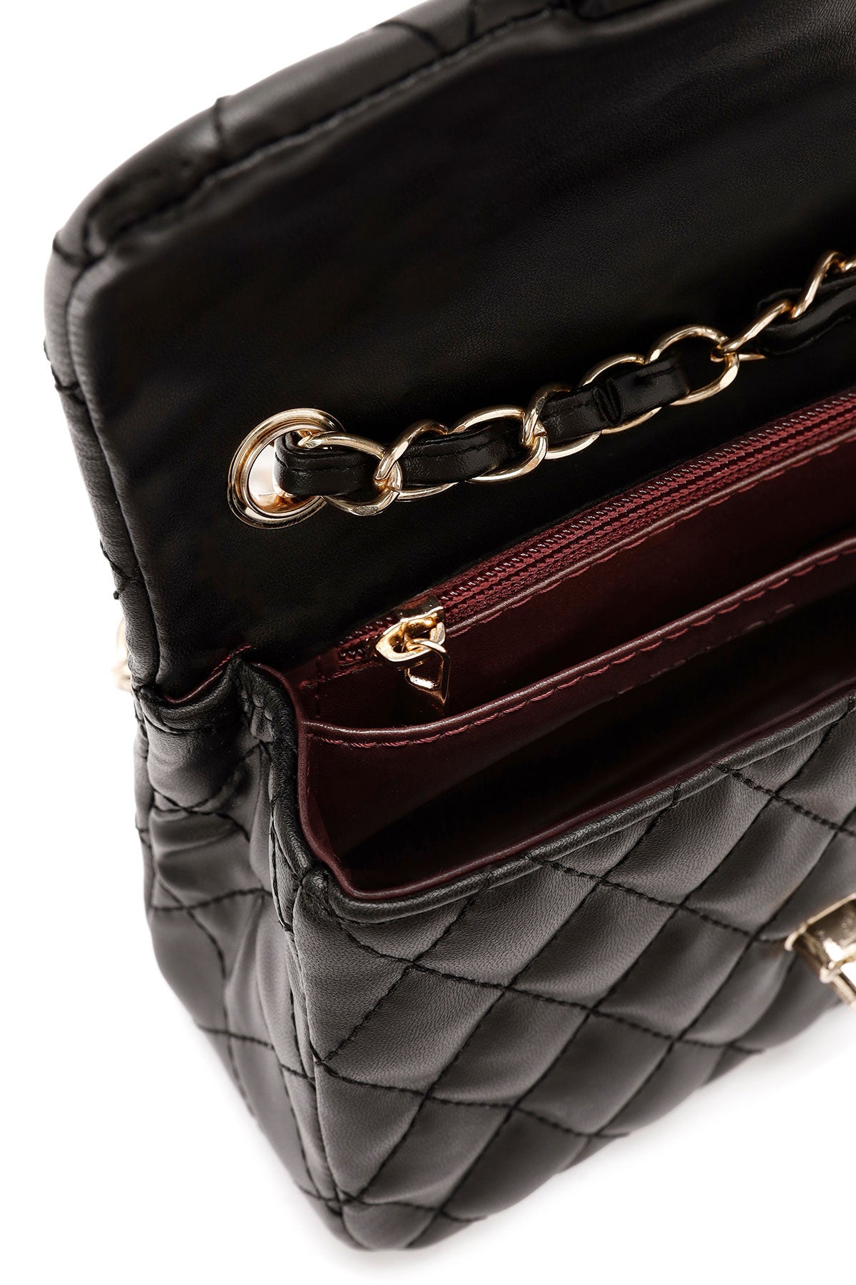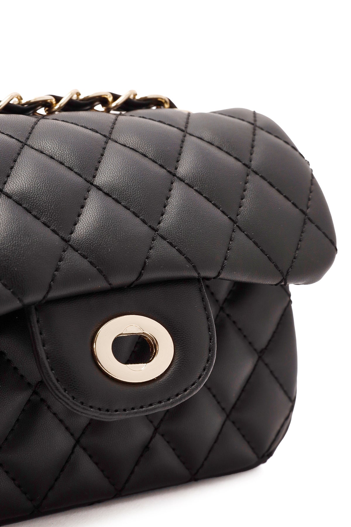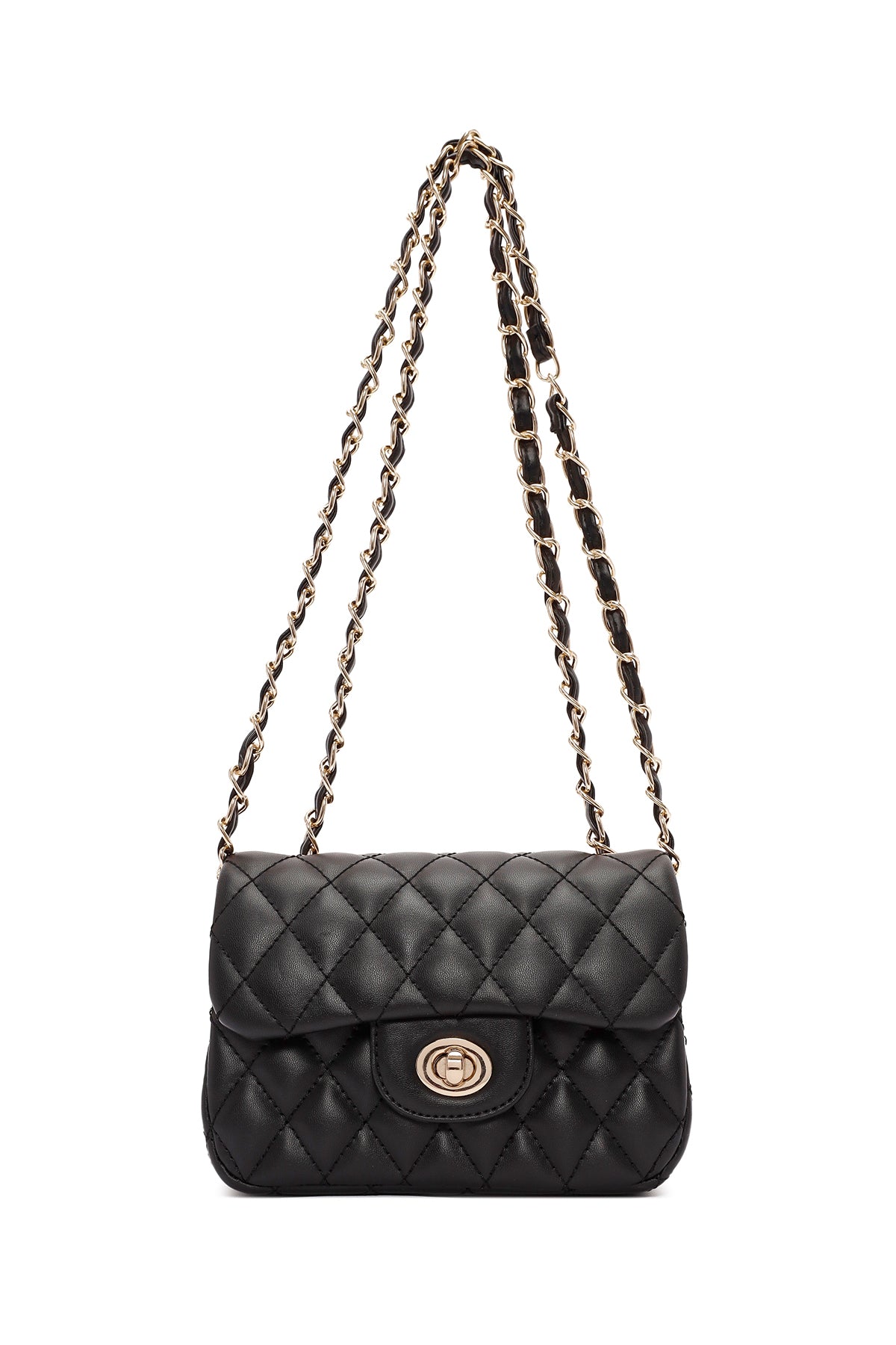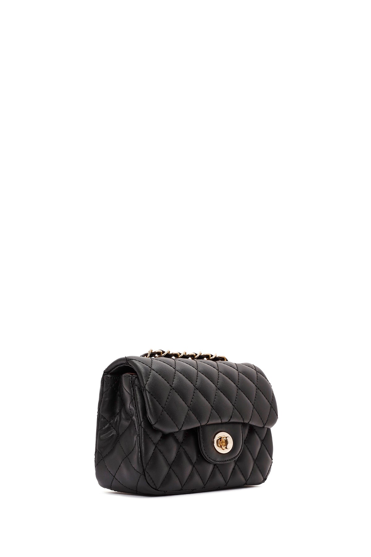 Kadın Siyah Uzun Askılı Kapitone Mini Çapraz Çanta