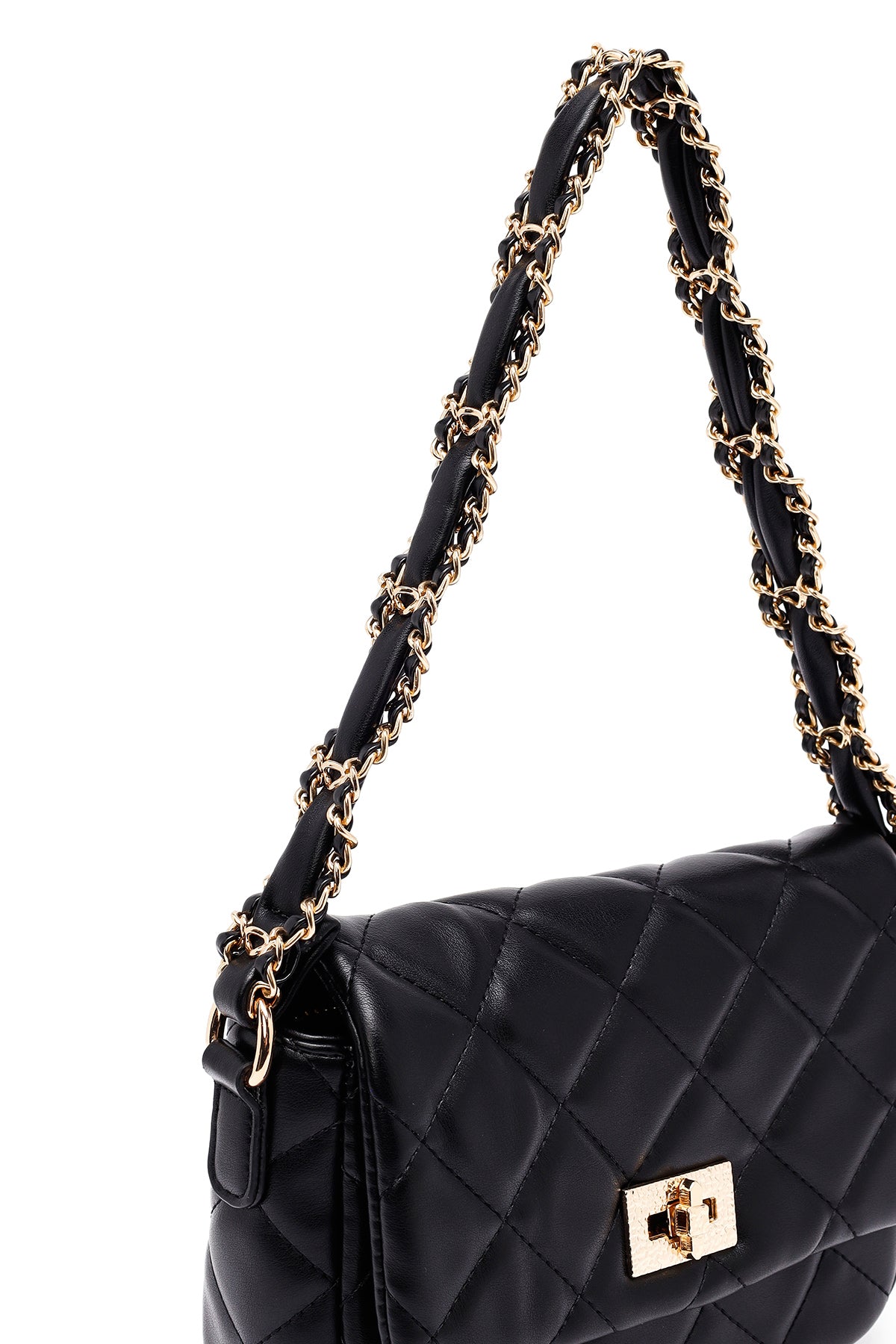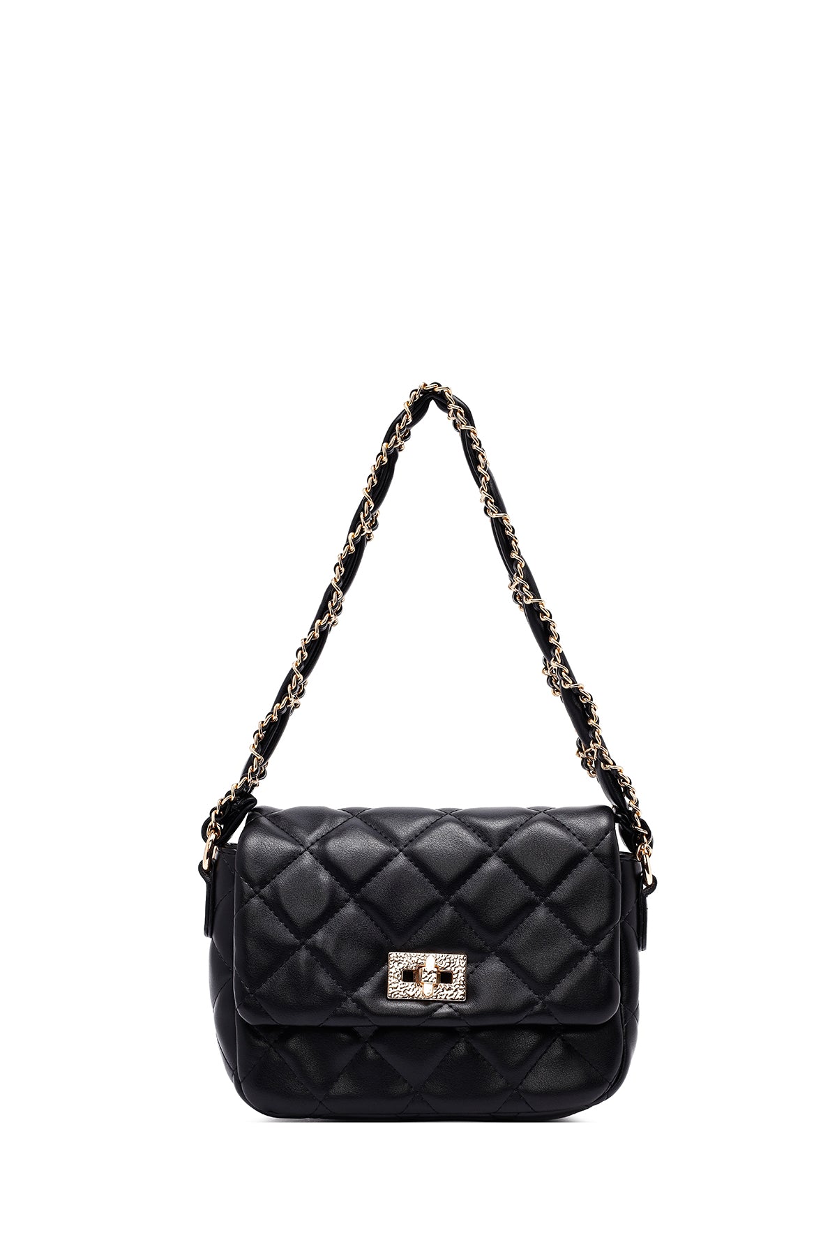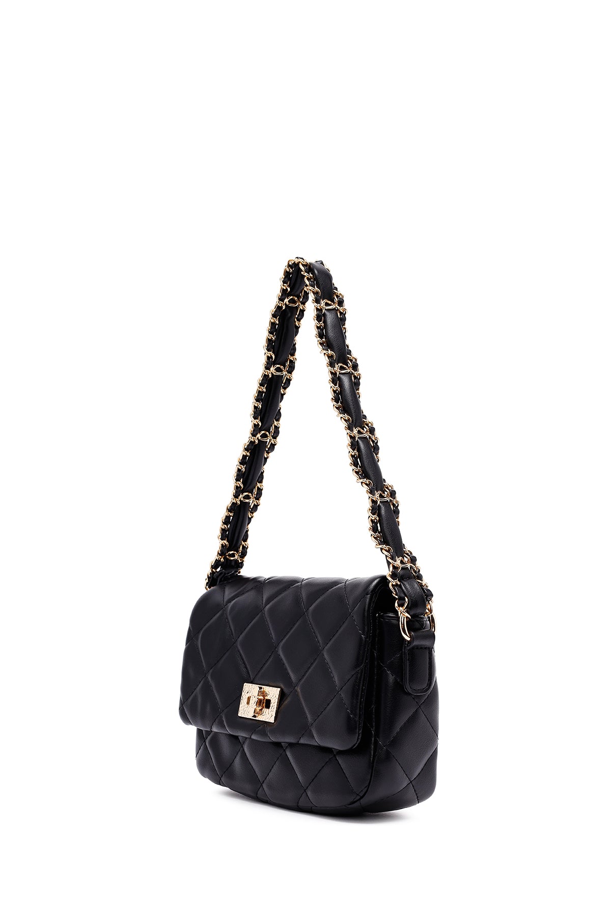 Kadın Siyah Uzun Askılı Kapitone Omuz Çantası