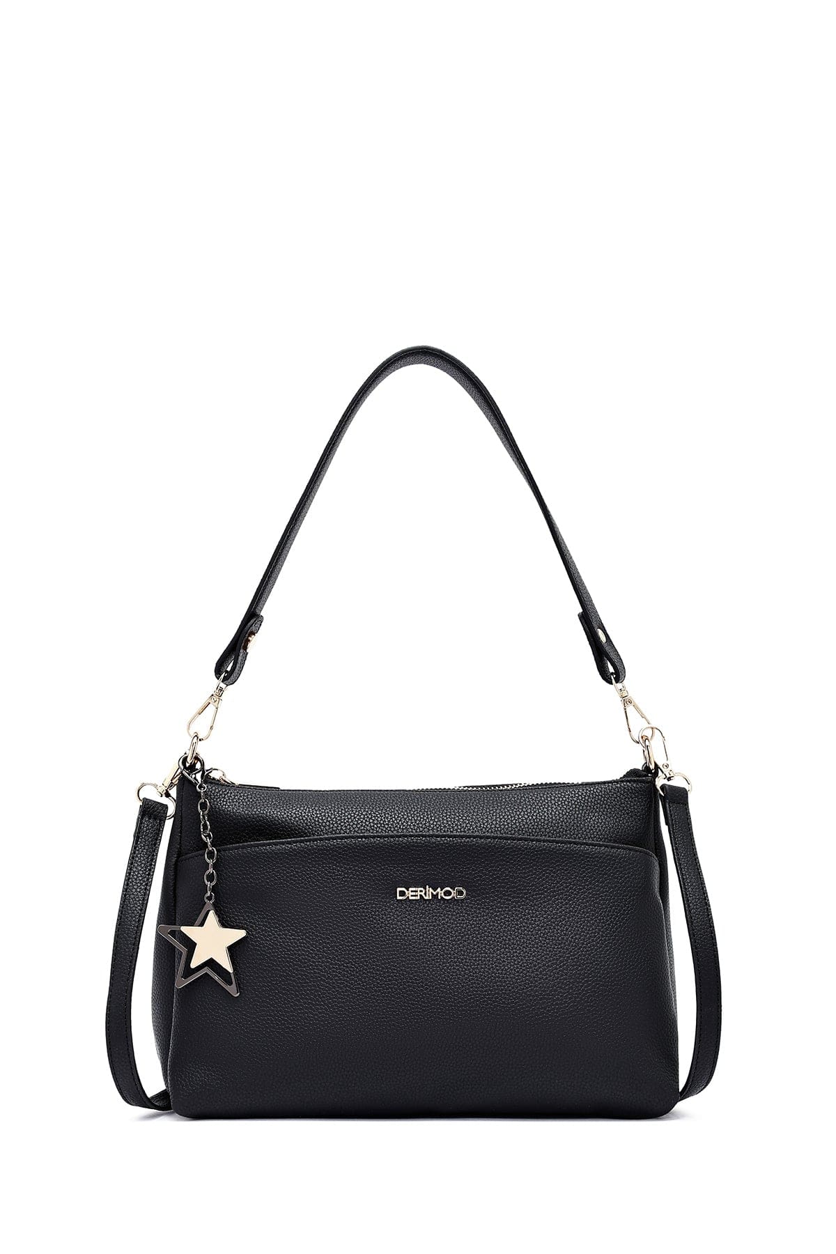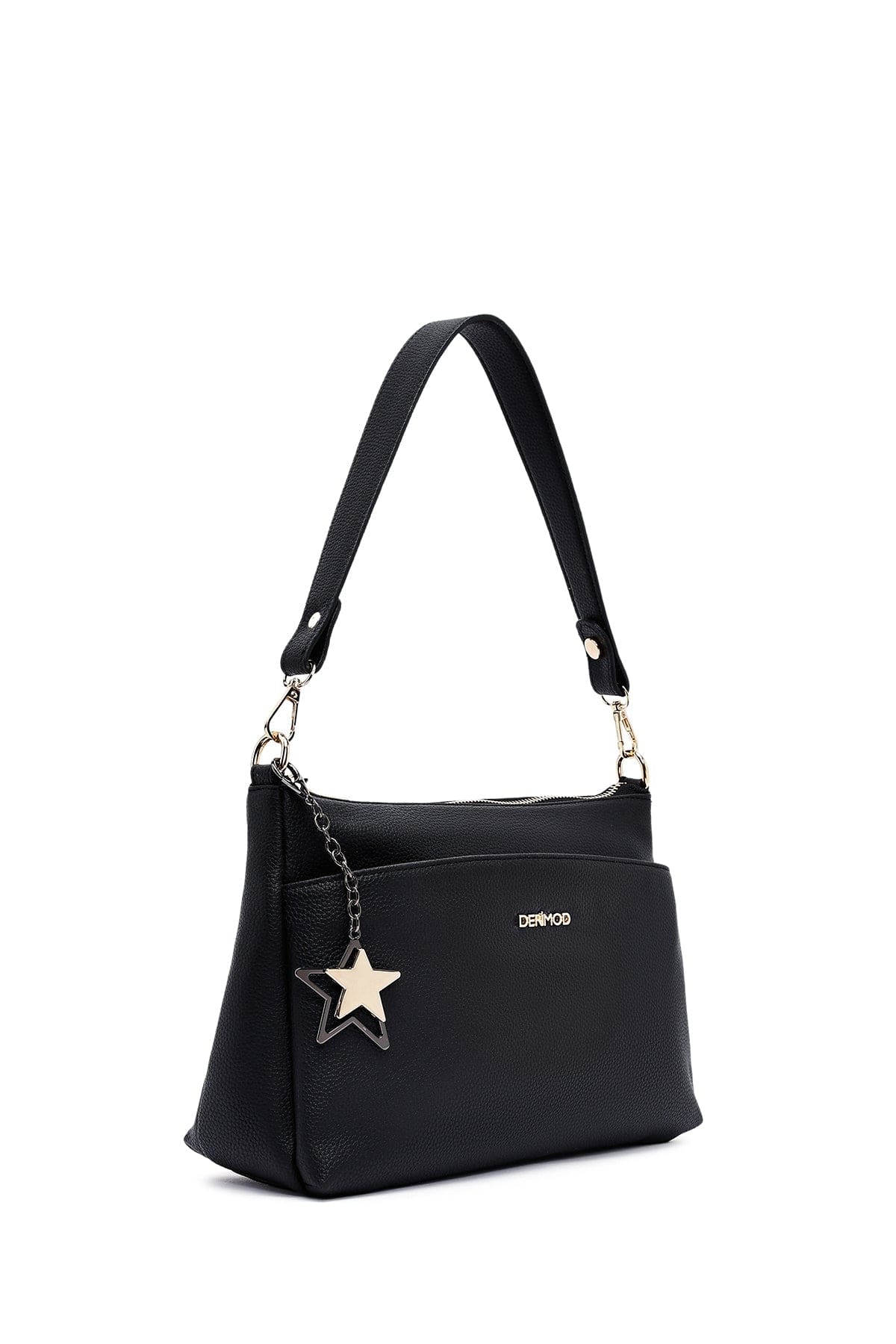 Kadın Siyah Uzun Askılı Aksesuarlı Kol Çantası