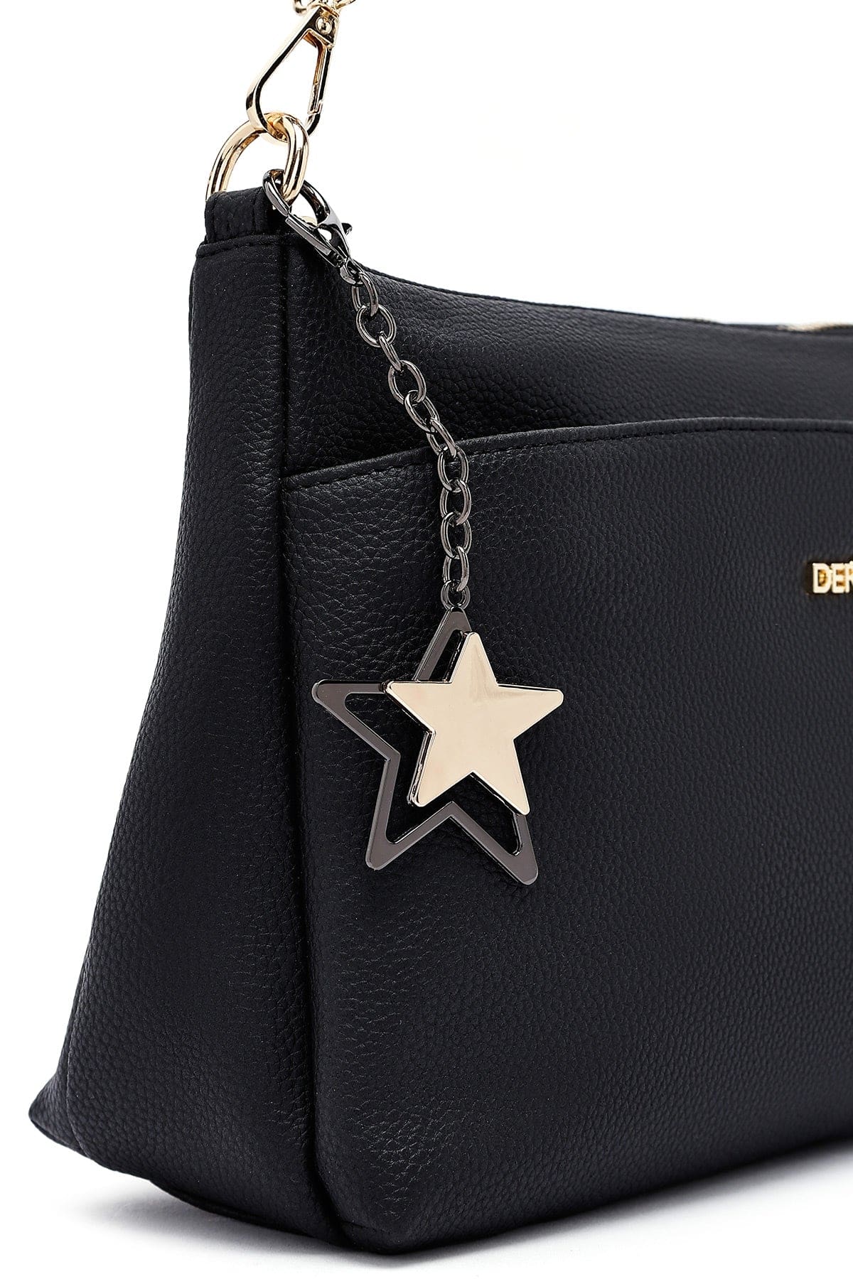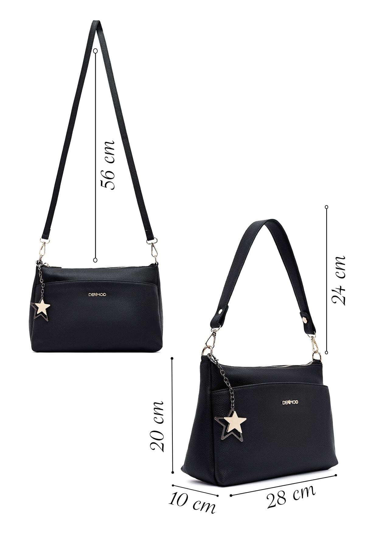 کیف زنانه دستی مشکی بند بلند با اکسسوری دری مد