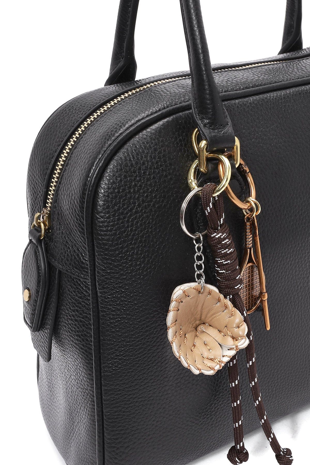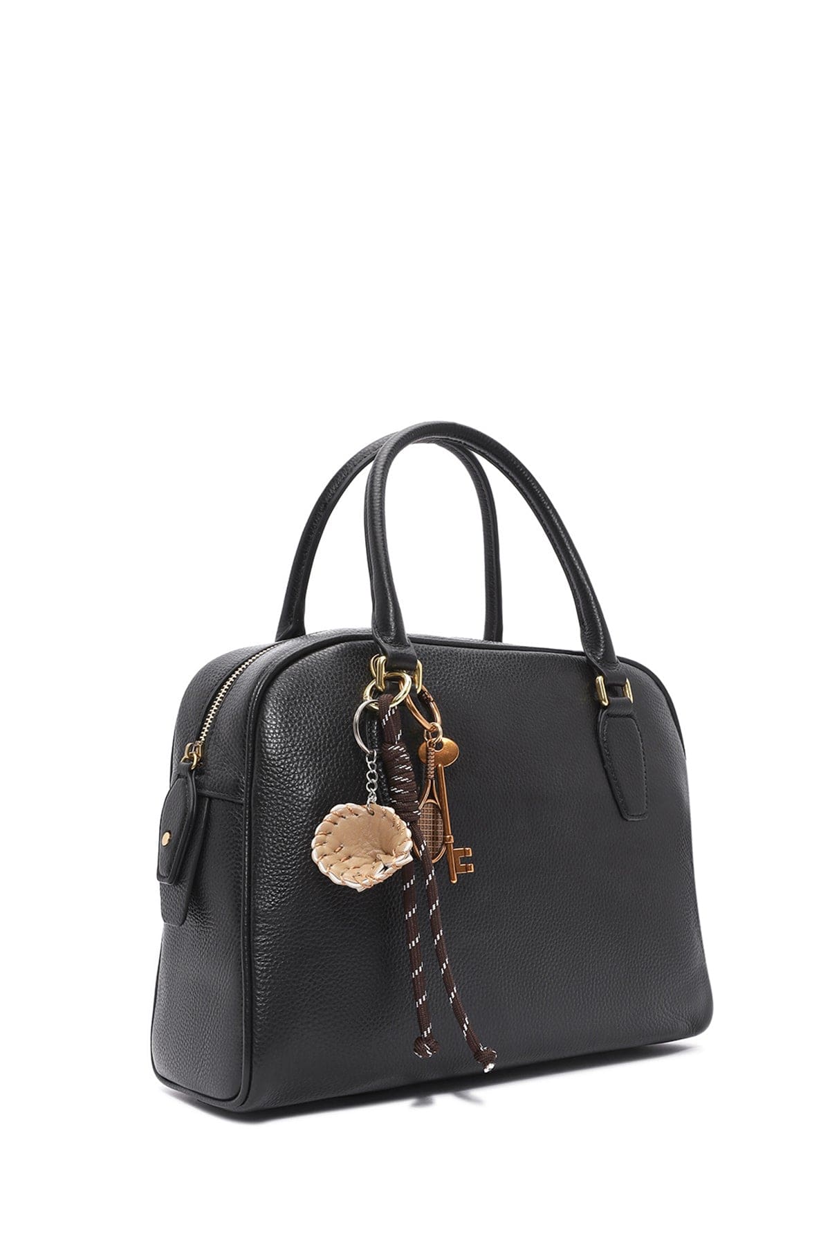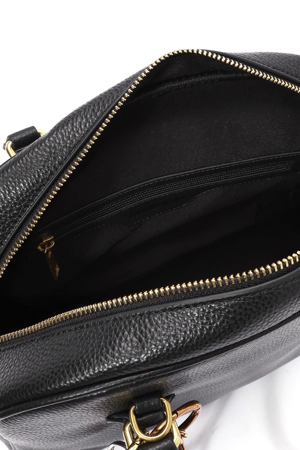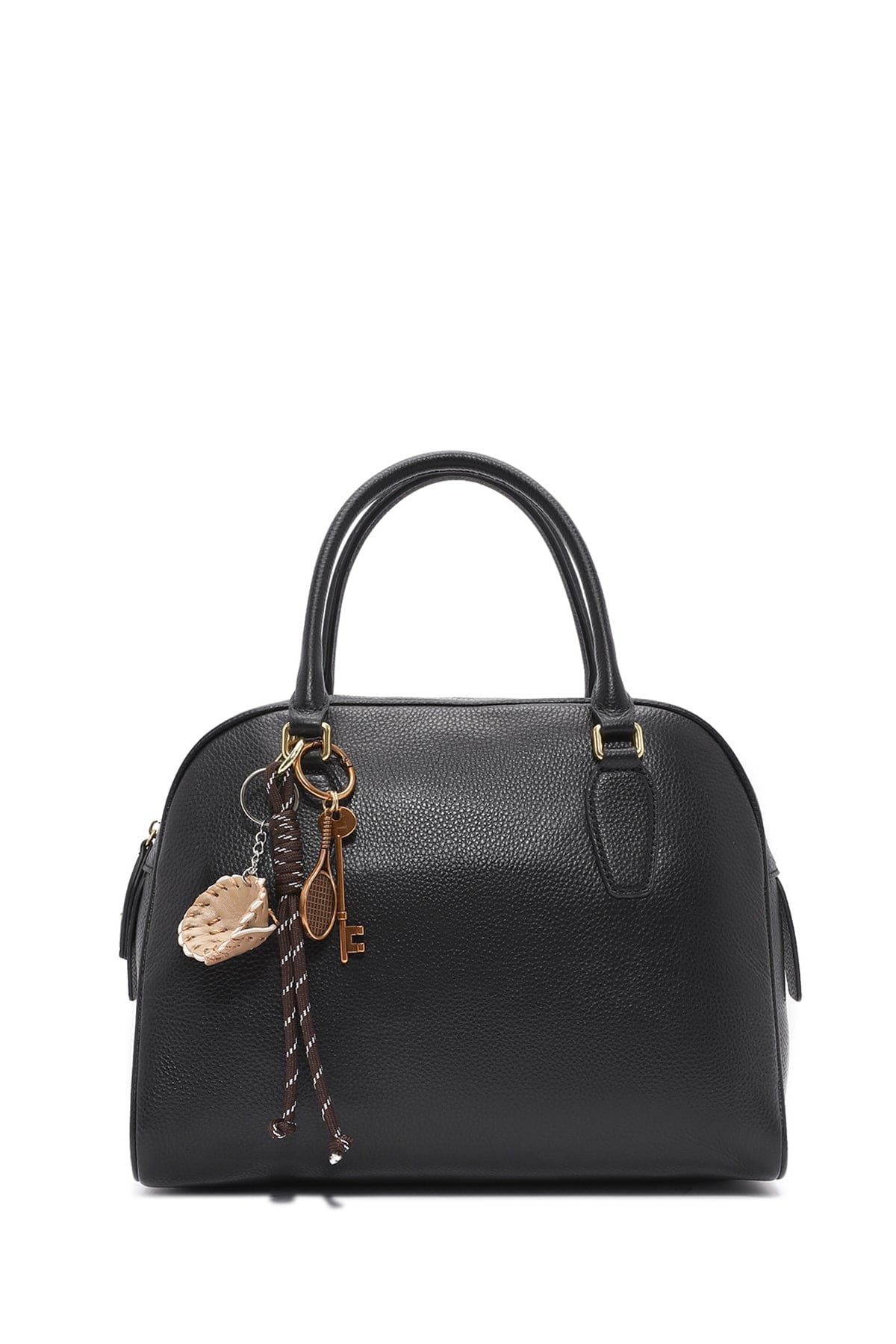 کیف زنانه دستی چرم مشکی بند بلند با اکسسوری دری مد