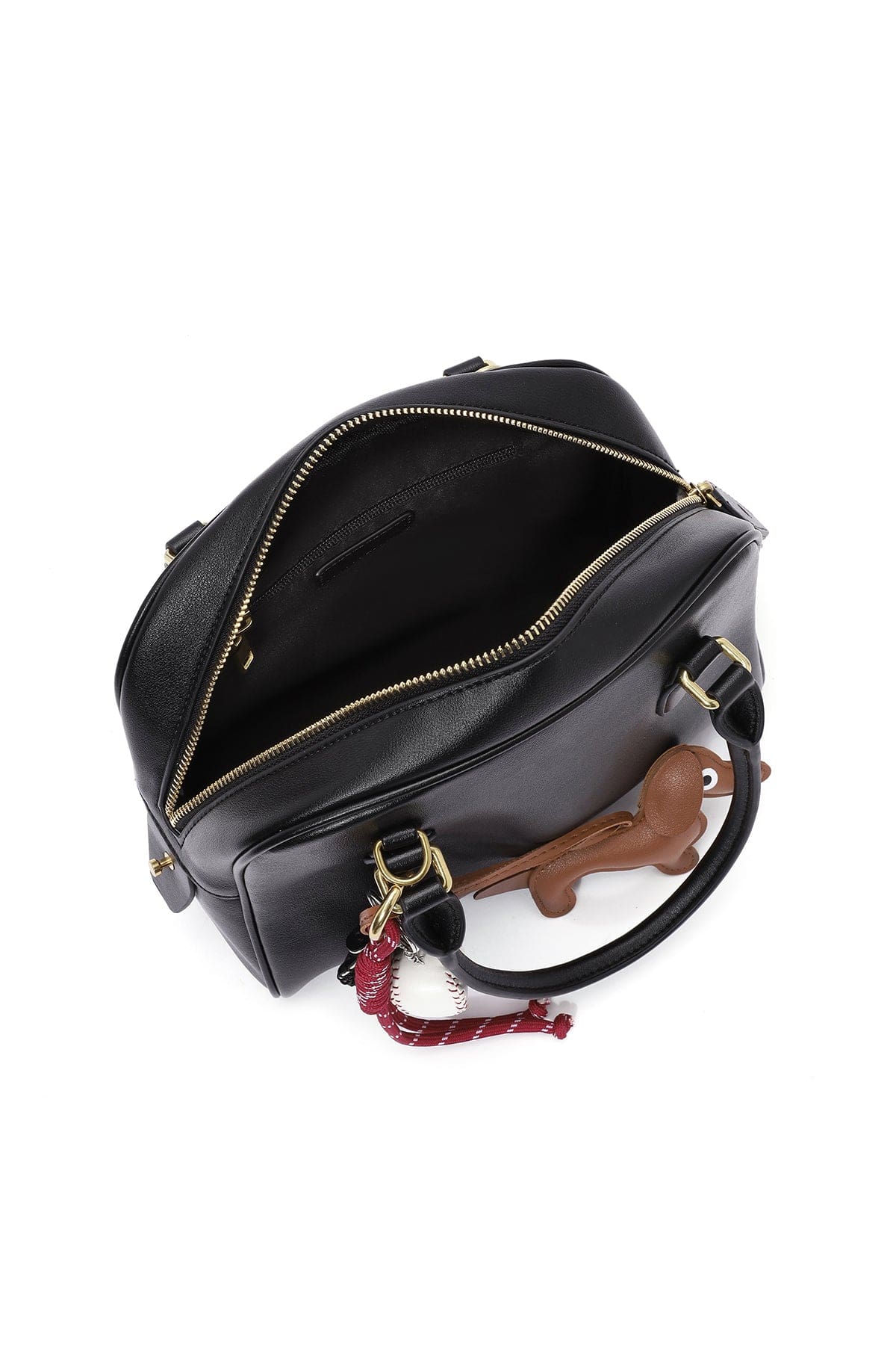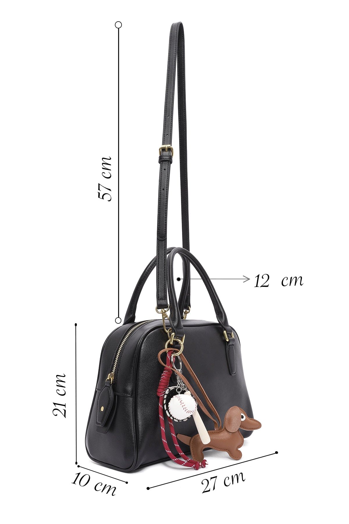 کیف زنانه دستی چرم مشکی بند بلند با اکسسوری دری مد