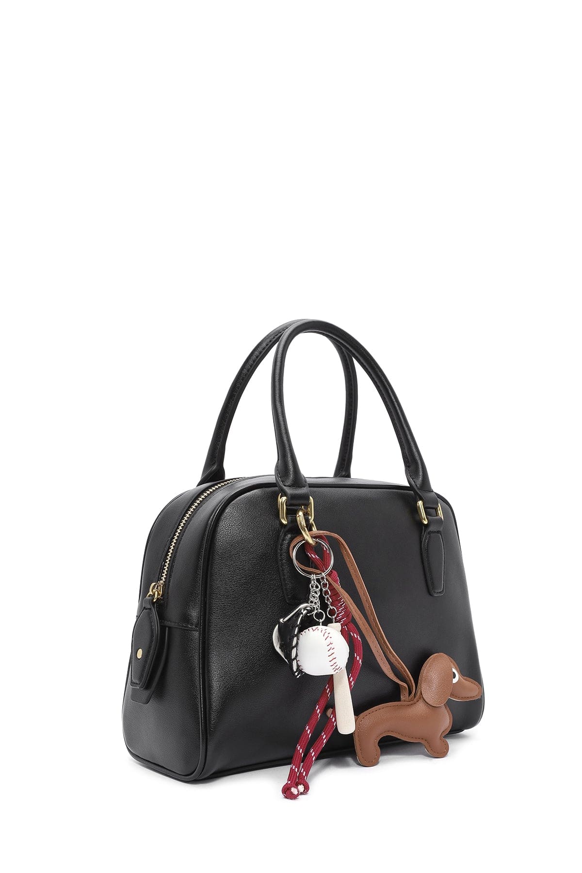 Kadın Siyah Uzun Askılı Aksesuarlı Deri Kol Çantası