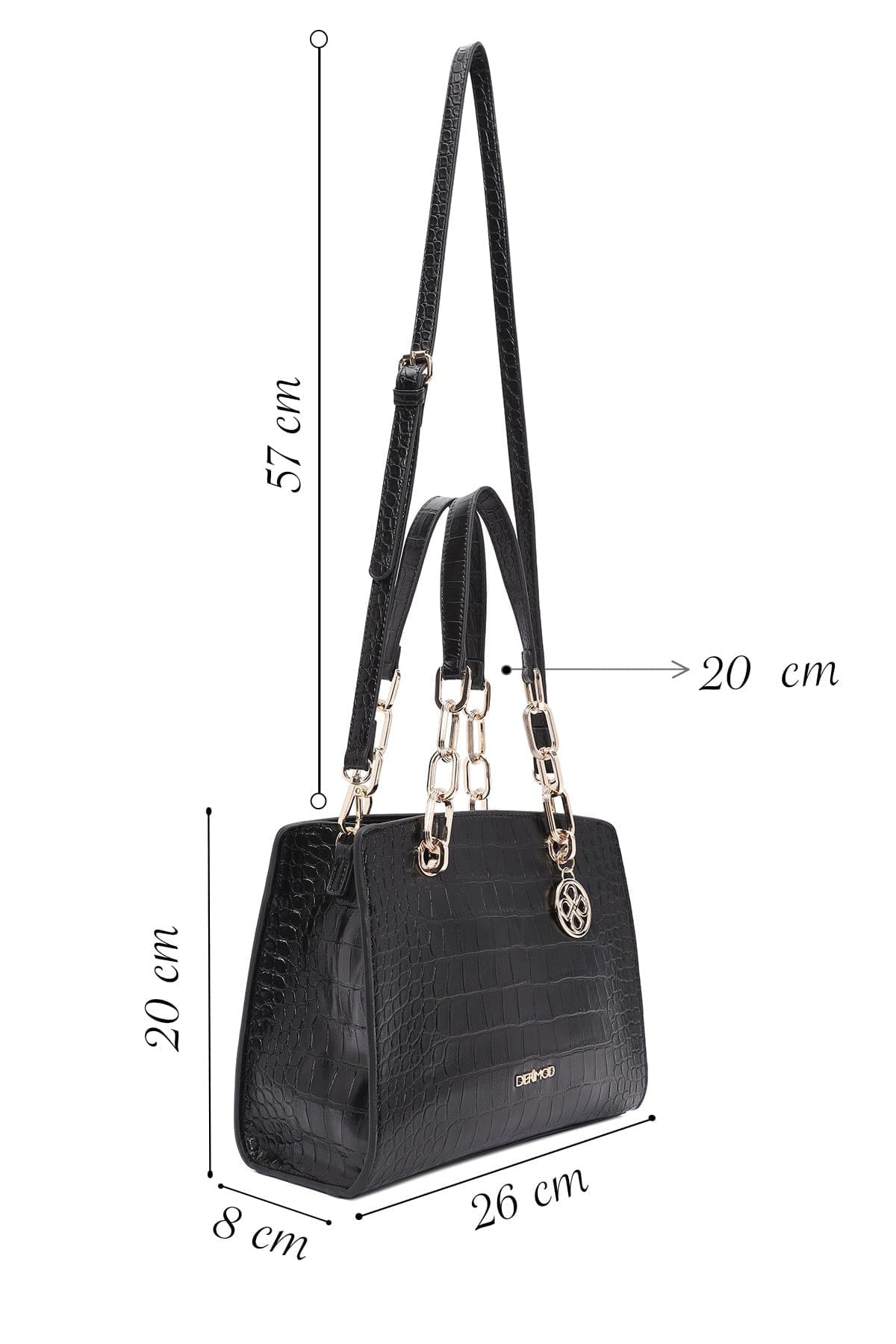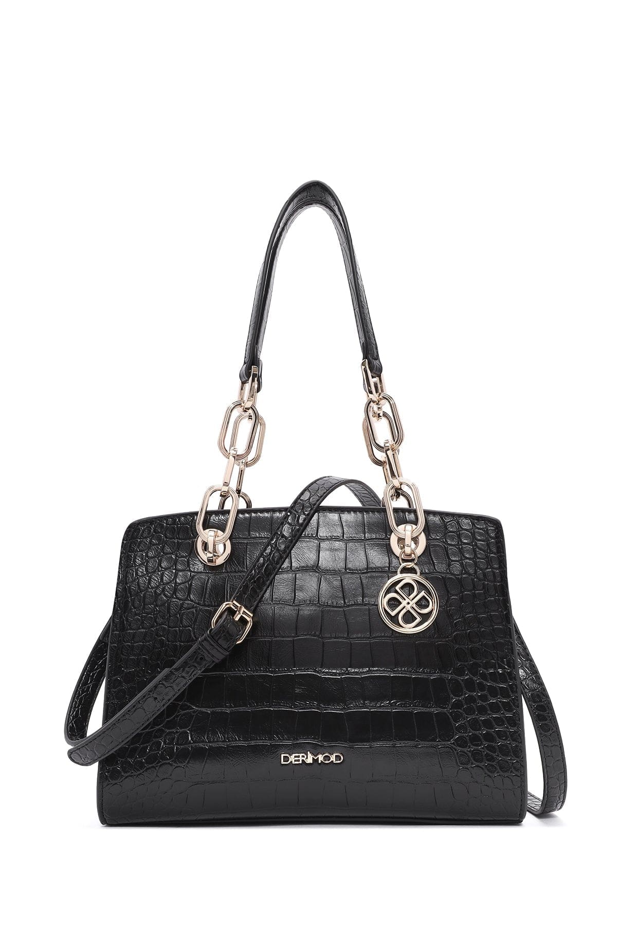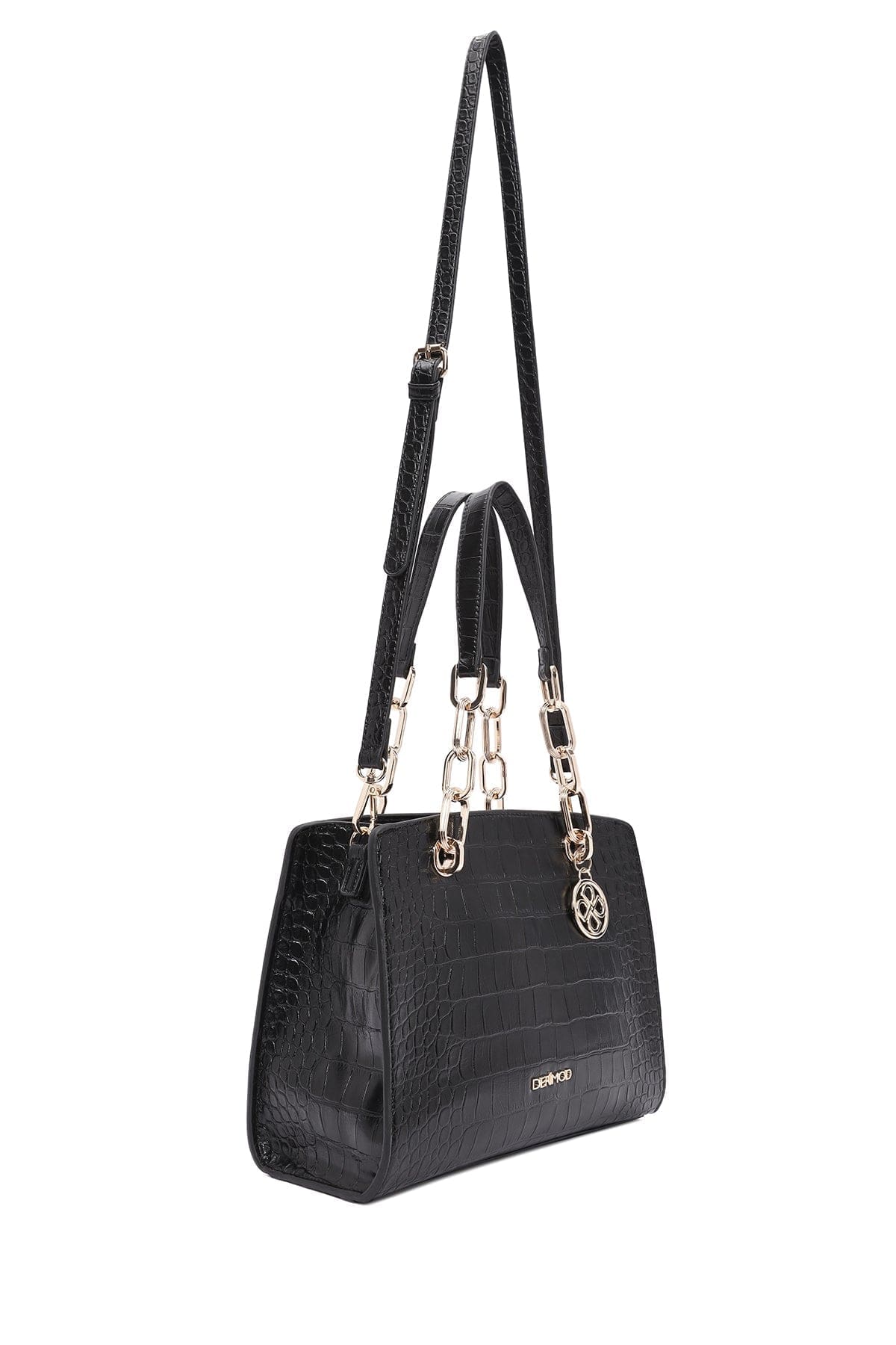 کیف زنانه مشکی دوشی بلند کلاسیک کروکدیل دری مد