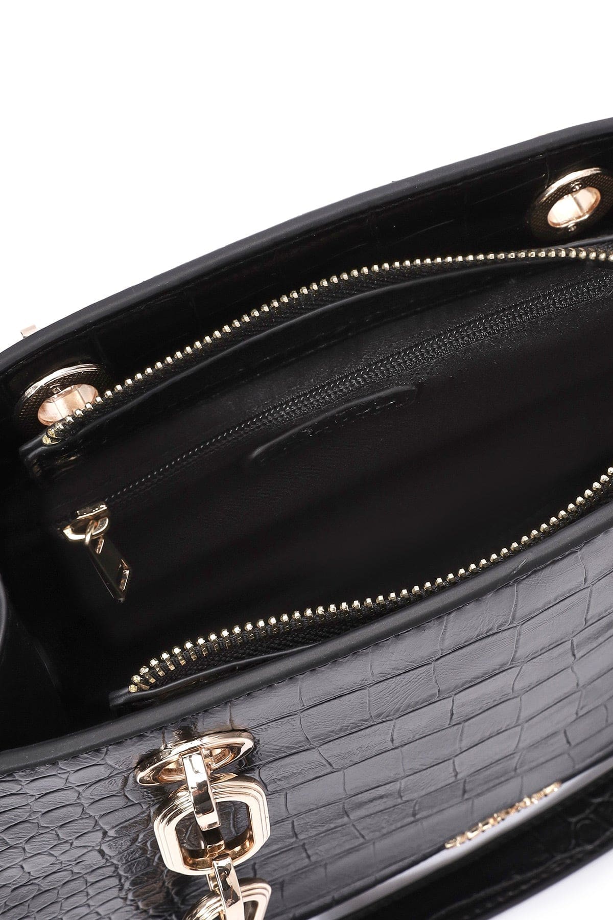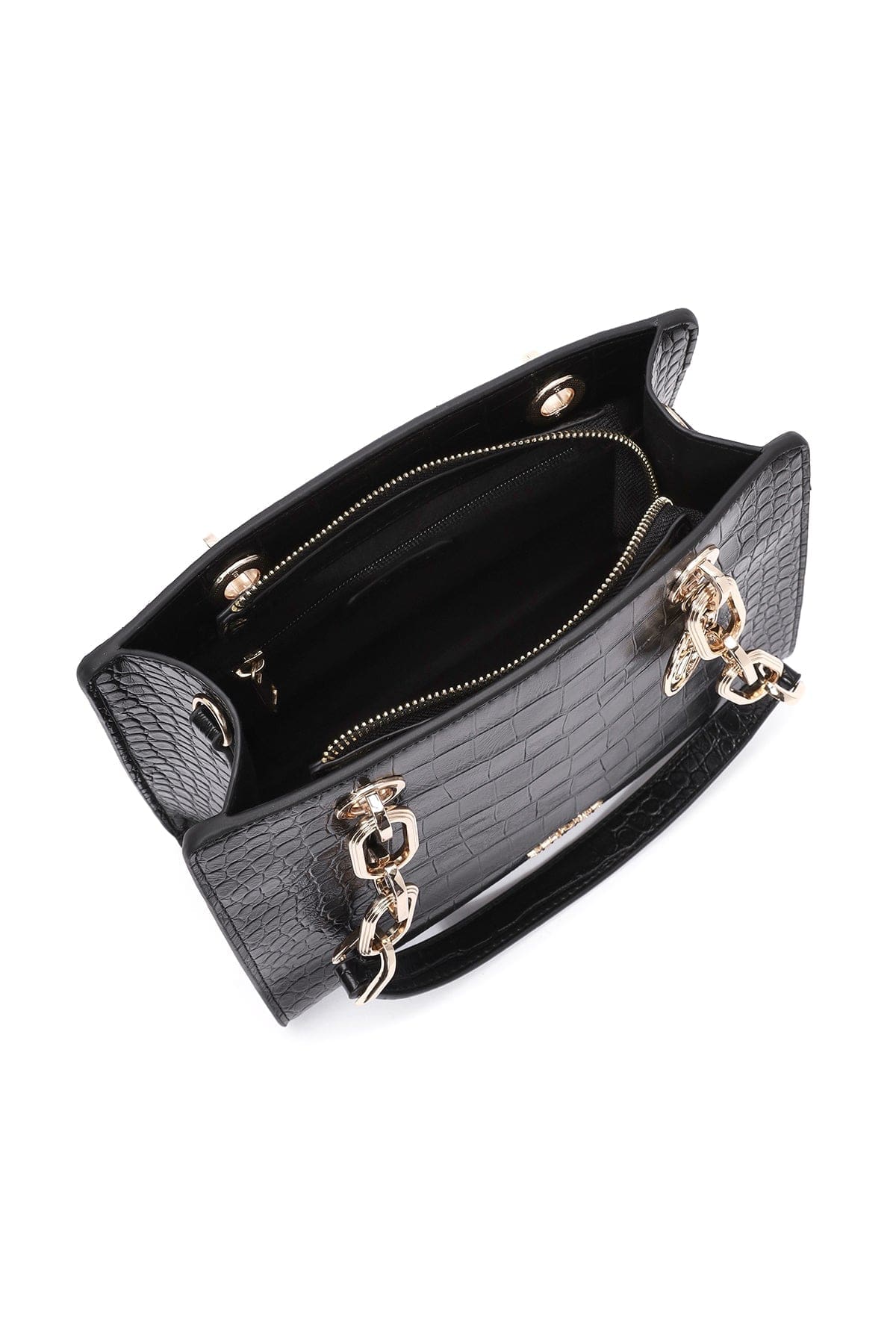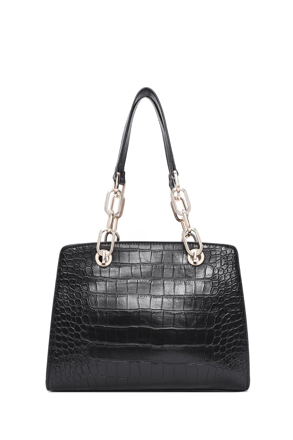 Kadın Siyah Uzun Askılı Kroko Desenli Klasik Omuz Çantası