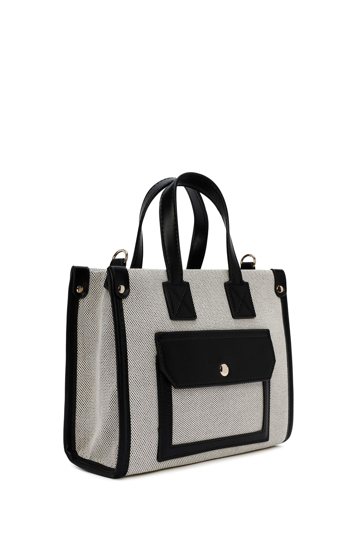 کیف زنانه دستی مشکی پارچهای بند بلند دری مد