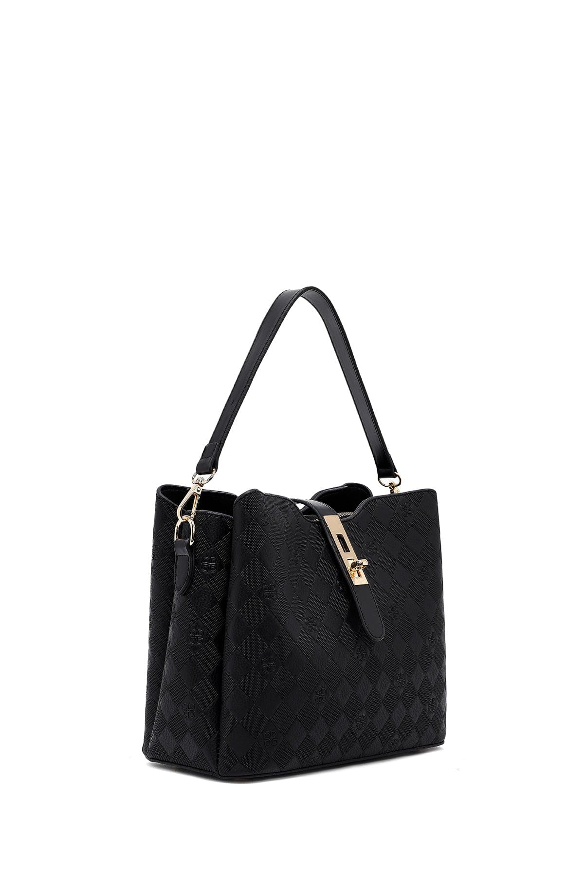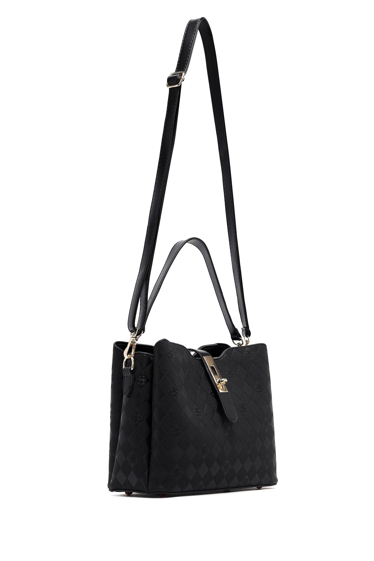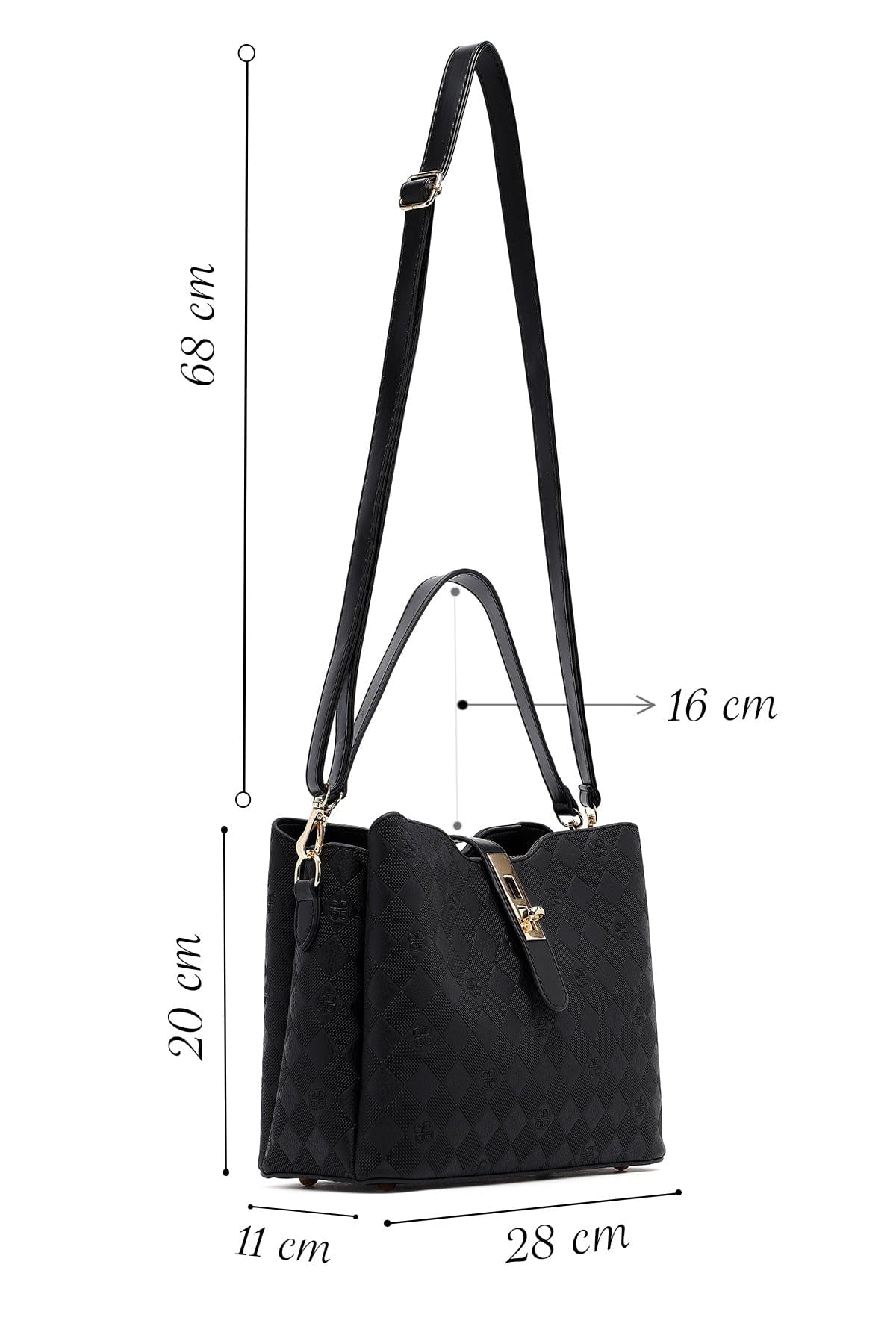 کیف زنانه دستی کلاسیک مشکی بند بلند چاپدار دری مد
