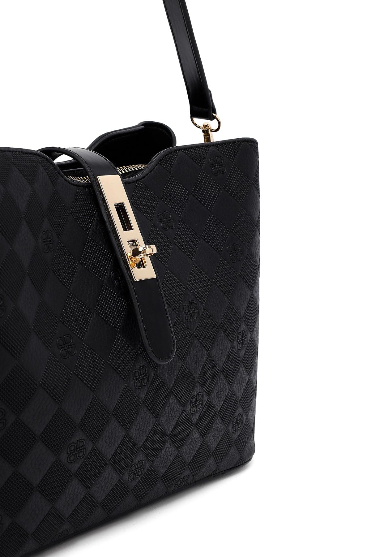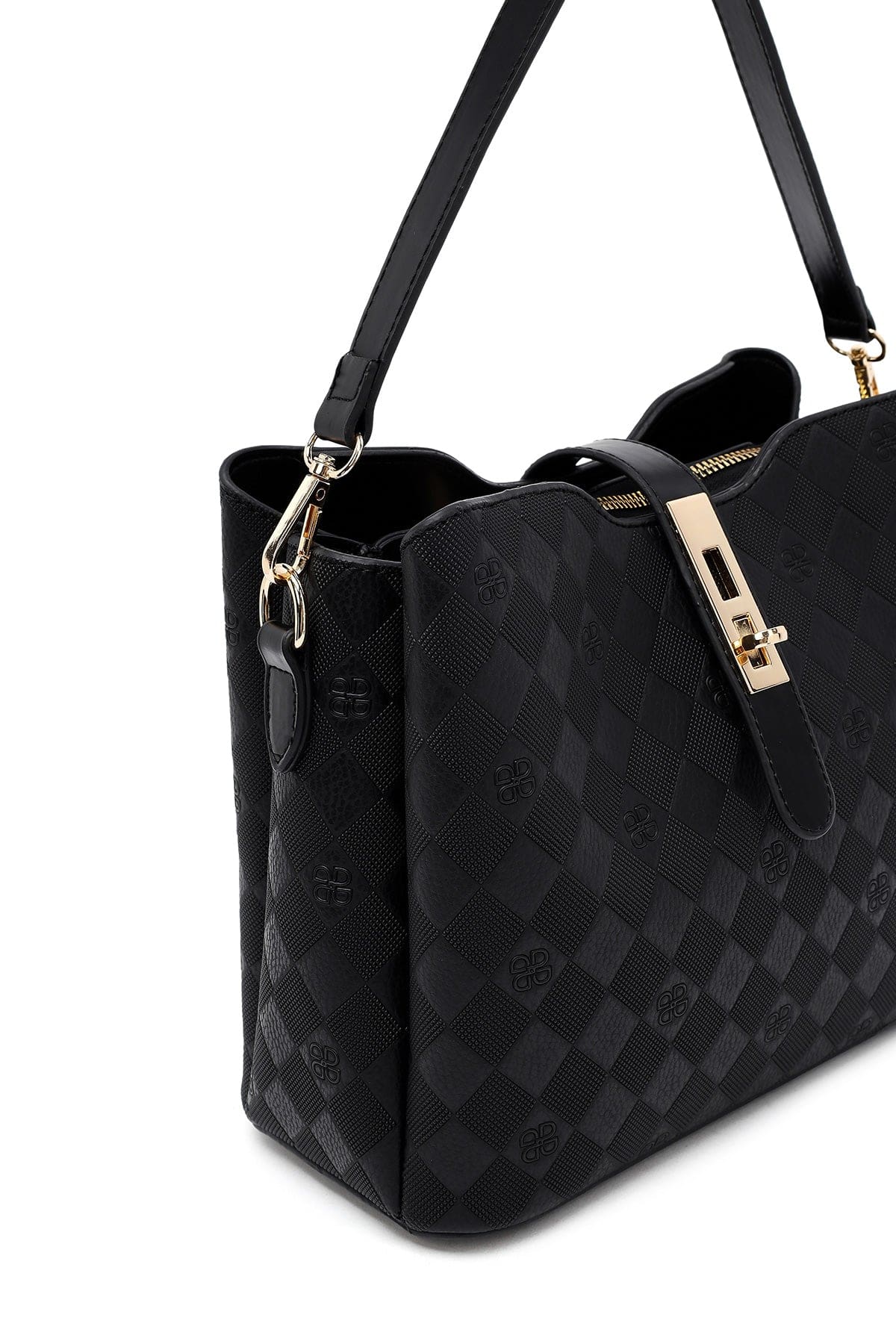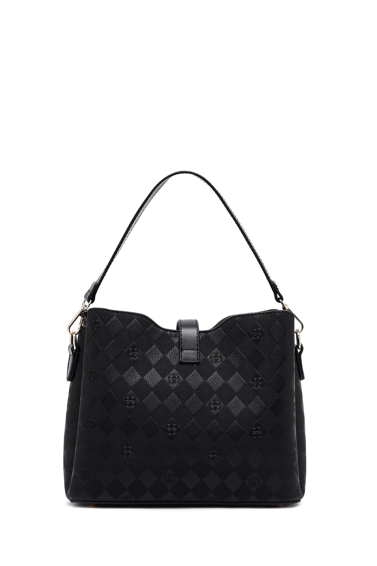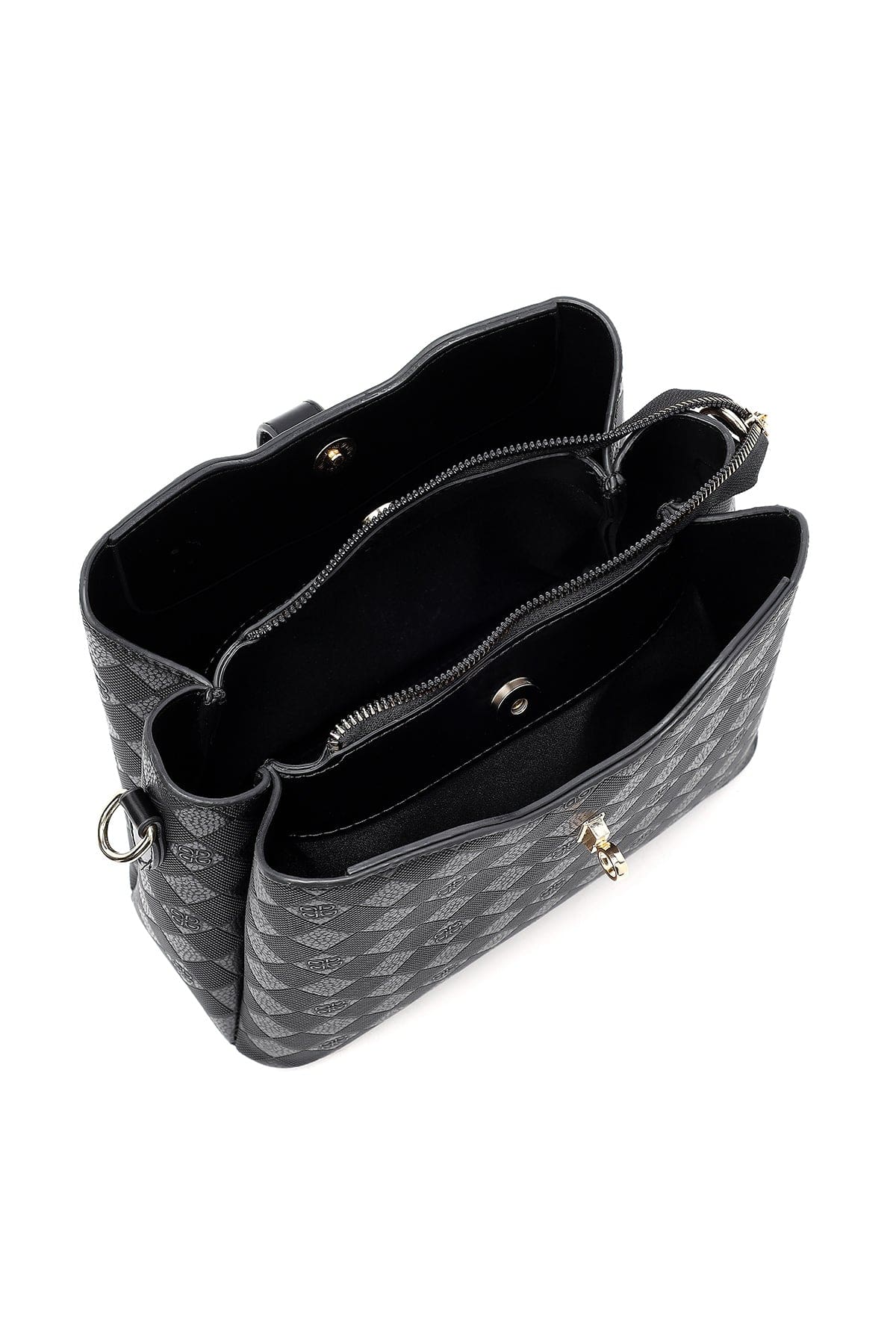 کیف زنانه دستی کلاسیک مشکی بند بلند چاپدار دری مد