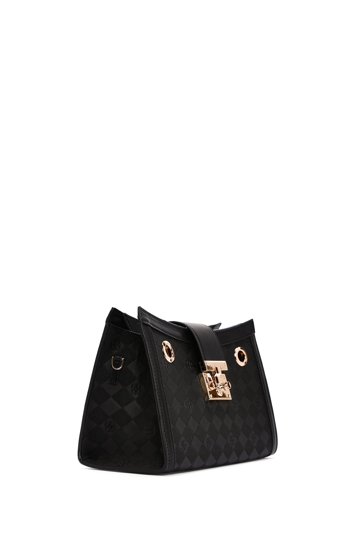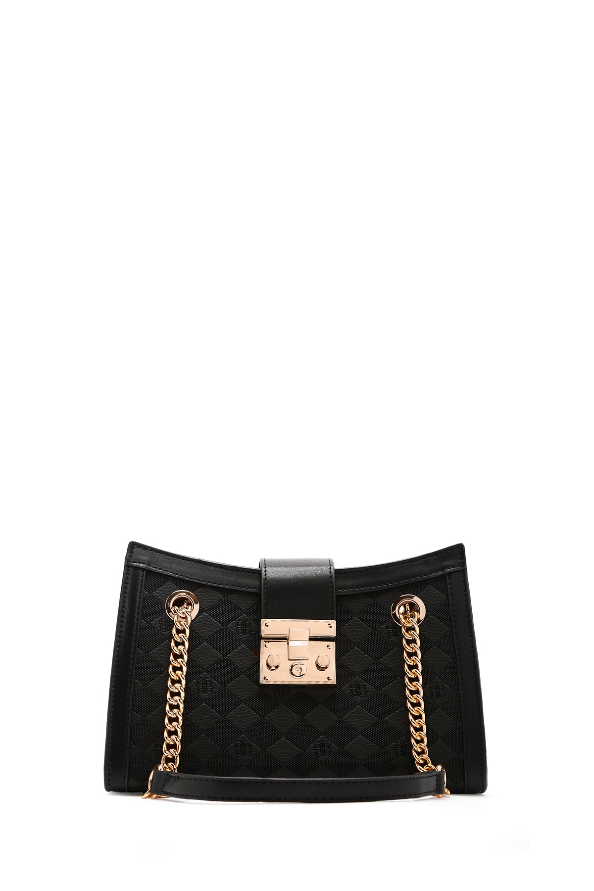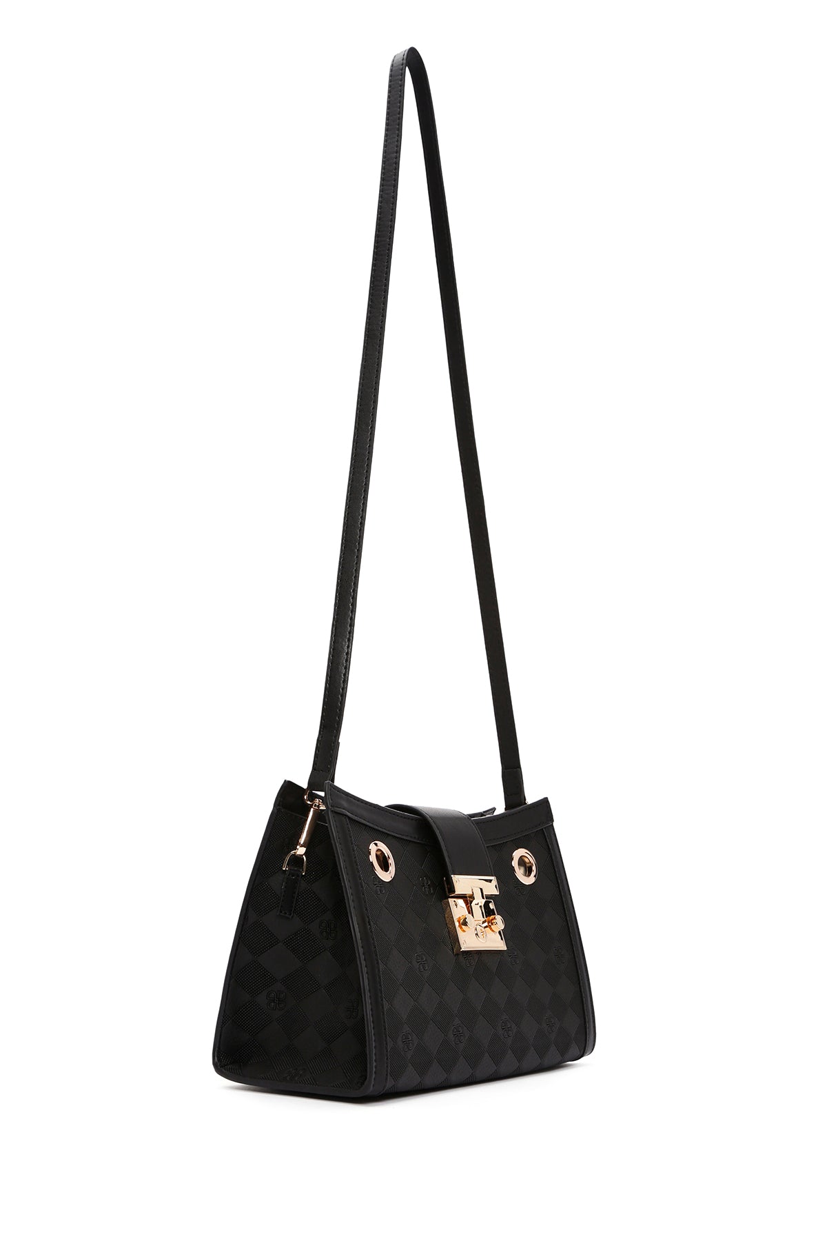 Kadın Siyah Uzun Askılı Baskılı Omuz Çantası