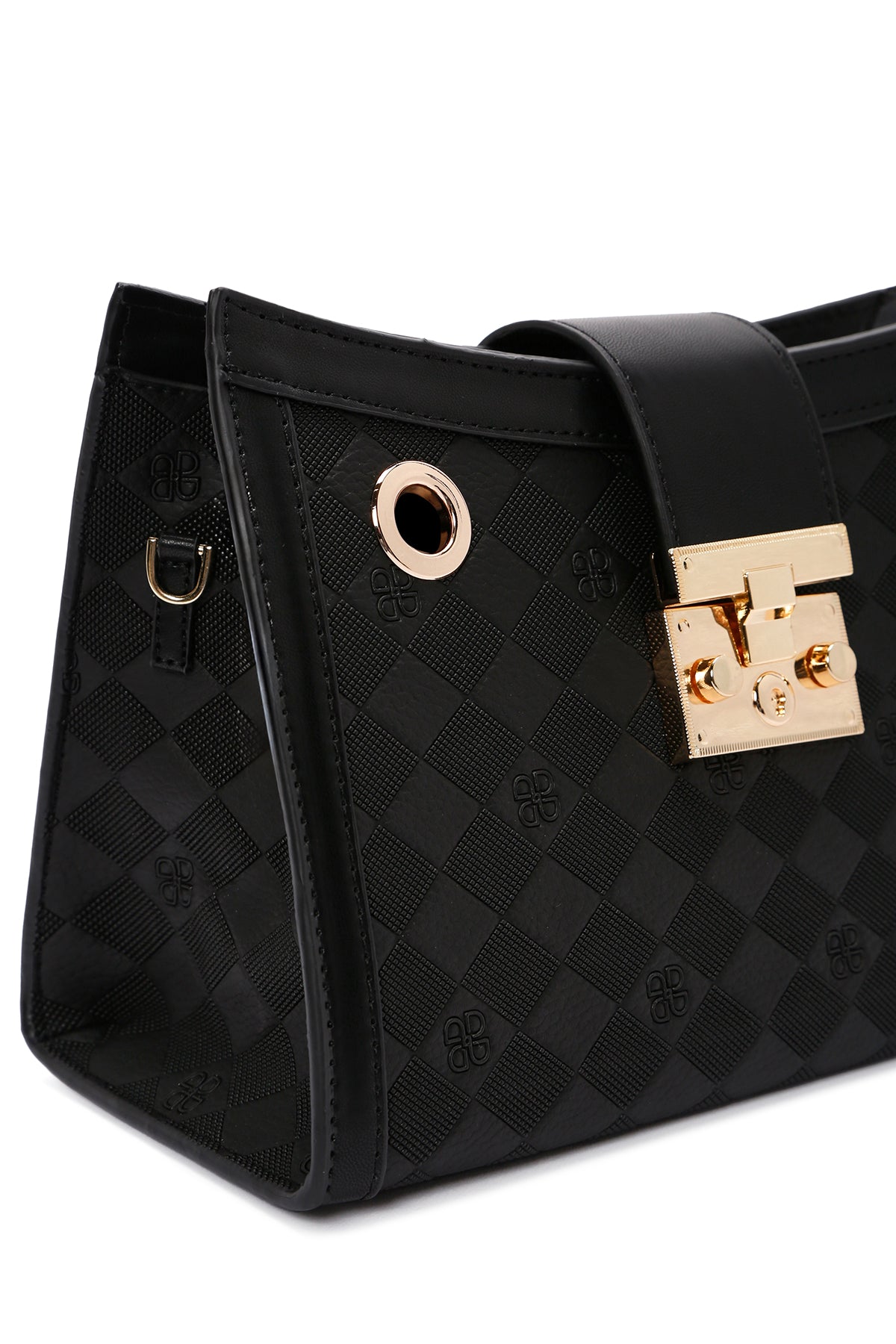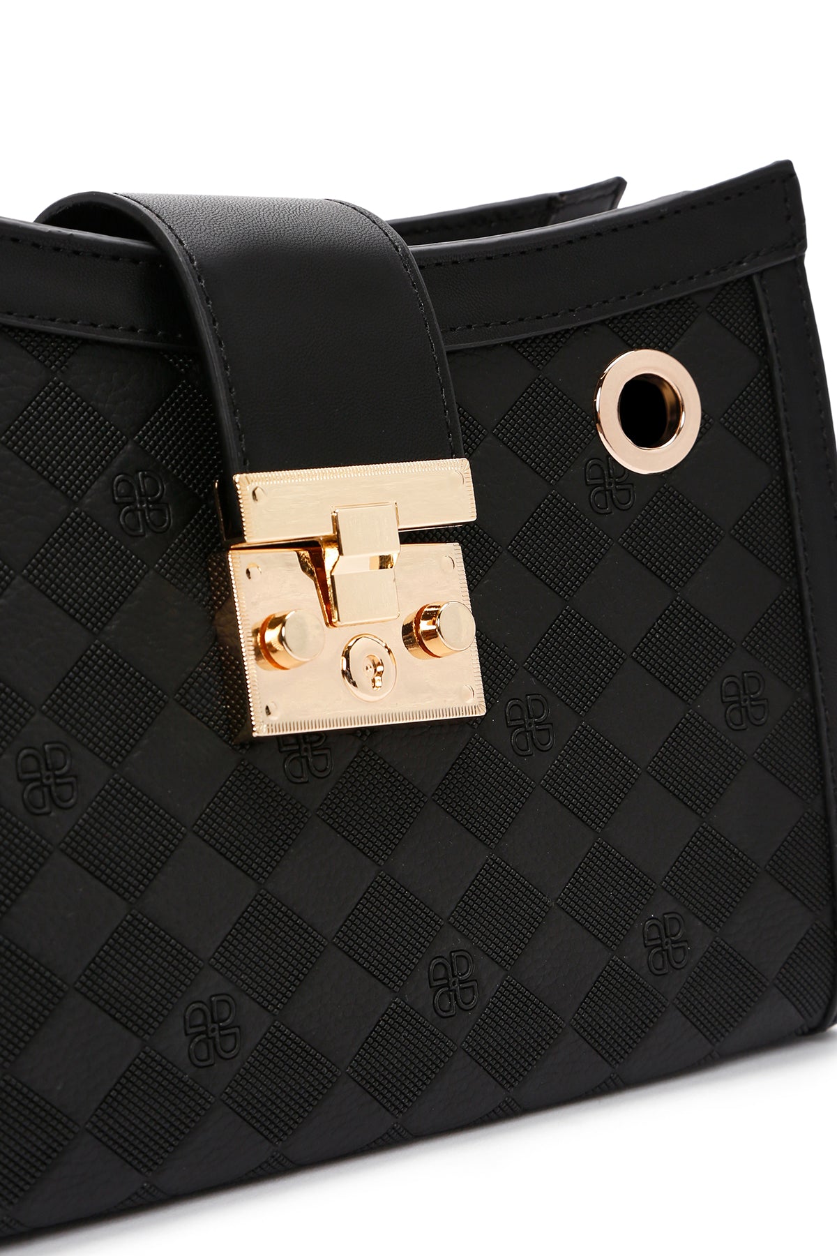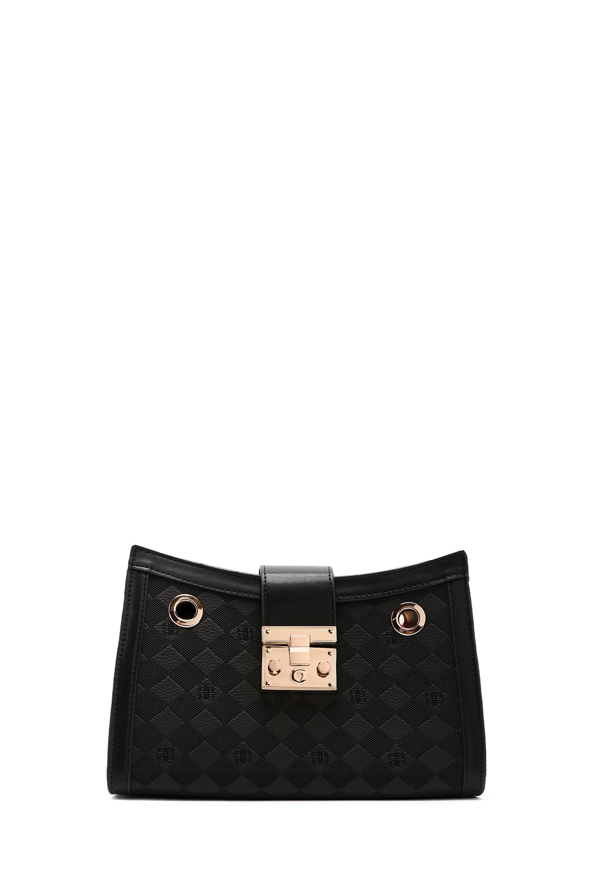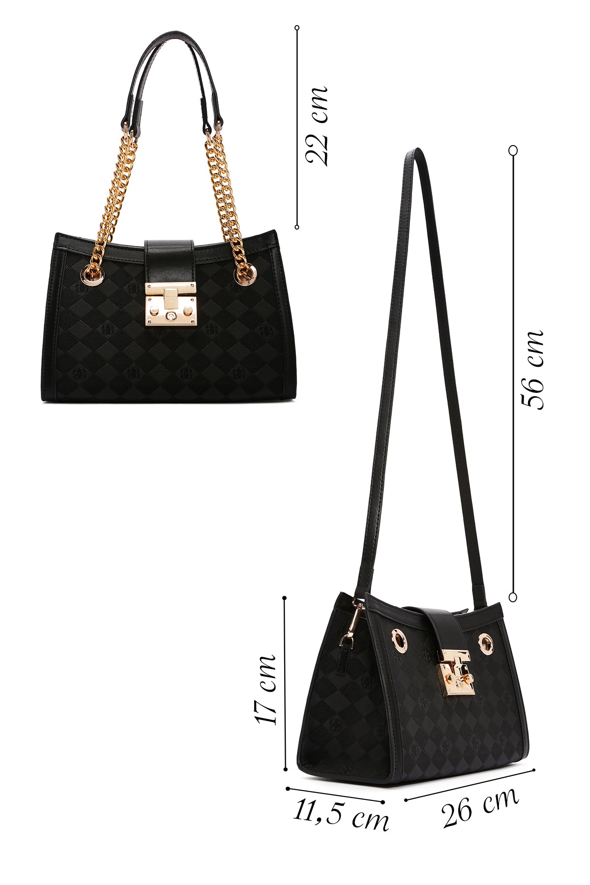 Kadın Siyah Uzun Askılı Baskılı Omuz Çantası