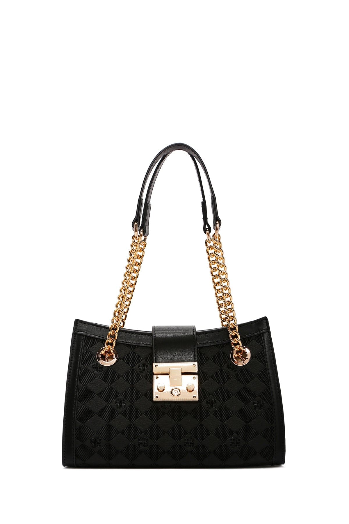 Kadın Siyah Uzun Askılı Baskılı Omuz Çantası