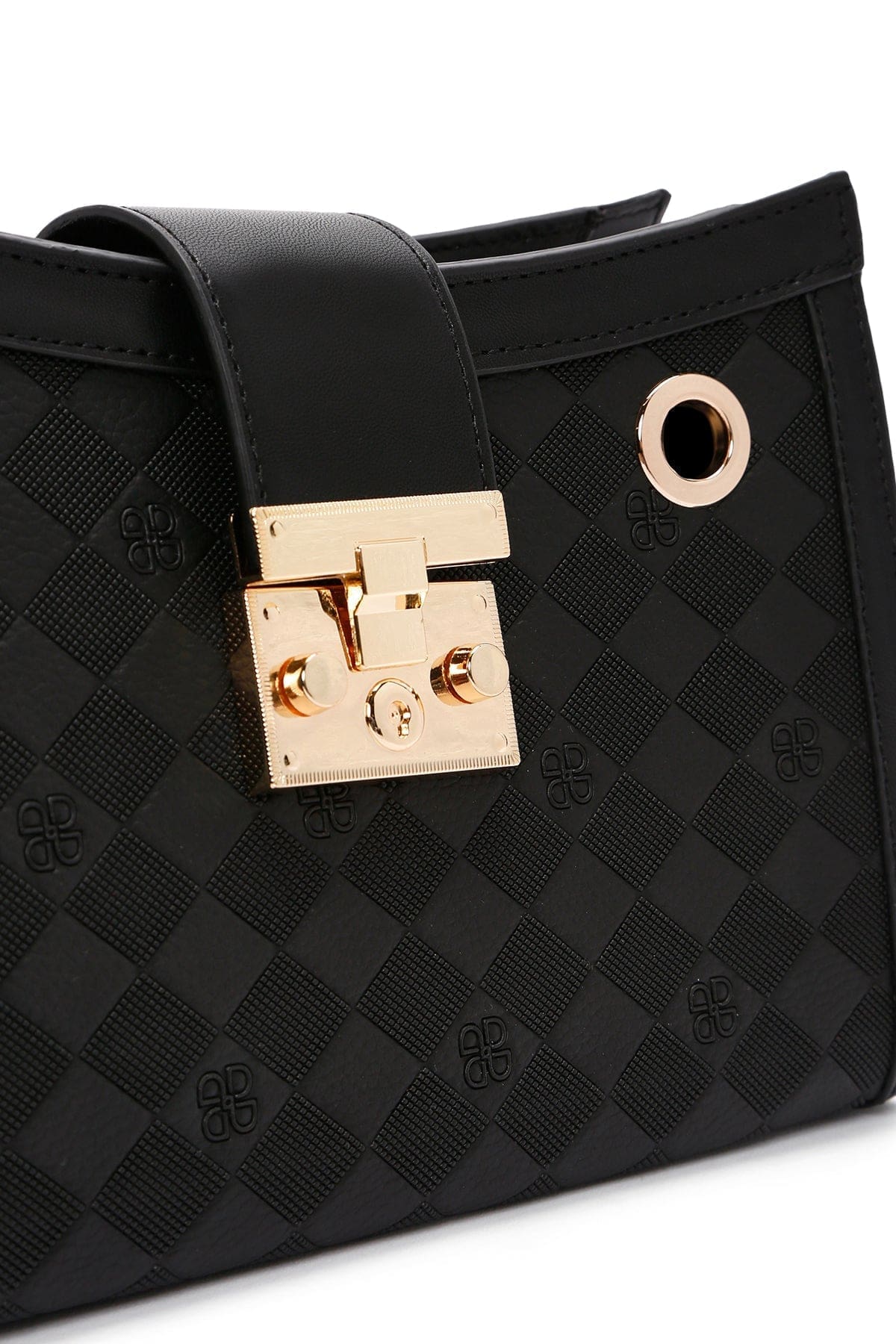 کیف زنانه مشکی دوشی بلند چاپدار دری مد