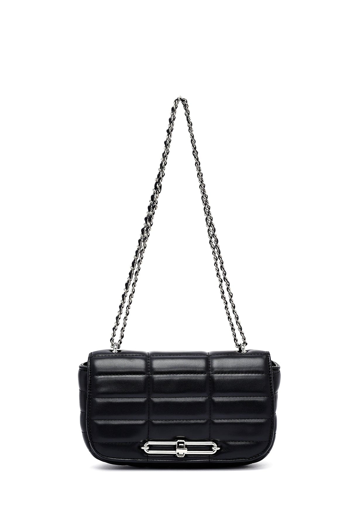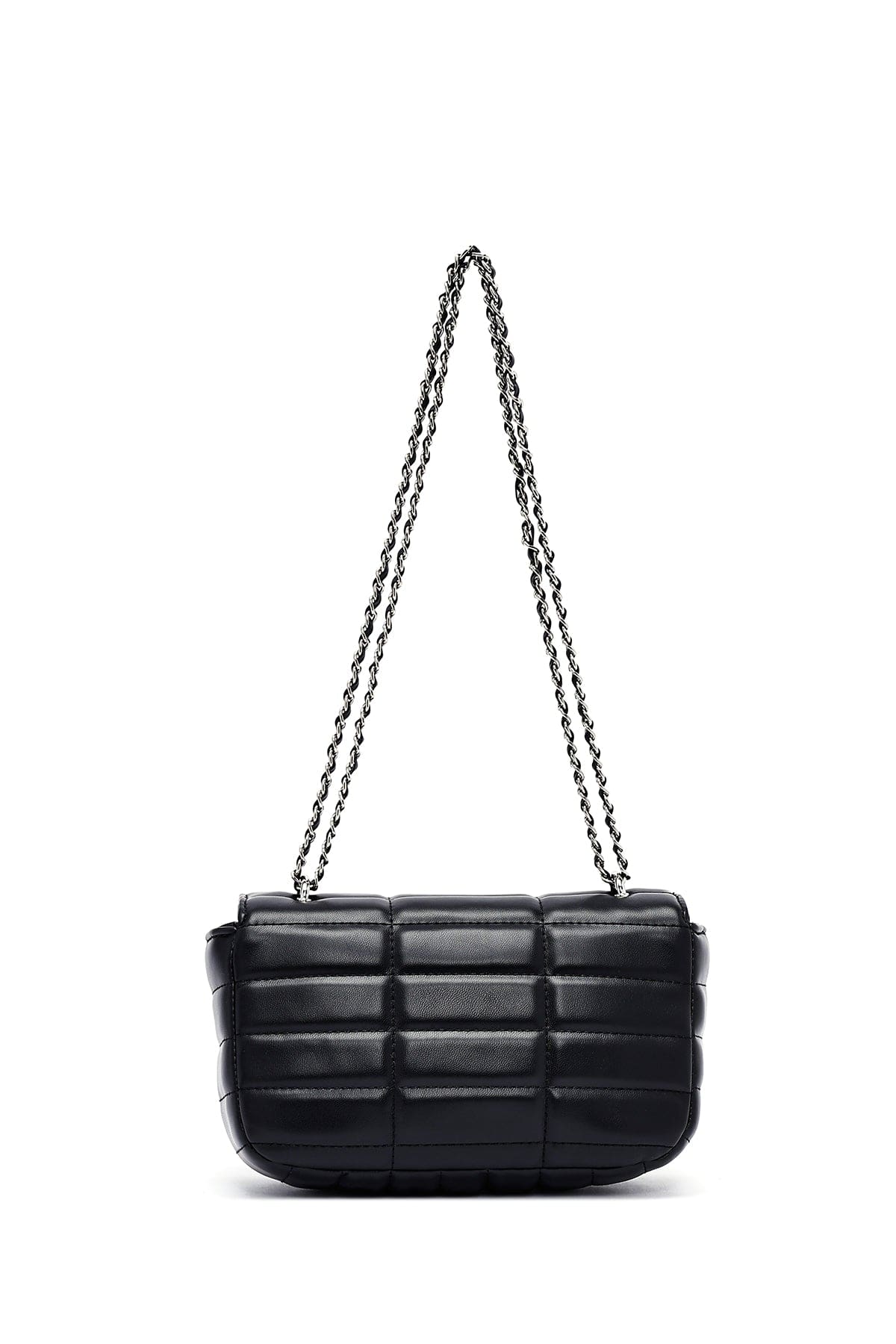 Kadın Siyah Uzun Askılı Kapitone Mini Çapraz Çanta