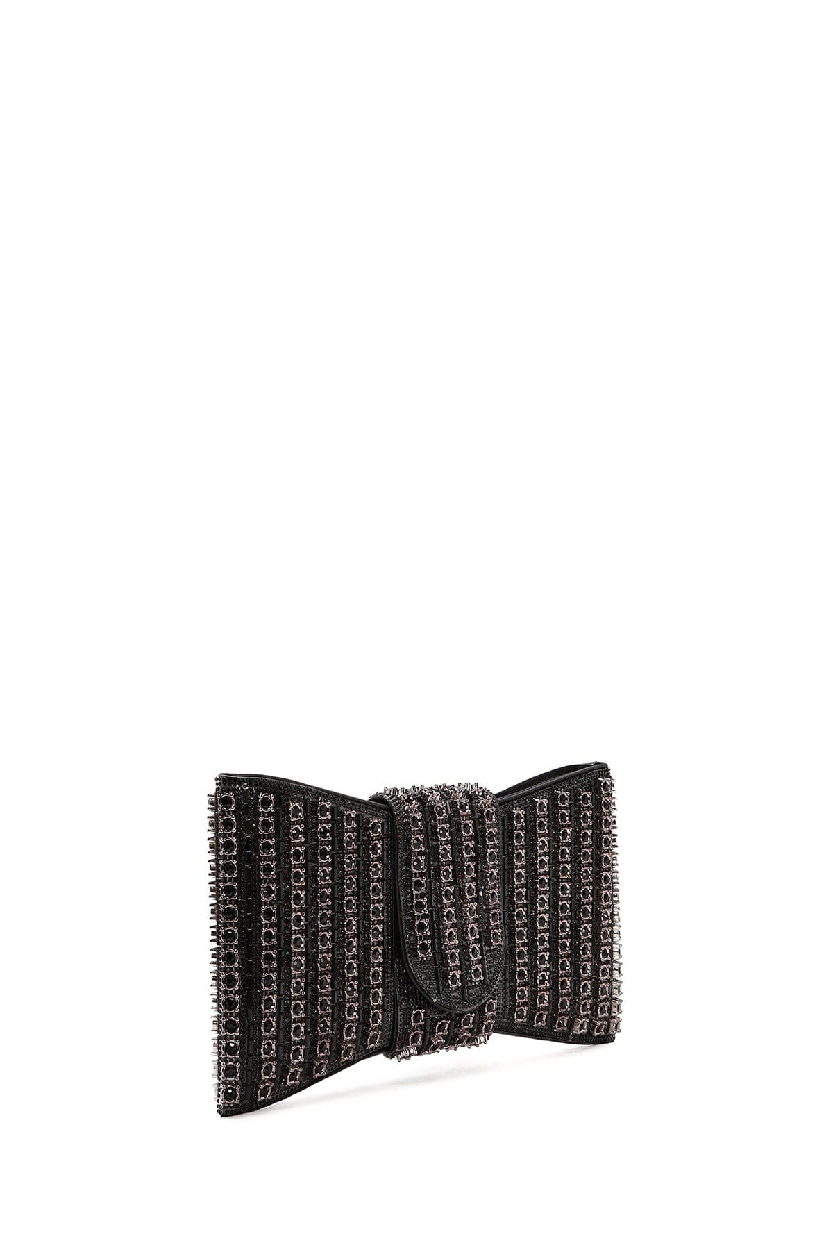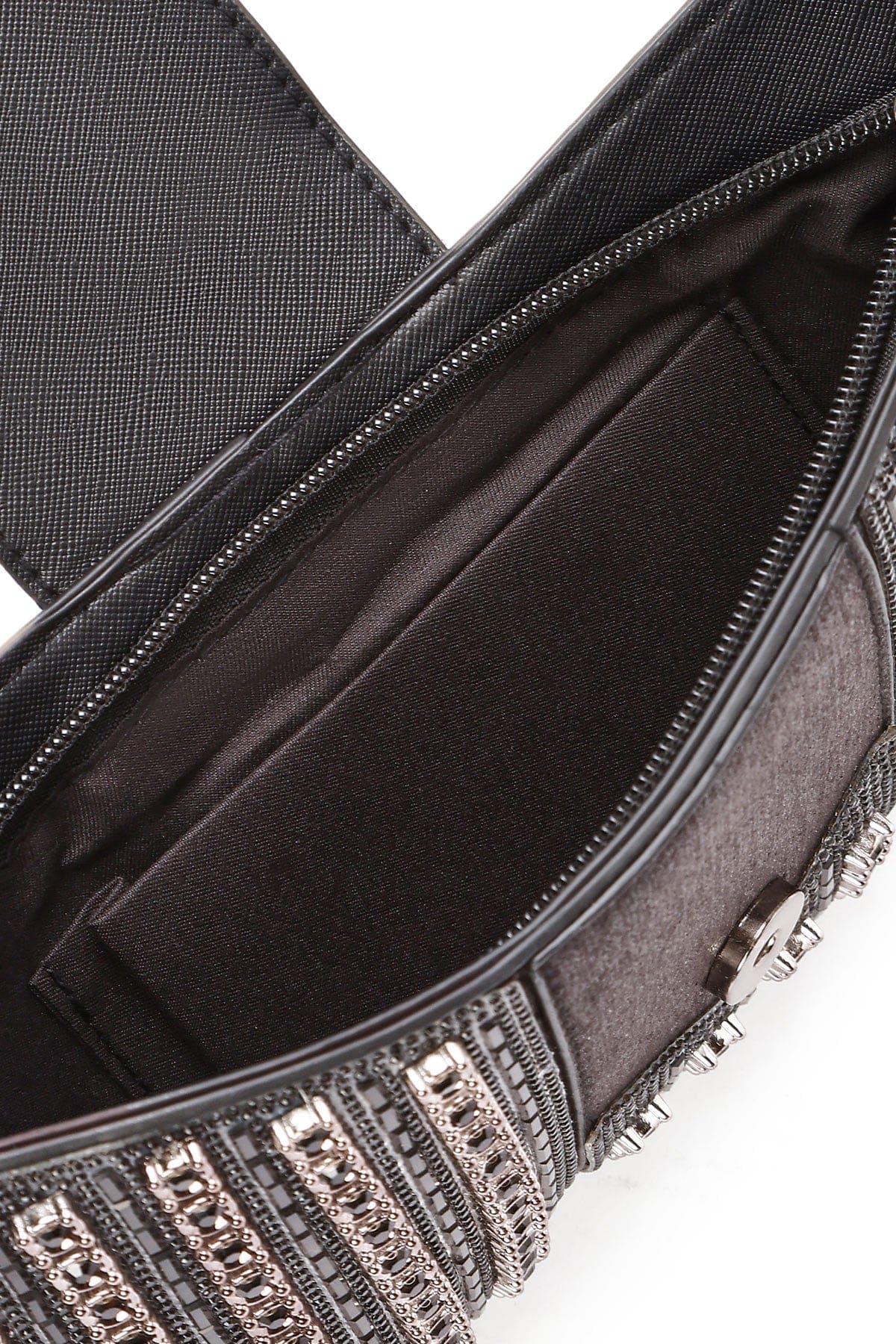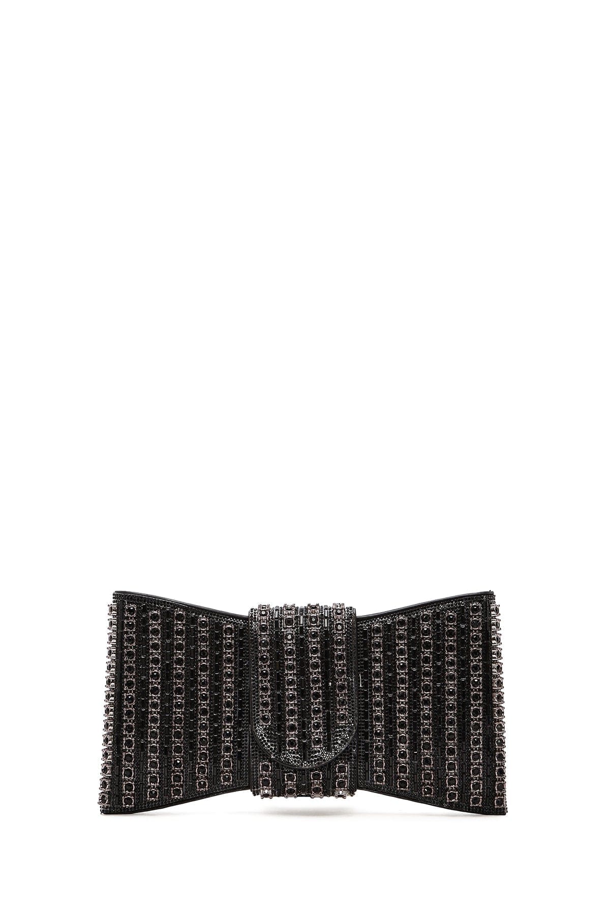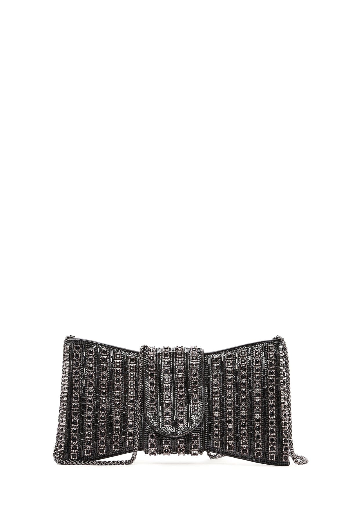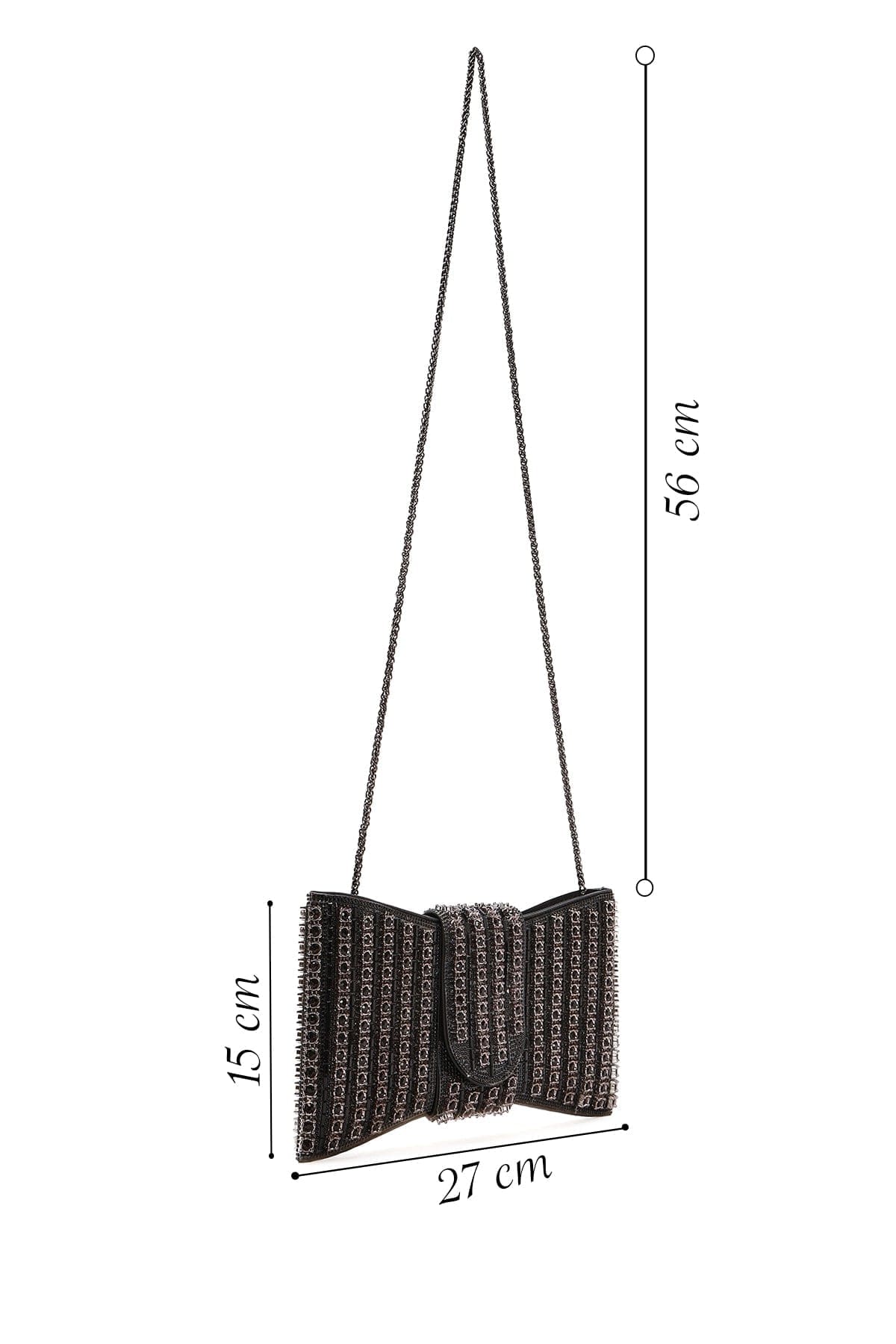 Kadın Siyah Uzun Askılı Taşlı Mini Abiye Kutu Portföy Çanta